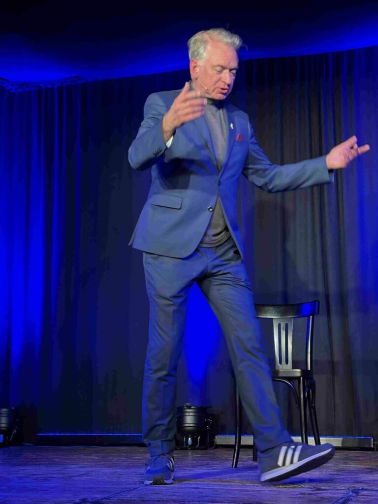 Als Bayer spielt Springer natürlich auf die Millionenpleite der Autobahn-Maut an und legt direkt nach: „Man muss schauen, wo man gute Nachrichten herbekommt.“ Er spricht über Physiotherapie als Allerheilmittel, über die schweigende Mehrheit der deutschen Bevölkerung, über – natürlich nicht ernstgemeint – angeblich reptiloide Politiker im Bundestag und den Bayerischen Landtag. „Ich will ja heute keine Namen nennen. Aber wussten Sie, dass Söder von Salzsieder kommt? Ein Name aus dem frühen Mittelalter“. Um dann gleich noch eins draufzusetzen: „Sieder, bleib bei deinen Leisten!“