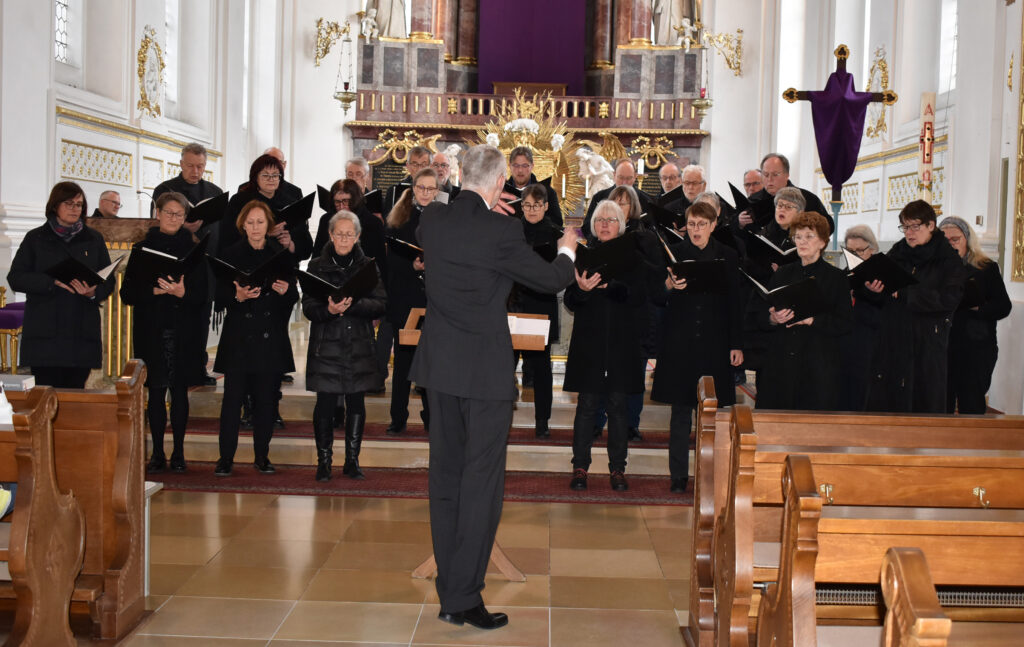 Die Augen schließen und genießen, so wundervoll erklangen einige Motetten sowie die Messe zum Gründonnerstag von Anton Bruckner. Mit den rund 30 Sänger/innen waren alle Stimmen gut besetzt, ein wohlklingender Tenor und Bass, ebenso kräftig die Sopran- und Altstimmen. Chorleiter Robert Häusle zeigte sich sehr zufrieden.