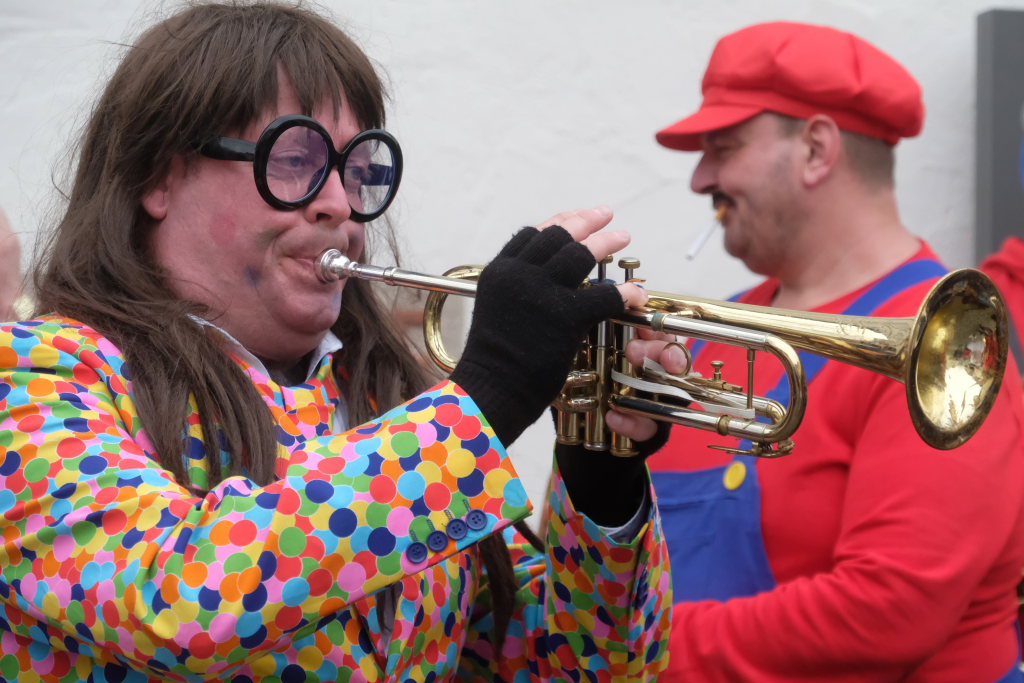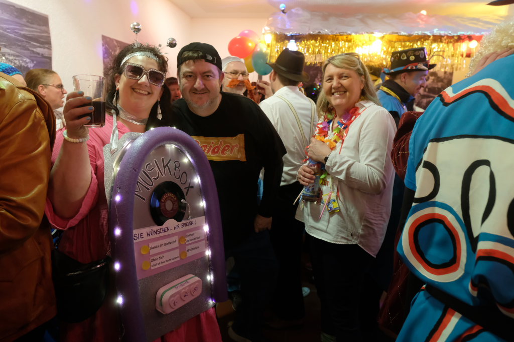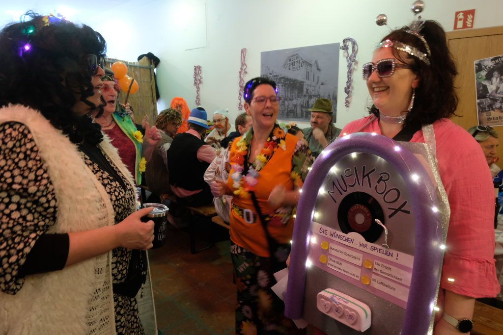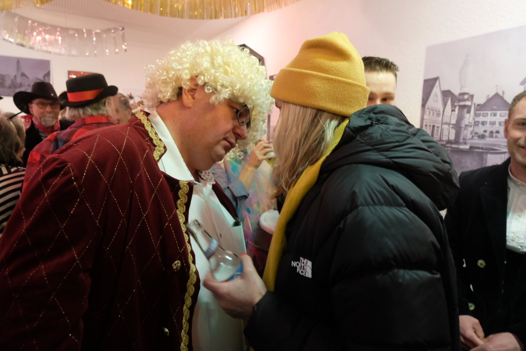Bad Wurzach – Seit Paul Thums Zeiten geht es im Bauamt hoch her am Gumpigen. Motto heuer bei der Stadtbauamtsfasnet: die gute alte Zeit oder auch die süße alte Zeit. Man sah Leute mit Bauchladen voller Süßigkeiten. Die Hausherrin Kathleen Kreutzer zeigte sich als elegante Lady aus den 30ern. Auch wurden schöne alte Lieder gesungen. Es gab eine lebende Music-Box. Als Deko an der Wand waren alte Ansichten von Wurzach angebracht. Die Lumpenkapelle, der Fanfarenzug und Schalmeien spielten auf. Gekommen waren Gemeinderäte, Dezernatsleiter, Bauhofmitarbeiter …