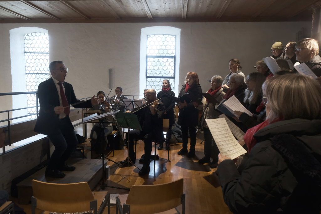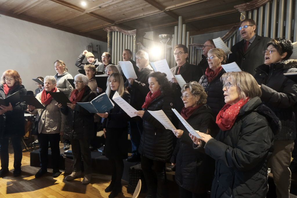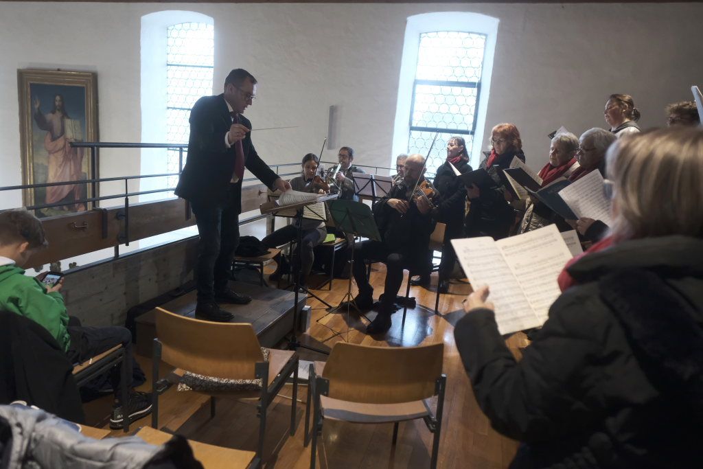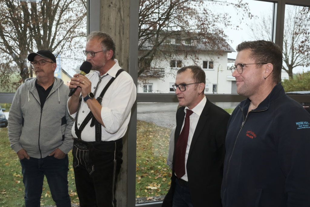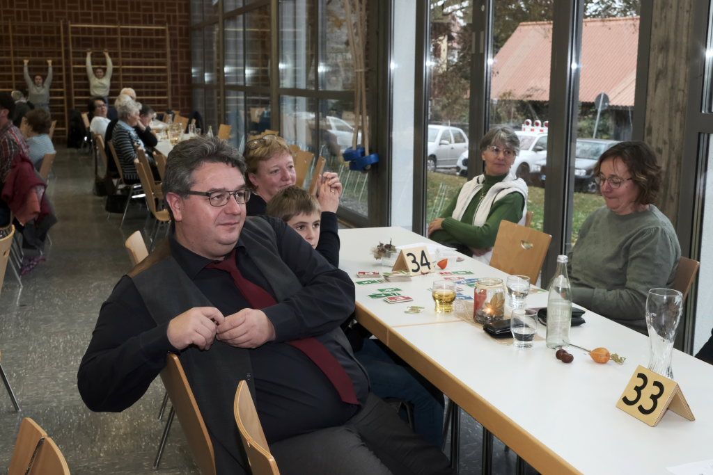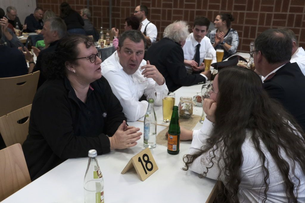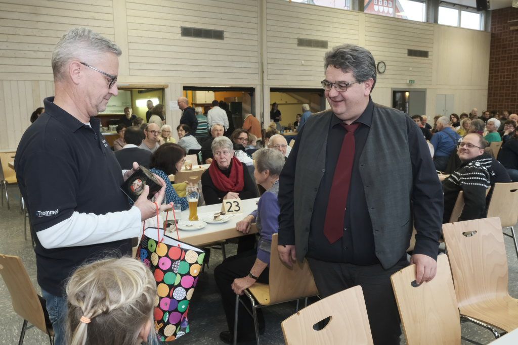 Damit nach dem Gottesdienst niemand hungrig nach Hause musste, lud der Musikverein die Kirchenbesucher in die Festhalle zum Mittagessen und zu Kaffee und Kuchen ein. Bei dieser Gelegenheit erhielt Ortsvorsteher Berthold Leupolz, der natürlich beim Kirchenchor fleißig mitgesungen hatte, noch ein kleines Ständchen von den Anwesenden gesungen: Der Eintürner „Hans Dampf in allen Gassen“ hatte wenige Tage zuvor einen runden Geburtstag gefeiert.