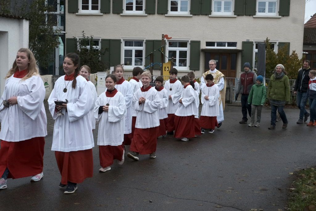 Eintürnen – Die Kirchengemeinde St. Martin Eintürnen feierte am Sonntag das Patrozinium der Gemeinde, aber auch der Diözese Rottenburg-Stuttgart, mit einem Festgottesdienst. Eröffnet wurde der Martinstag mit einem Böllerschuss: Dann gab es die feierliche Prozession um den Pfarrgarten mit der Musikkapelle und den Abordnungen der Vereine. In der dem Heiligen Martin geweihten Kirche brachte der Kirchenchor die Missa brevis von Mozart, begleitet von einem kleinen Orchester, zur Aufführung.