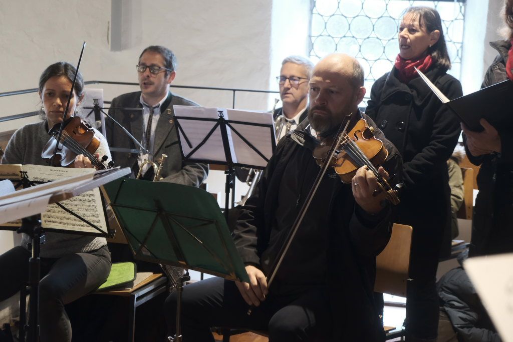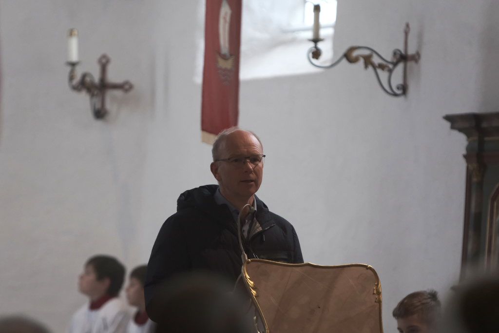 Der Kirchenchor unter der Leitung von Alexander Dreher, begleitet von zwei Violinen und Bläsern des Musikvereines und sehr einfühlsam an der Orgel von Franz Ott, eröffnete den Gottesdienst mit dem Kyrie. Pfarrer Patrick Meschenmoser ging in seiner Predigt auf eines der berühmtesten Evangeliumsworte nach Matthäus ein: „Ich war hungrig und ihr habt mir zu essen gegeben. Was ihr dem Geringsten meiner Brüder getan habt, habt ihr für mich getan.“ „Zeit hat man nicht, Zeit nimmt man sich.“ Mit diesen Worten eröffnete Meschenmoser seine Predigt. Und genau für dieses Bild wurde der Heilige Martin berühmt, er nahm sich bewusst die Zeit für den Bettler und gab ihm die Hälfte seines Mantels. Seit dieser Begegnung fühlte er sich Jesus näher verbunden. Daher sei es wichtig, sich im Alltag Zeit für Gott zu nehmen. Denn diese Zeit bedeute Orientierung im Leben. Als zweite Säule des Lebens hat Martin erkannt, sich Zeit für die Liebe zu den Mitmenschen zu nehmen. Dies tat der als asketischer Mönch lebende Bischof, indem er seinen Mitmenschen als Seelsorger beigestanden ist. Und als Drittes: Er, der in großer Zurückgezogenheit lebte, nahm sich viel Zeit für selbst, um sich die Einfachheit des Herzens und seine Hellsichtigkeit bei der Unterscheidung der Geister zu bewahren.