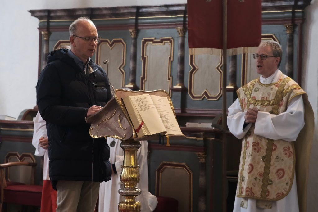 Am Ende des Gottesdienstes durften die Kinder, die inzwischen vom Gemeindehaus herübergekommen waren, noch von ihren neugewonnenen Erkenntnissen über den Eintürner Kirchenpatron berichten und als Belohnung kleine gebackene Martinsgänse in Empfang nehmen.