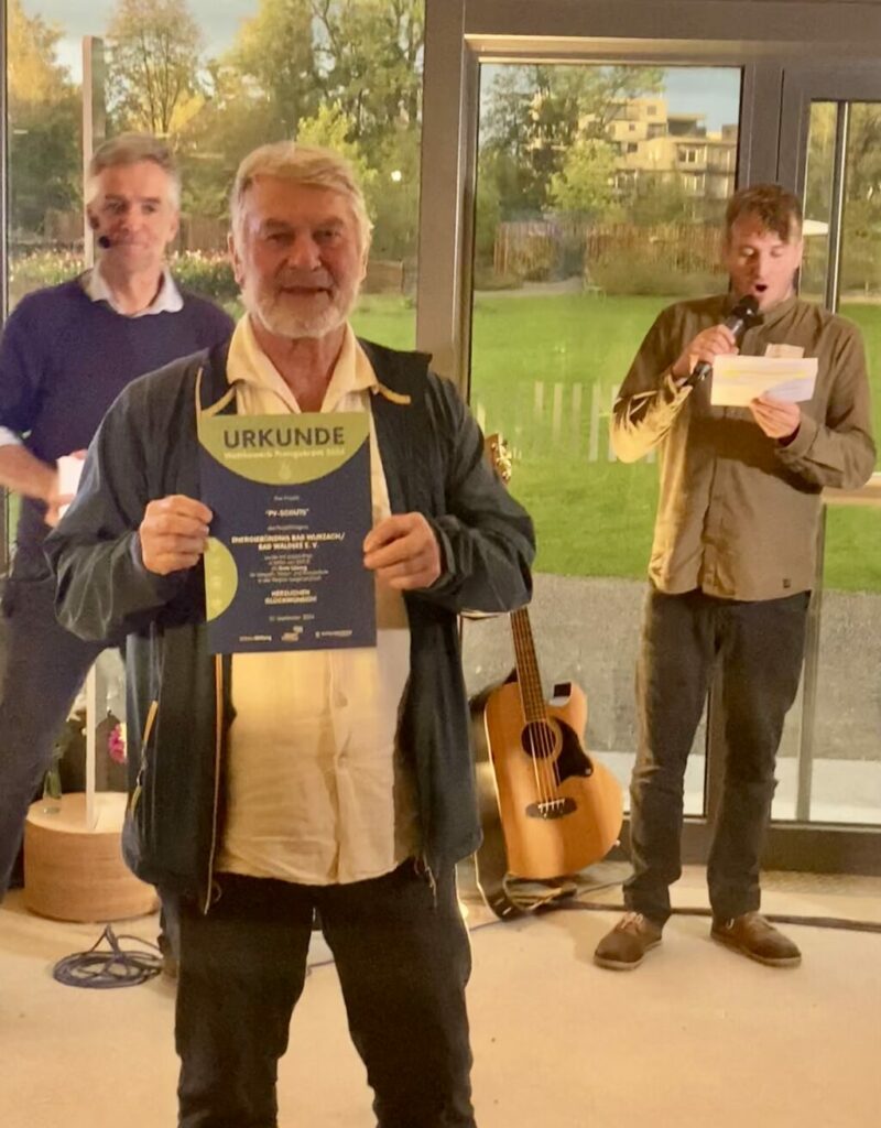 Das Projekt „PV-Scouts“ des Energiebündnisses Bad Wurzach-Bad Waldsee e.V. wurde in der 2. Kategorie mit 300 € prämiert. Es wurde Anfang 2022 ins Leben gerufen und befindet sich im 3. Jahr. Die PV-Scouts sind ehrenamtliche Berater, die über den ganzen Landkreis verteilt sind. Sie sind unabhängig, keine Firmenvertreter, keine Verkäufer, sondern von der Energieagentur gut ausgebildete Privatpersonen, die reichlich eigene Erfahrungen mit PV, Wärmepumpe, evtl. E-Mobil haben.