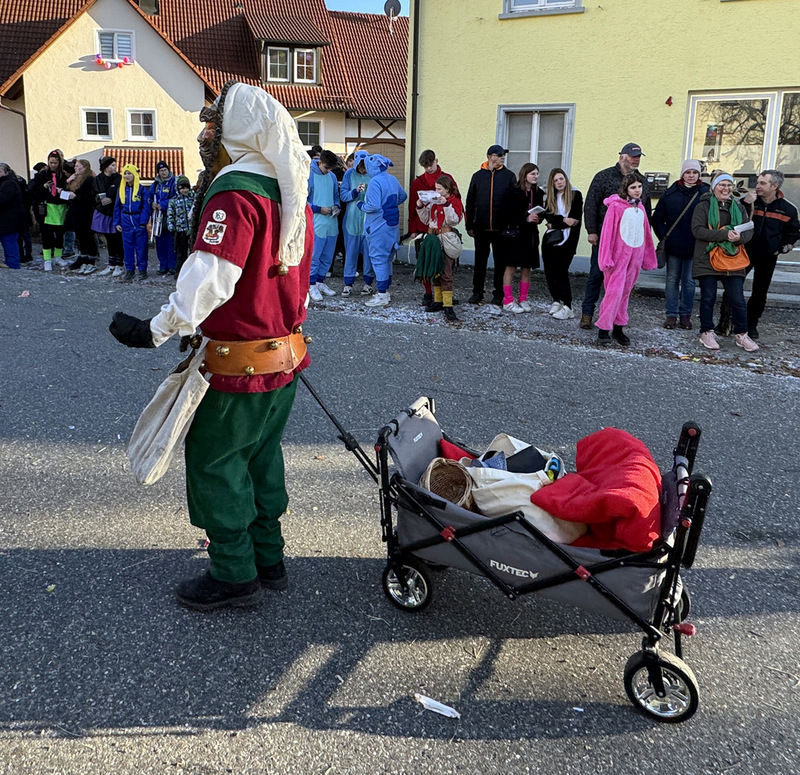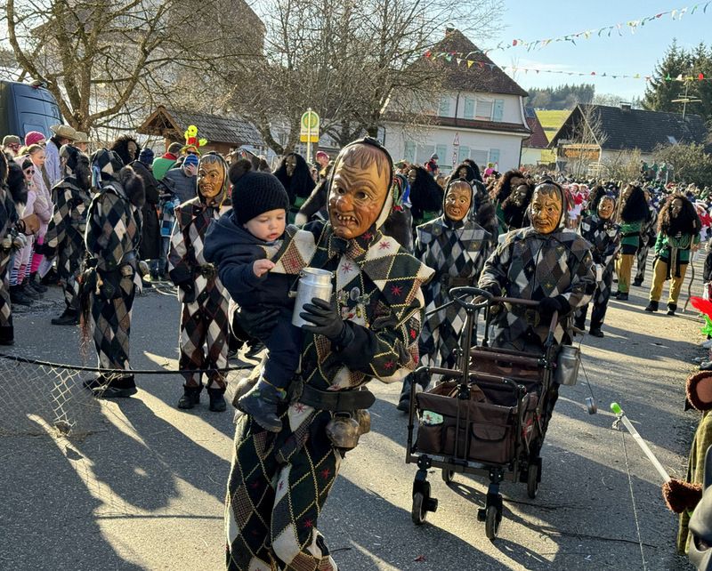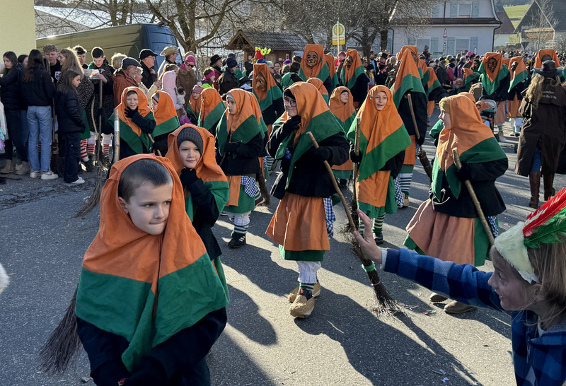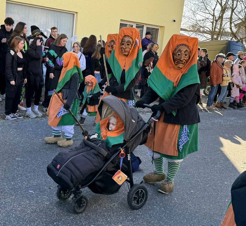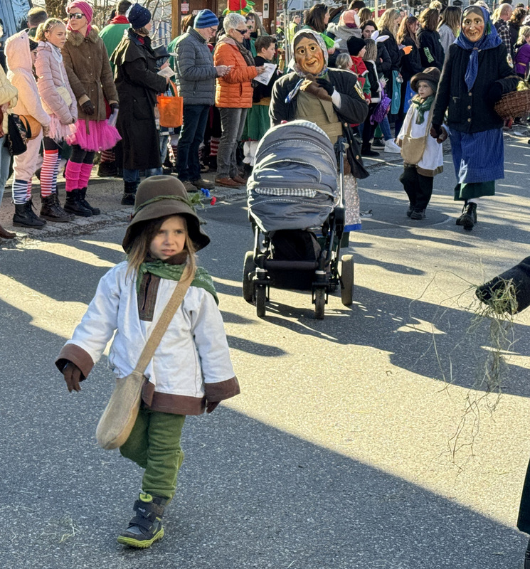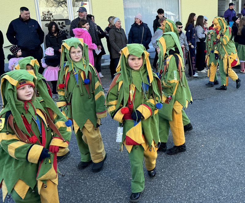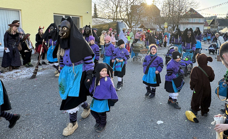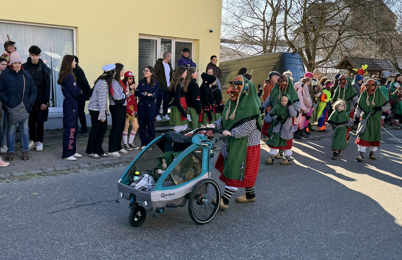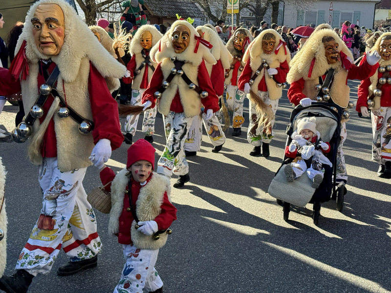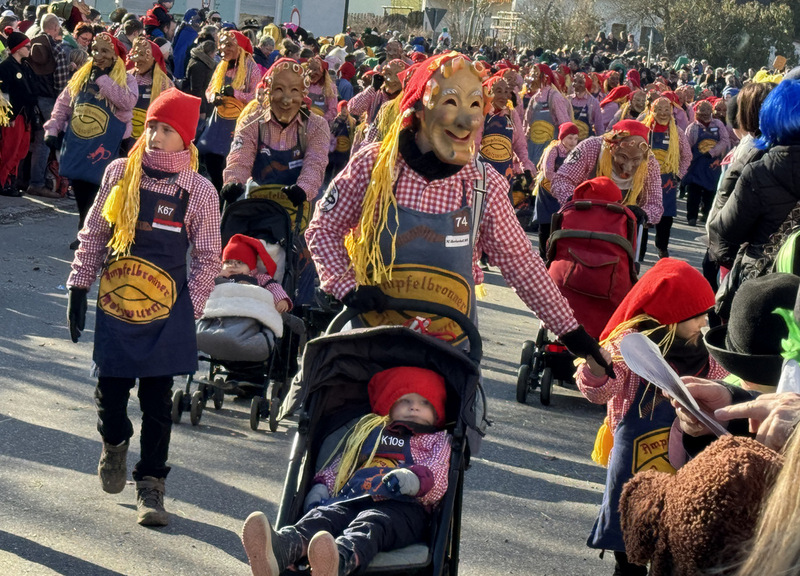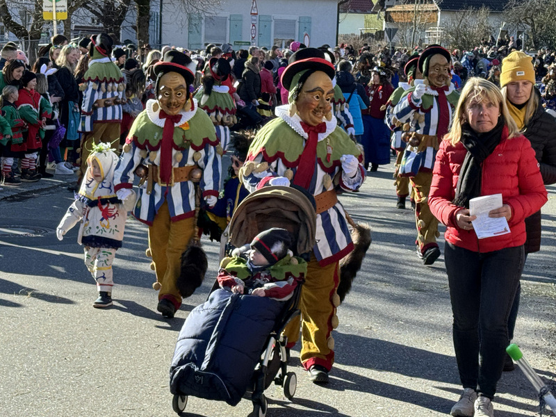 Haidgau – Die Narrenzunft Chadaloh Haidgau hatte es mit viel Aufwand geschafft, wiederum einen der größten Narrenumzüge in der Region super zu bewältigen. Selbst Babys wurden im Kinderwagen oder sonstigen Wägelchen mitgeführt. Närrisches Mittun  war auch bei den Jüngsten deutlich erkennbar. Ob an Mamas oder Papas Hand, ob auf den Schultern, als Täfelesträger, als Musizierende, als Mitspringende ohne Masken, man entdeckte allenthalben strahlende Gesichter. Die von Rudi Martin zusammengestellte Fotoserie ist speziell dem Narrensamen gewidmet worden und rückt die jüngsten Teilnehmenden  in den Fokus.