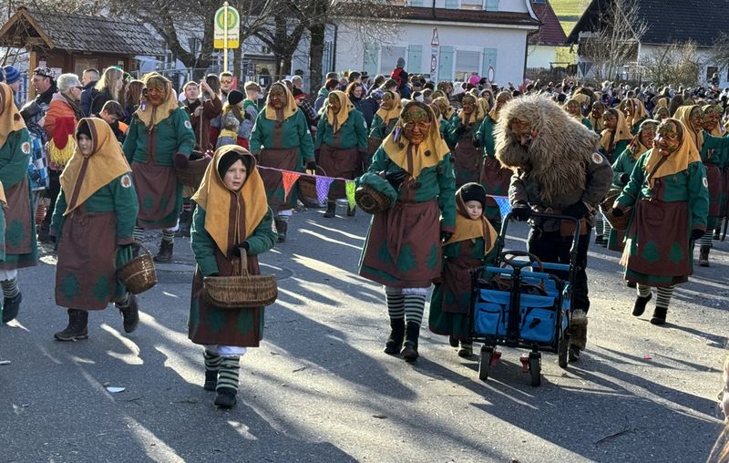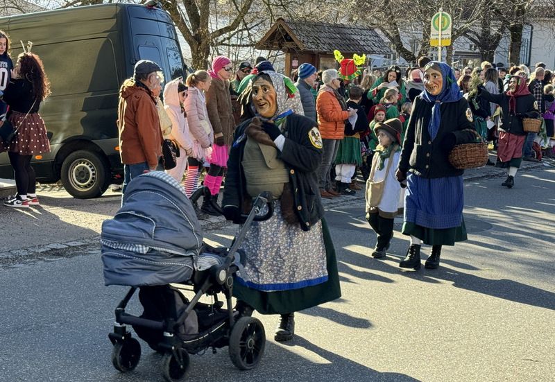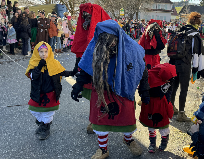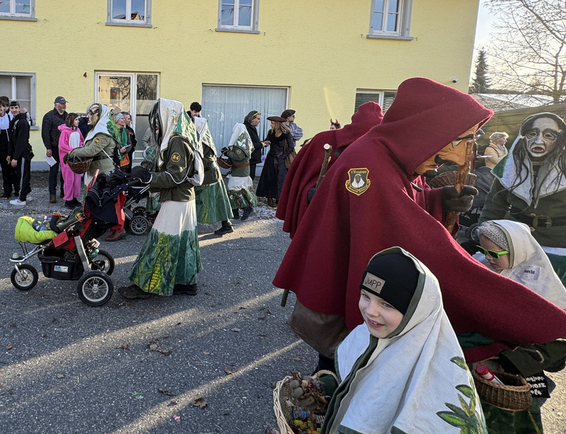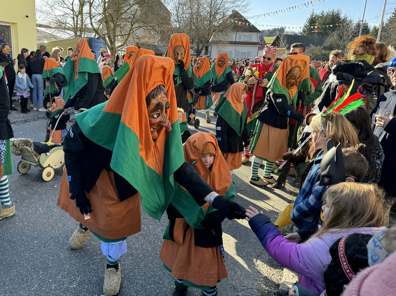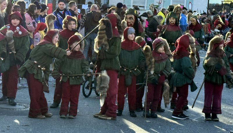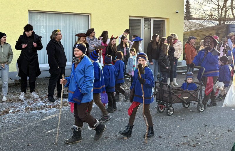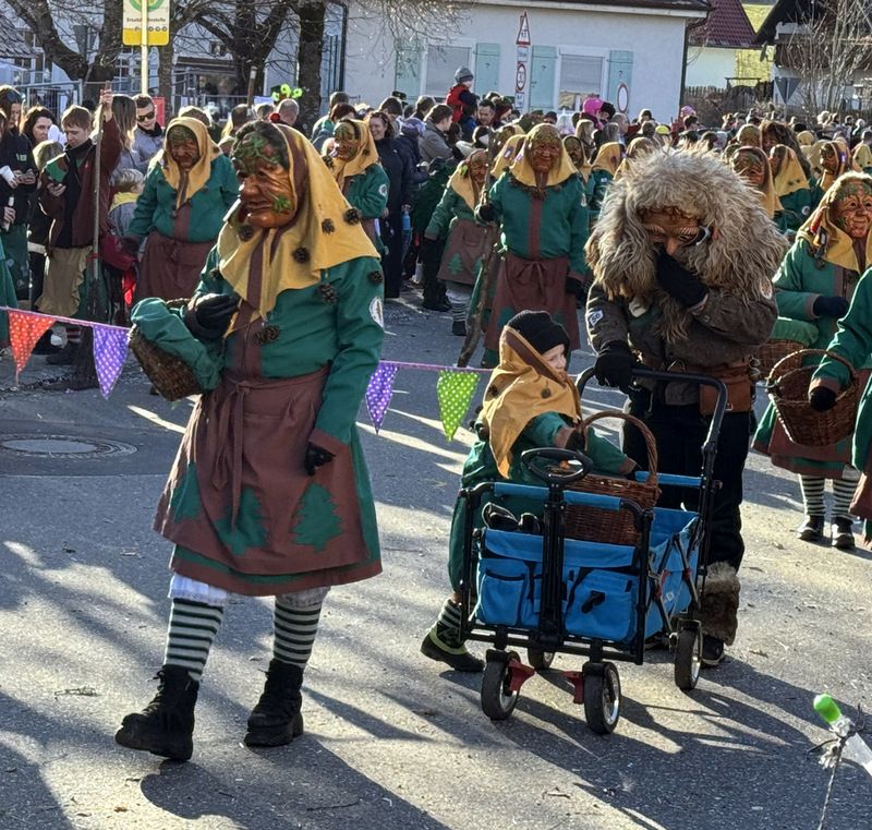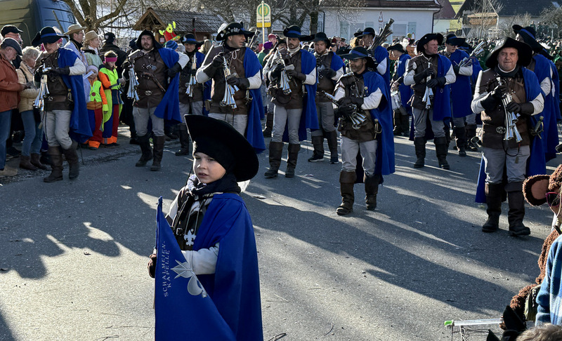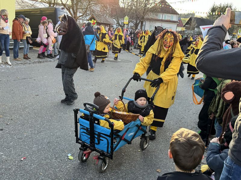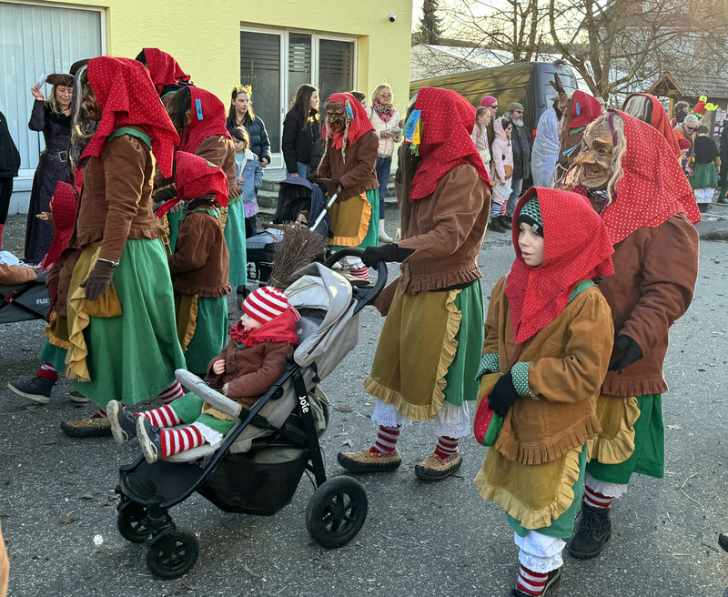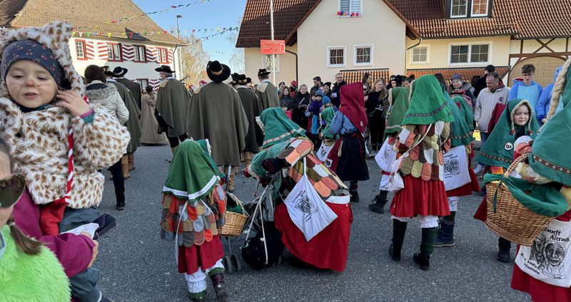Haidgau – Die Narrenzunft Chadaloh Haidgau hatte es mit viel Aufwand geschafft, wiederum einen der größten Narrenumzüge in der Region super zu bewältigen. Selbst Babys wurden im Kinderwagen oder sonstigen Wägelchen mitgeführt. Närrisches Mittun  war auch bei den Jüngsten deutlich erkennbar. Ob an Mamas oder Papas Hand, ob auf den Schultern, als Täfelesträger, als Musizierende, als Mitspringende ohne Masken, man entdeckte allenthalben strahlende Gesichter. Die von Rudi Martin zusammengestellte Fotoserie ist speziell dem Narrensamen gewidmet worden und rückt die jüngsten Teilnehmenden  in den Fokus.