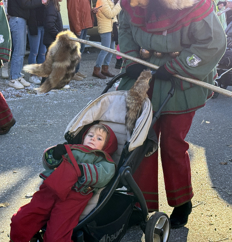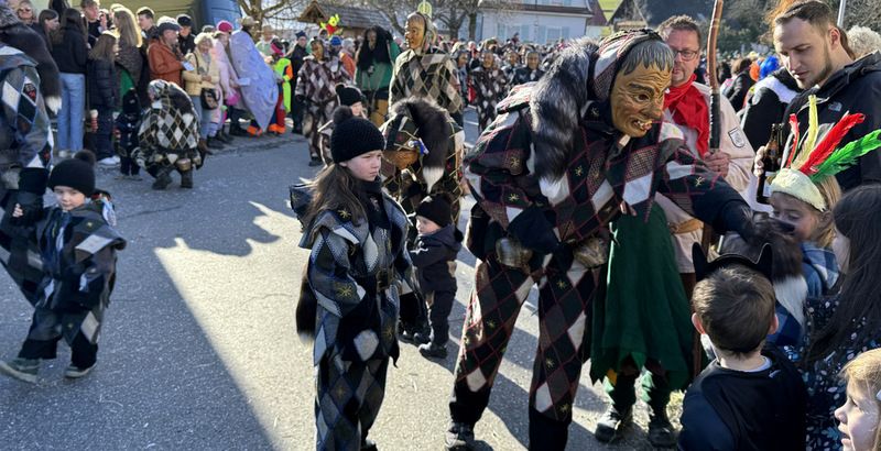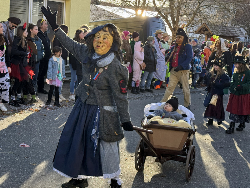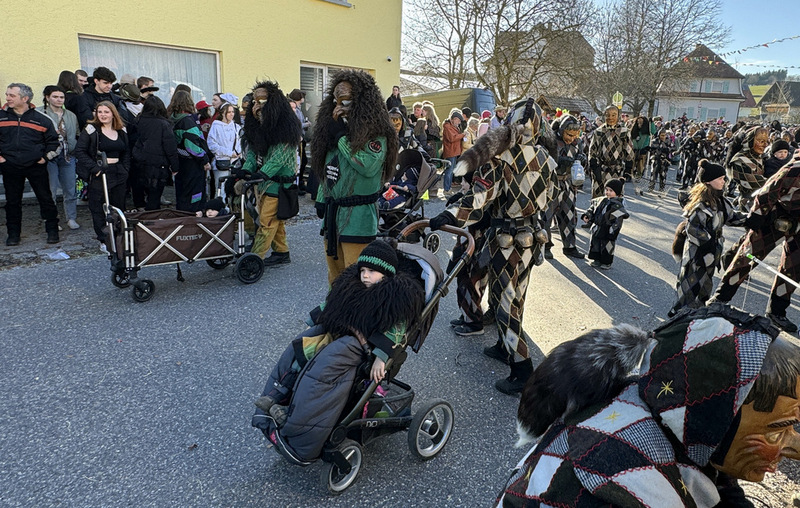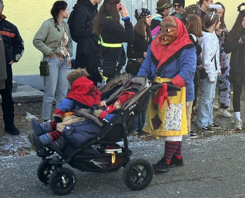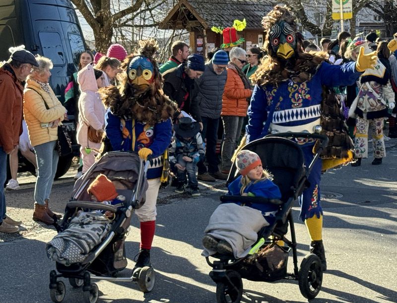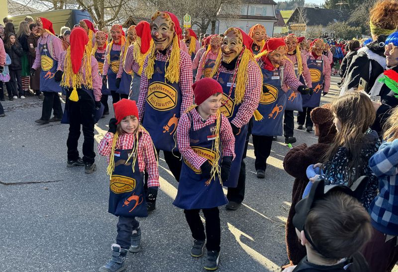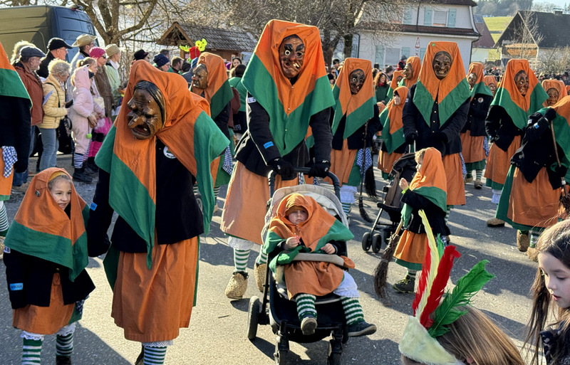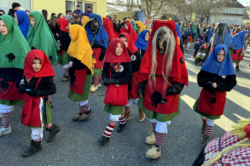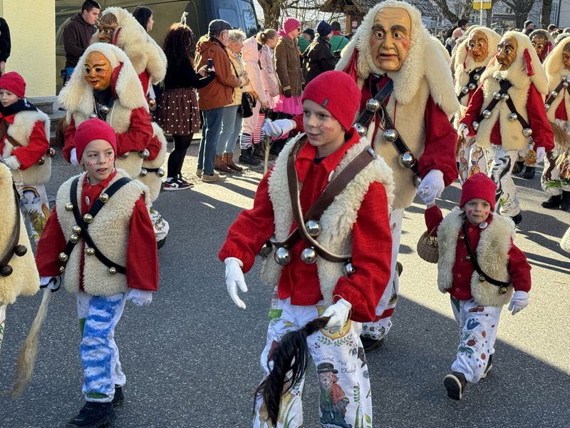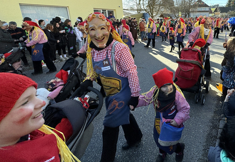 Haidgau – Die Narrenzunft Chadaloh Haidgau hatte es mit viel Aufwand geschafft, wiederum einen der größten Narrenumzüge in der Region super zu bewältigen. Selbst Babys wurden im Kinderwagen oder sonstigen Wägelchen mitgeführt. Närrisches Mittun  war auch bei den Jüngsten deutlich erkennbar. Ob an Mamas oder Papas Hand, ob auf den Schultern, als Täfelesträger, als Musizierende, als Mitspringende ohne Masken, man entdeckte allenthalben strahlende Gesichter. Die von Rudi Martin zusammengestellte Fotoserie ist speziell dem Narrensamen gewidmet worden und rückt die jüngsten Teilnehmenden  in den Fokus.