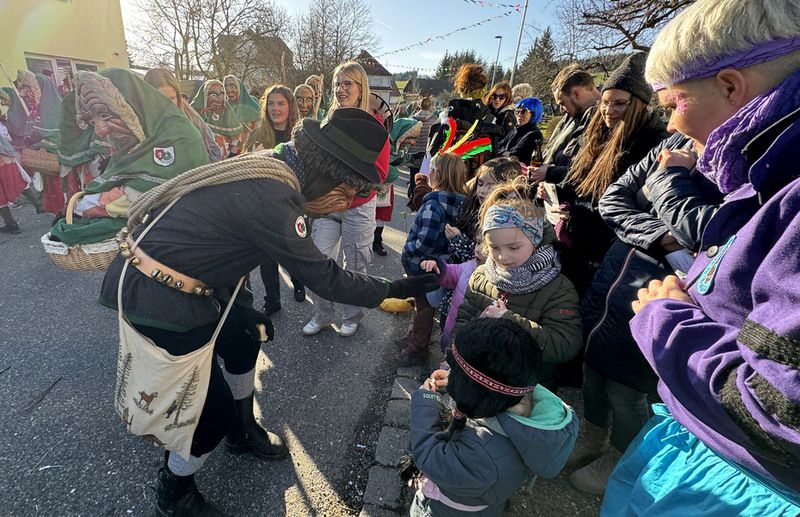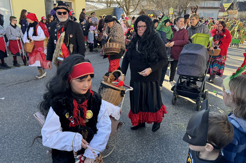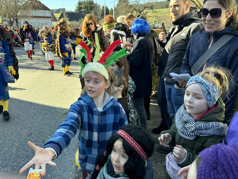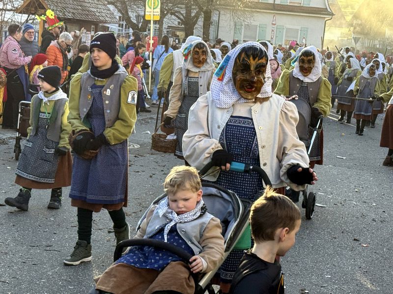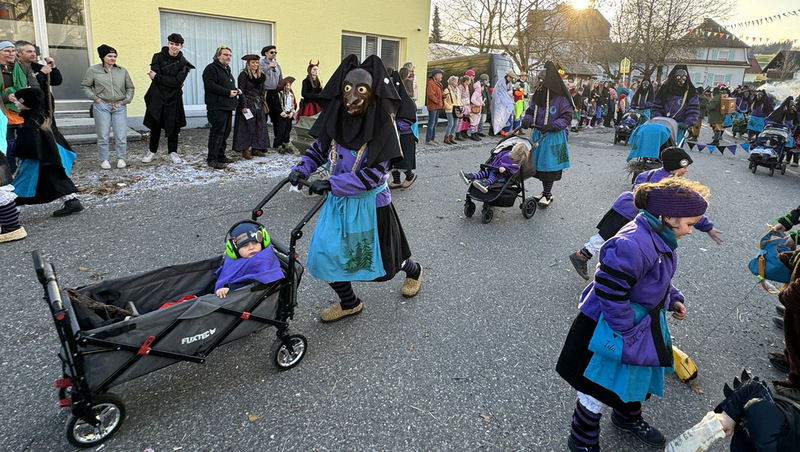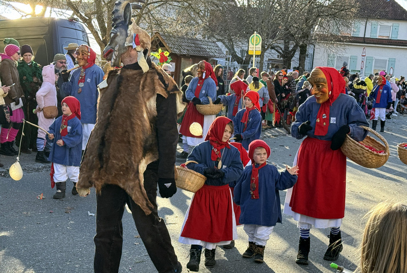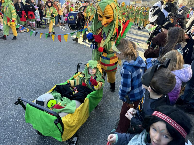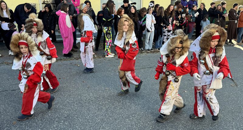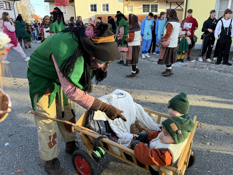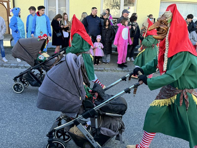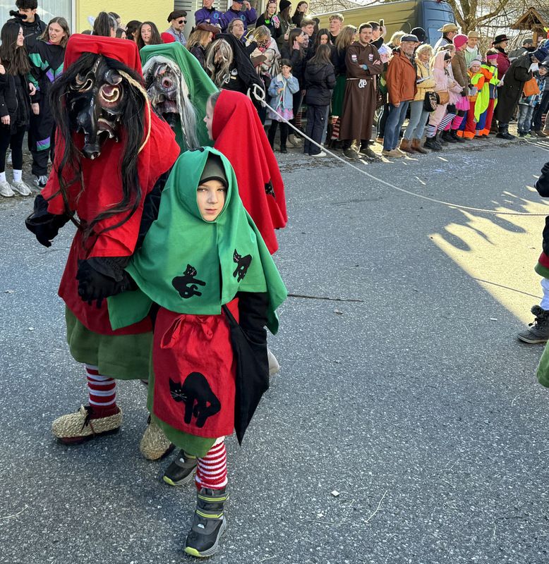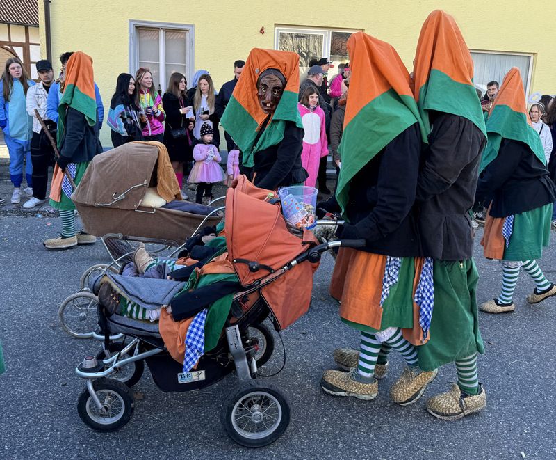 Haidgau – Die Narrenzunft Chadaloh Haidgau hatte es mit viel Aufwand geschafft, wiederum einen der größten Narrenumzüge in der Region super zu bewältigen. Selbst Babys wurden im Kinderwagen oder sonstigen Wägelchen mitgeführt. Närrisches Mittun  war auch bei den Jüngsten deutlich erkennbar. Ob an Mamas oder Papas Hand, ob auf den Schultern, als Täfelesträger, als Musizierende, als Mitspringende ohne Masken, man entdeckte allenthalben strahlende Gesichter. Die von Rudi Martin zusammengestellte Fotoserie ist speziell dem Narrensamen gewidmet worden und rückt die jüngsten Teilnehmenden  in den Fokus.