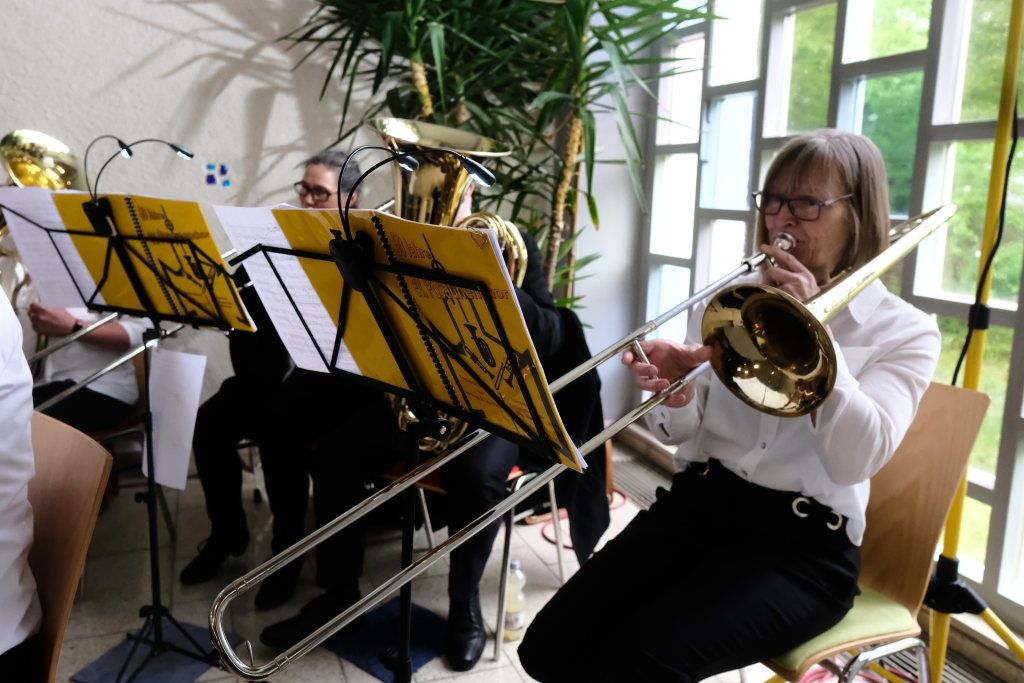 Dies gelang und zum 10-jährigen gab es dann auch, mit Unterstützung aus Leutkirch, ein erstes Foto, berichtete Julia Kiebler weiter. Schön sei auch die Einführung der Bläserwochenenden gewesen, dank derer sich die Spieler intensiver auf ihr (Zusammen-) Spiel konzentrieren konnten. Im Laufe der Jahre kamen dann einige Auftritte dazu, etwa das weihnachtliche Musizieren in der Rheuma- bzw. Rehaklinik, wo sie den Patienten, die nicht nach Hause konnten, damit eine große Freude machten.