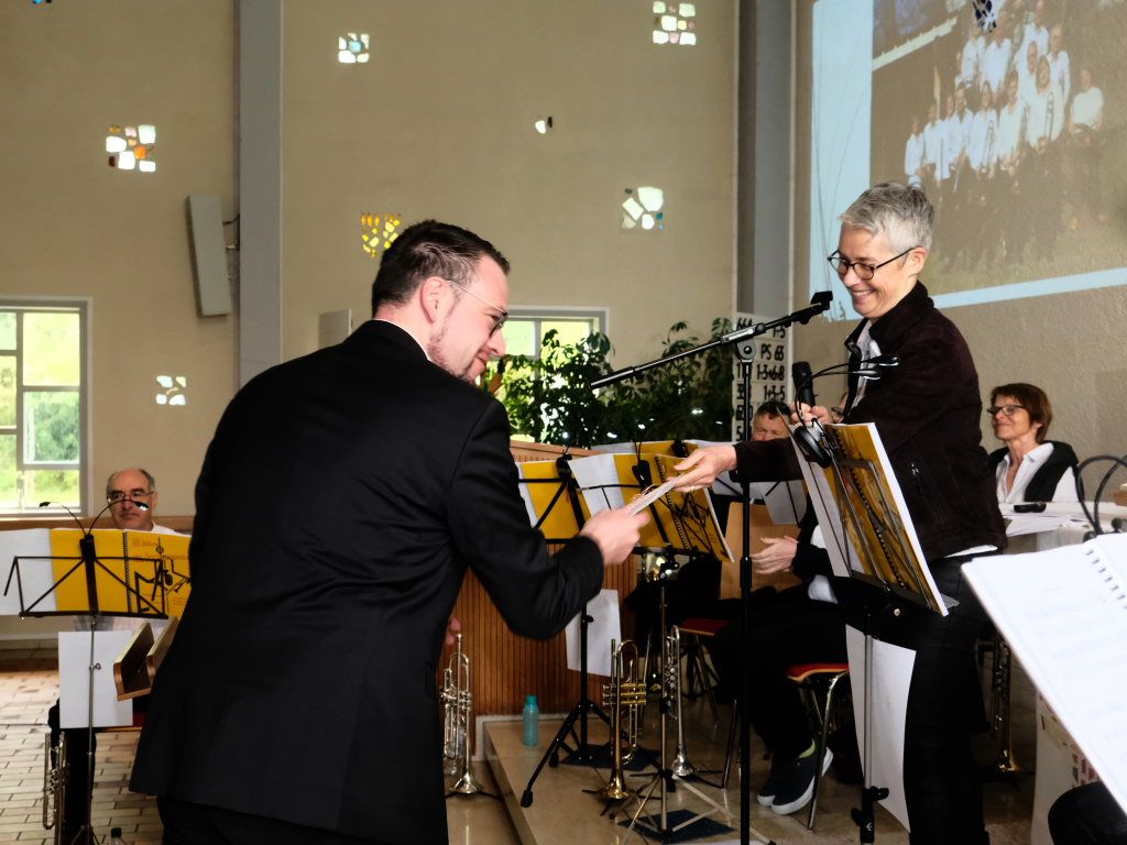 Dass es in der 60-jährigen Geschichte auch Tiefpunkte gab, verschwieg Julia Kiebler nicht: Der Posaunenchor war 1995 kurz vor der Auflösung gestanden, weil sich kaum noch Nachwuchs fand. Aber das Blatt wendete sich rasch, so dass er 2002 – dank ganzer Familien, die mitspielten – stolze 26 Bläser zählte. Es war 2004, als Theo Klein nach 40 Jahren den Taktstock an Hans-Ulrich Seufert übergab, den dieser dann 2017 wiederum an den aktuellen Chorleiter Johannes Wirth weitergab.