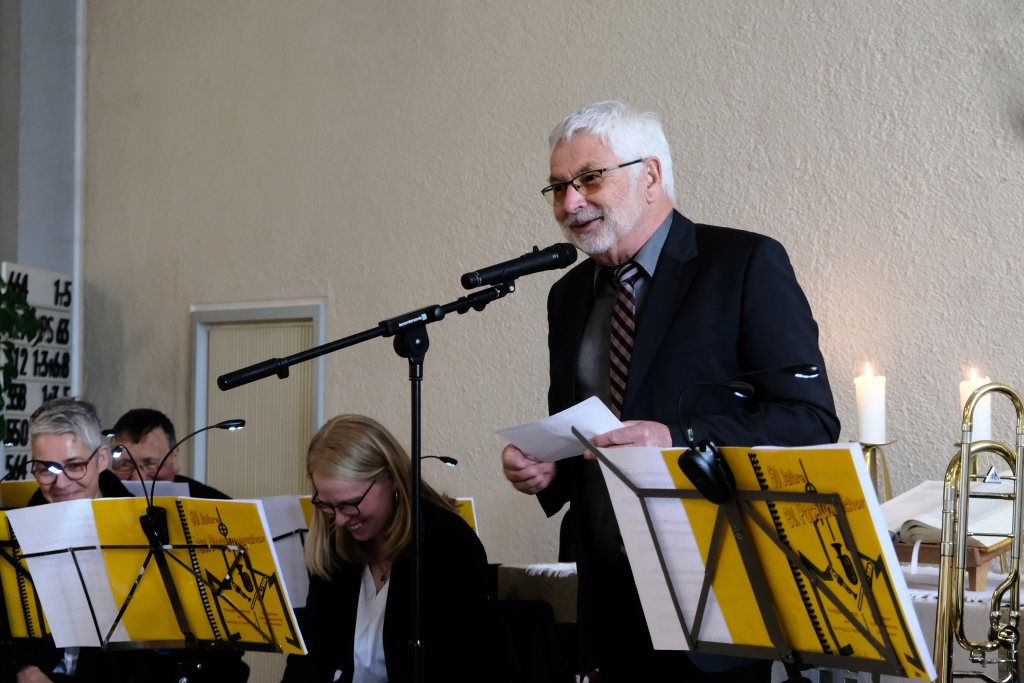Klaus Schütt, der Bürgermeisterin Scherer vertrat, sagte in seinem Grußwort, es heiße immer, die Stadt habe als Hochburg der Blasmusik zehn Musikkapellen: Das stimme so nicht, es seien 11 Blaskapellen. Denn der Posaunenchor zähle ohne Zweifel auch dazu. Er würdigte aber auch in besonderem Maße das Engagement von Theo Klein, der sich sehr um die Ökumene verdient gemacht habe.