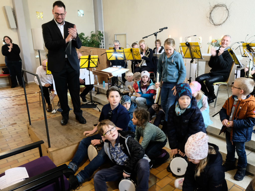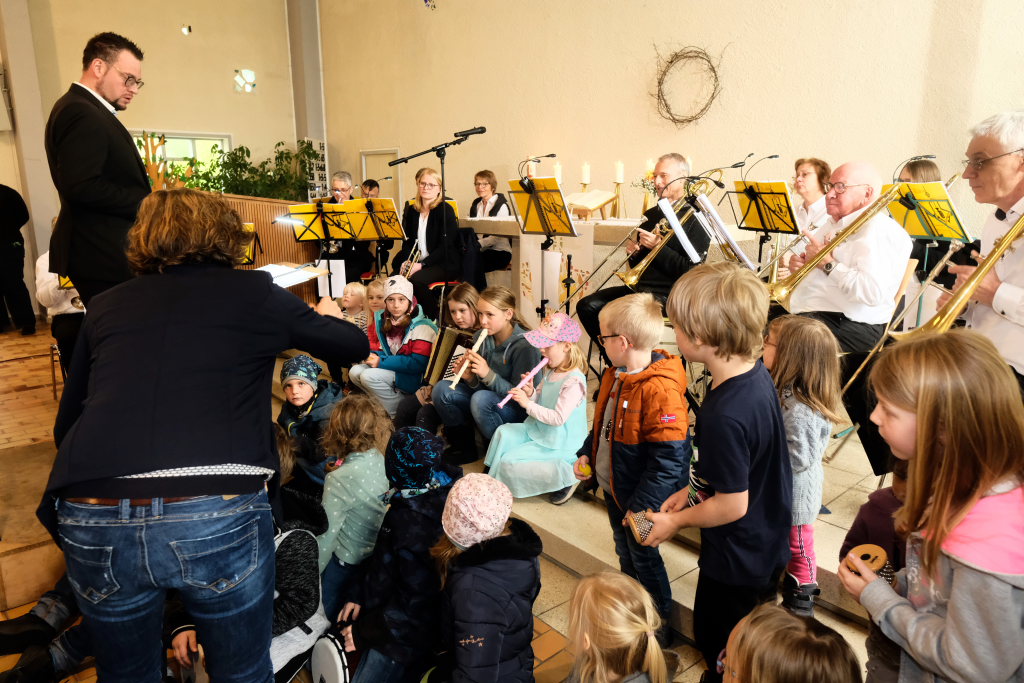 Eine Premiere gab es auch noch: Gemeinsam mit dem Posaunenchor spielten die Kinder der Kinderkirche, die unter der Anleitung von Franziska Nicolai und Heike Heil während der Gottesdienstzeit fleißig geprobt hatten, das Lied vom Kuckuck.