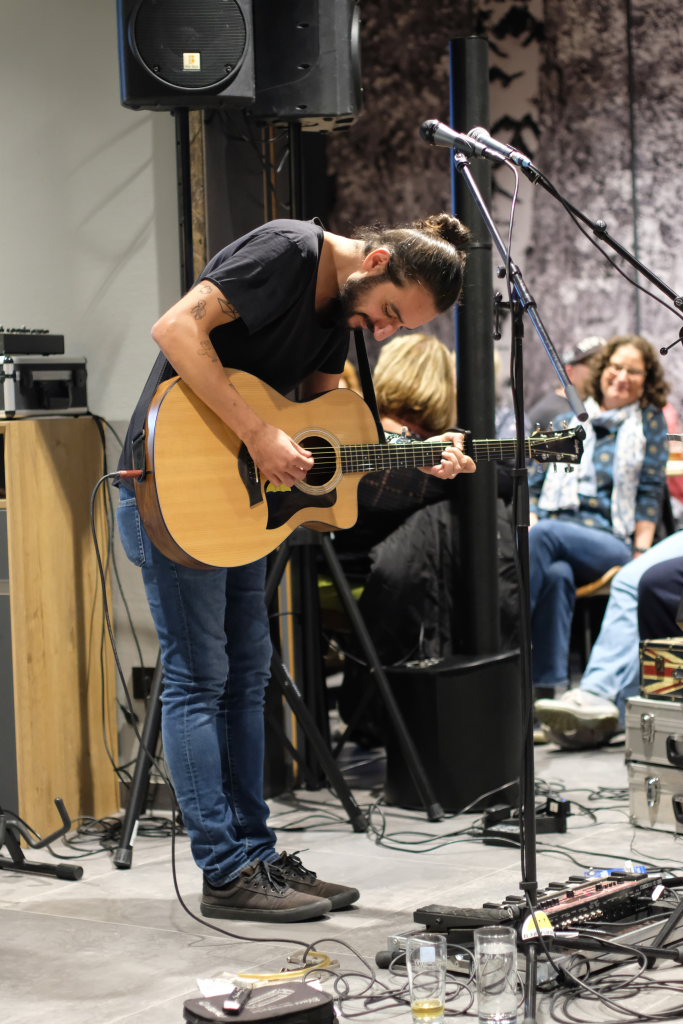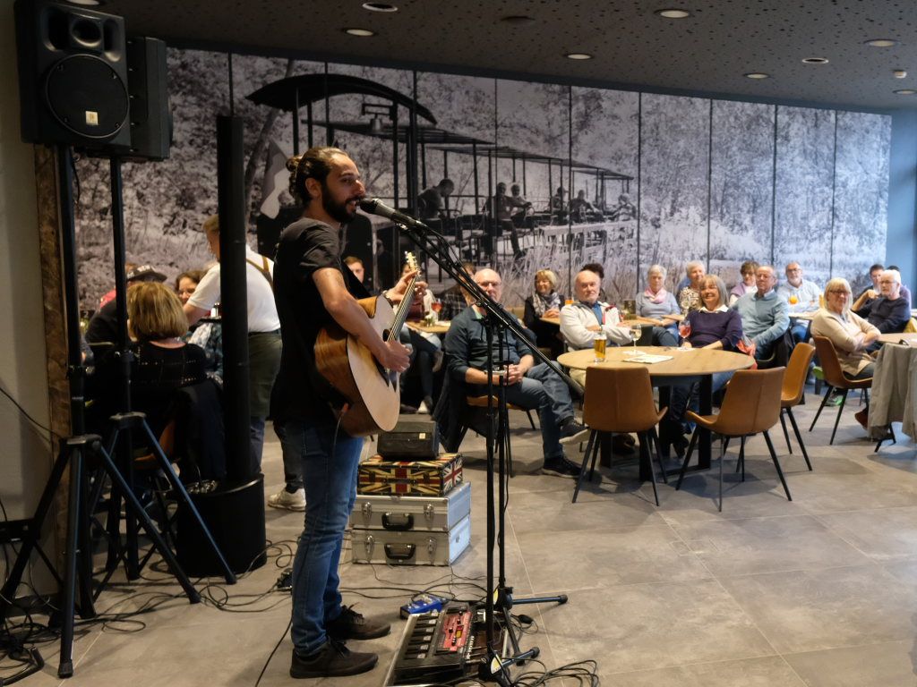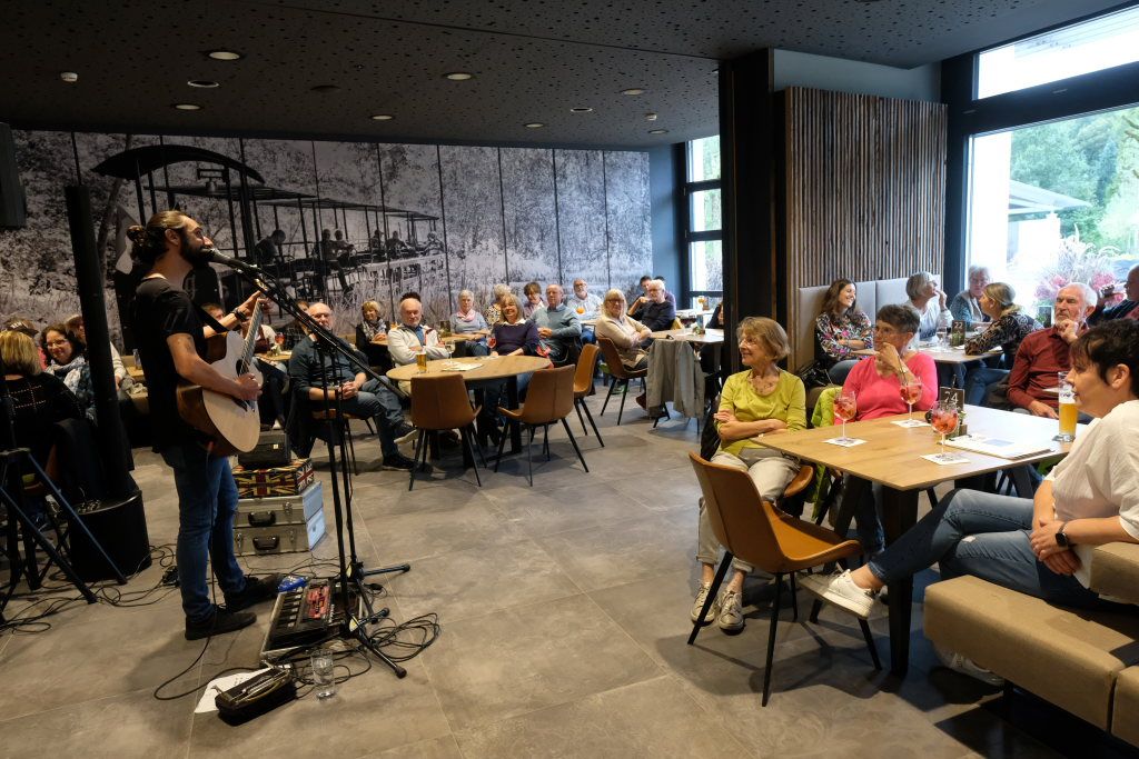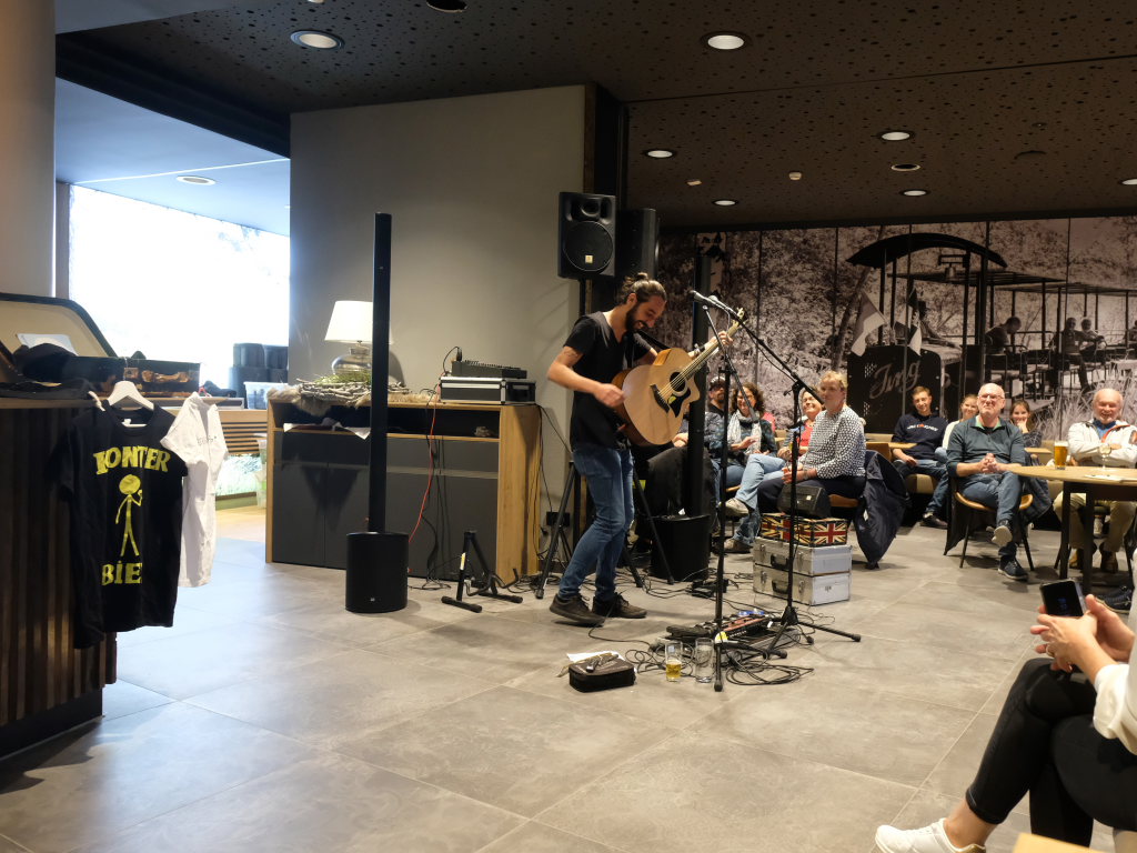 Da war es eine glückliche Fügung, dass der Wetterbericht für diese Woche eine eher herbstliche Witterung prophezeit hatte. Margit Rock als Verantwortliche der Bad Wurzach-Info hatte schnell reagiert und bei Petra Springer, der Eventmanagerin der Kurhaus-Kulturschmiede nachgefragt, ob man den nach eigenen Angaben „Liebemacher-Popmusiker“ nicht im Torfstecher auftreten lassen könne. Und so kam es, dass der Torfstecher bereits vor seiner offiziellen Eröffnung am kommenden Mittwoch seine Konzertpremiere erlebte.