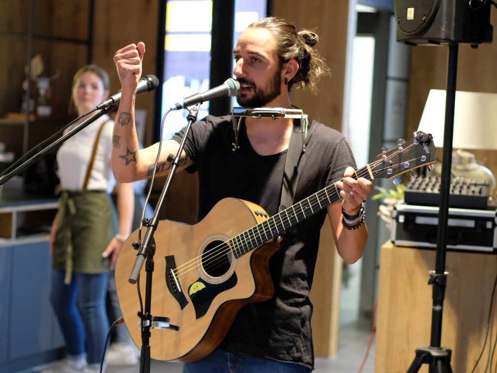 Der 35-jährige Aljosha Konter wuchs als jüngstes von fünf Kindern in Waldshut-Tiengen auf, beschloss nach einem Konzert der Band „Die Ärzte“ selbst Musiker zu werden und blieb nach seinem Studium der Musikpädagogik an der Akademie in Stuttgart „hängen“, um seine Profikarriere voranzutreiben. Was sehr gut funktioniert hat, wie mehrere Fernsehauftritte und der Gewinn mehrerer Musikpreise ausweisen.