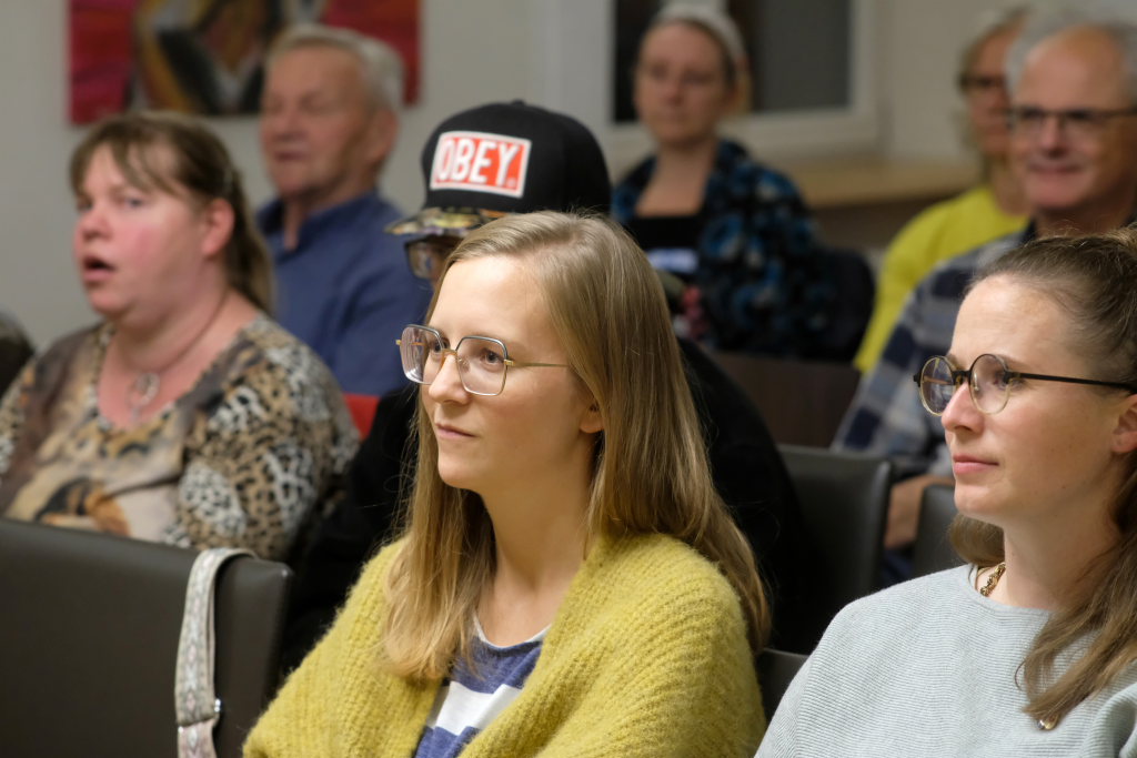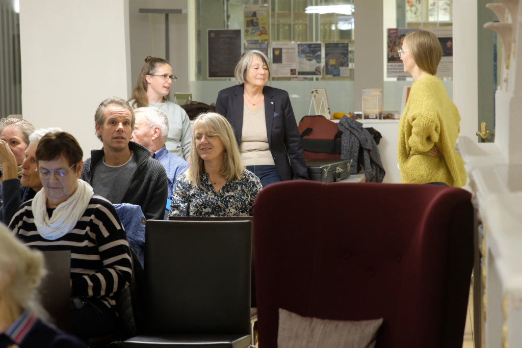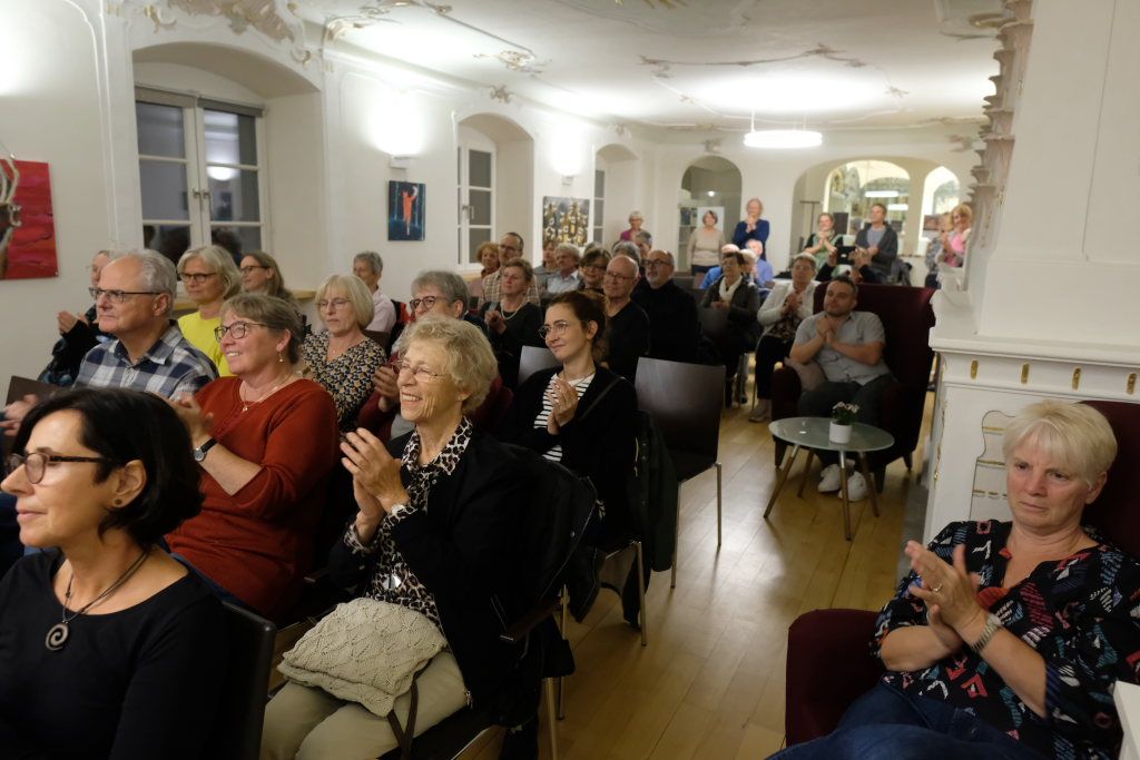 Mit viel Herzblut spielten sich die beiden Musikerinnen in die Herzen der Zuhörer, nachdem Simone Menig die Musikerinnen und Gäste im Namen des Partnerschaftsvereines begrüßt hatte. Dass auch die Auftritte des Vorjahres in Biberach und Bad Wurzach bei den beiden Musikerinnen Eindruck hinterlassen haben, zeigte Blin-Bolt, die seitdem versucht hat, Deutsch zu lernen, sich aber bei ihrer musikalischen Selbstvorstellung dann doch auf Google-Translate verließ. Ein interessantes Detail am Rande ist, dass es auch zwischen den Kanal-Inseln eine ähnliche Rivalität gibt wie etwa zwischen Bad Waldsee und Aulendorf: Jersey hieß bei Blin-Bolt nur „die andere Insel“….