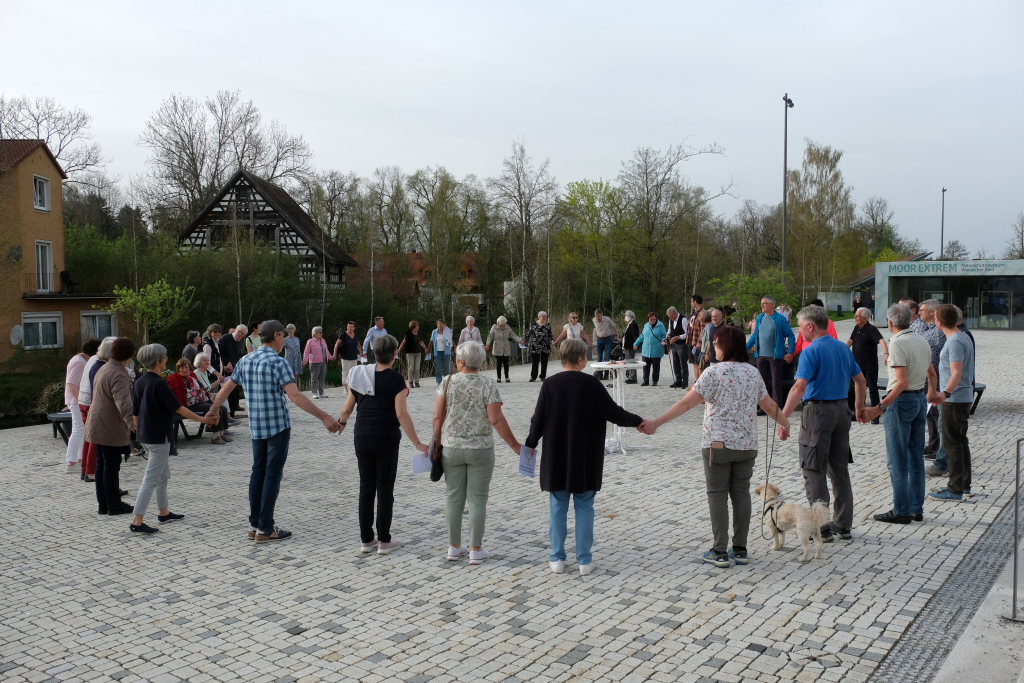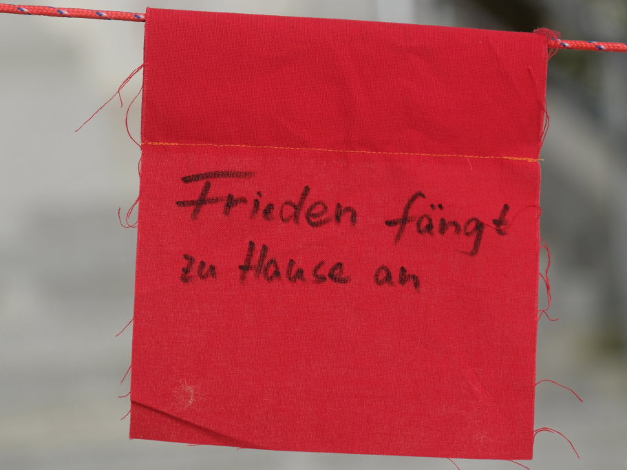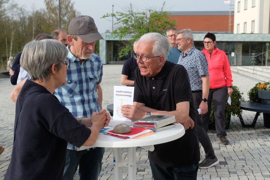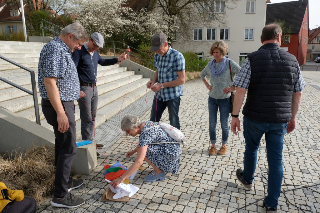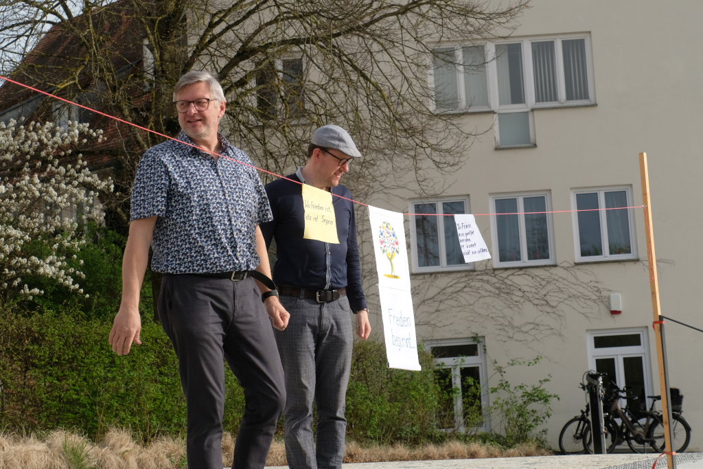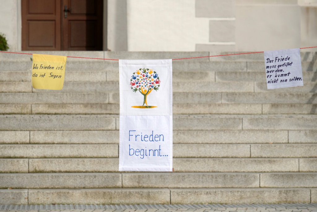 Nach dem gemeinsam gebeteten „Vater Unser“, bei dem sich alle Anwesenden im Kreis stehend an den Händen hielten, lud Pfarrer Kuczera die Anwesenden ein, einen eigenen Friedenswimpel zu schaffen. Mit der Bekanntgabe des nächsten Termins für das Friedensgebet – am 5. Mai – und dem gemeinsam gesungenen Lied „Wo Menschen sich vergessen“ endete das erste Friedensgebet des Jahres 2024 auf dem sonnendurchfluteten Klosterplatz.