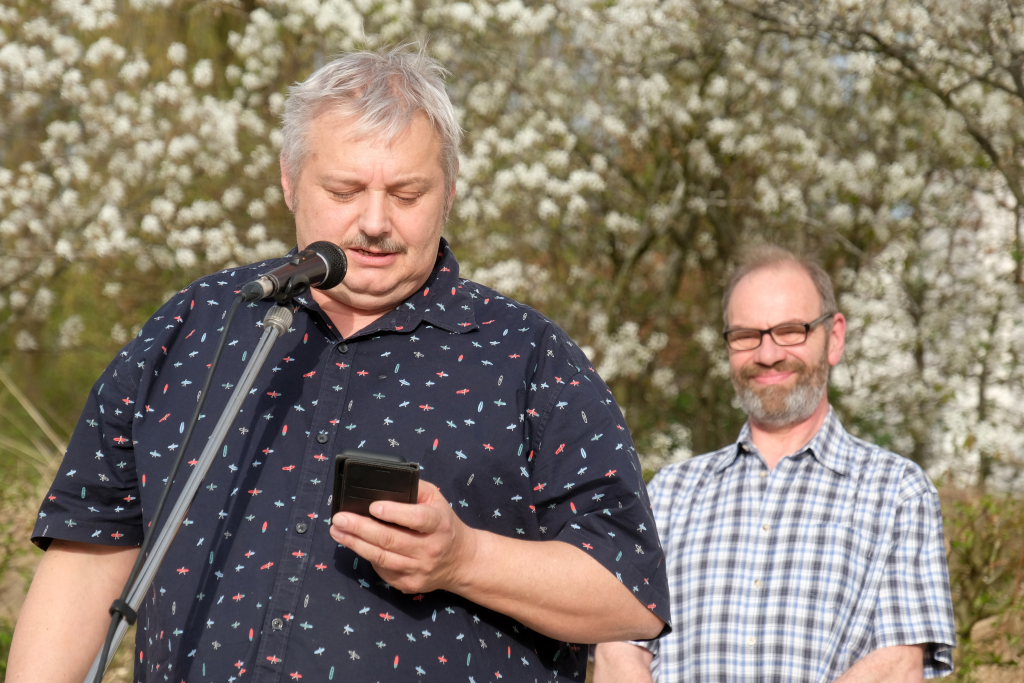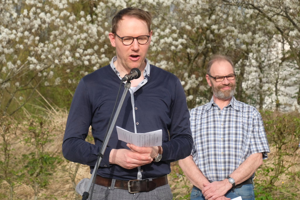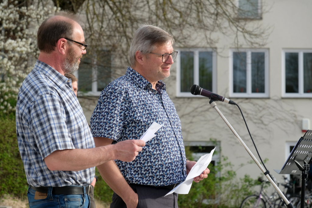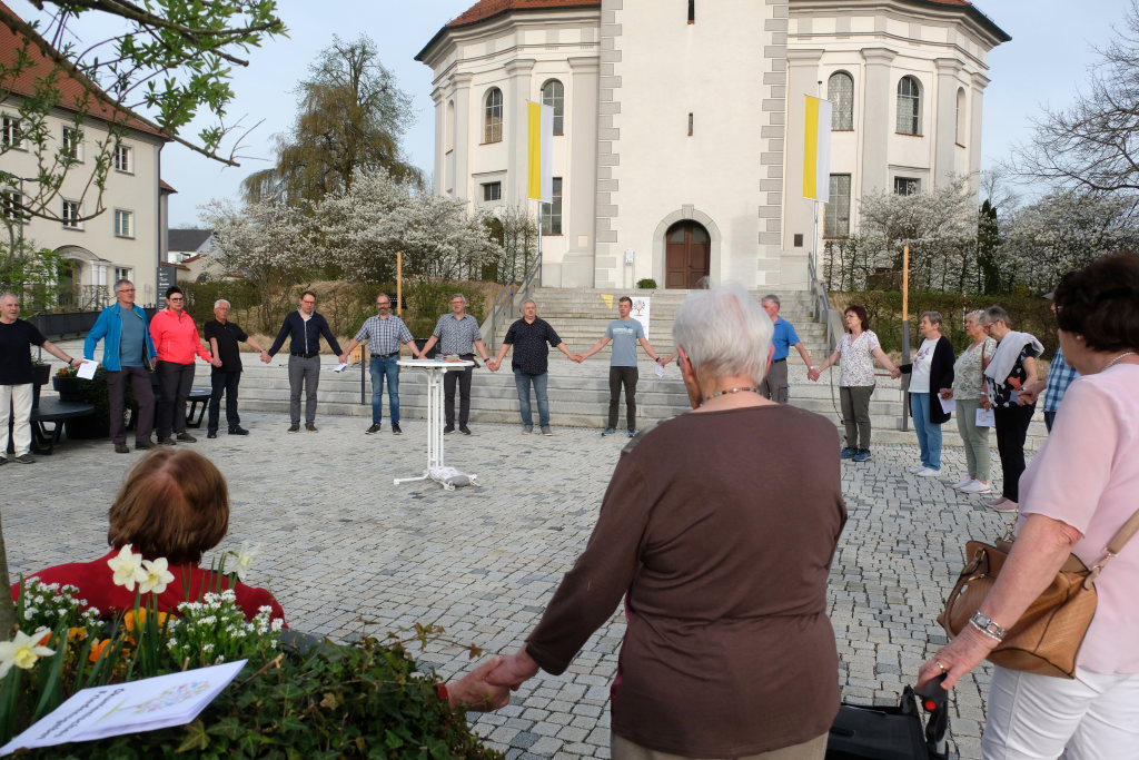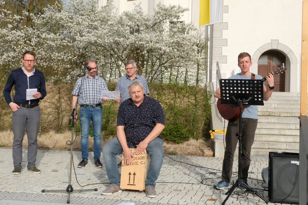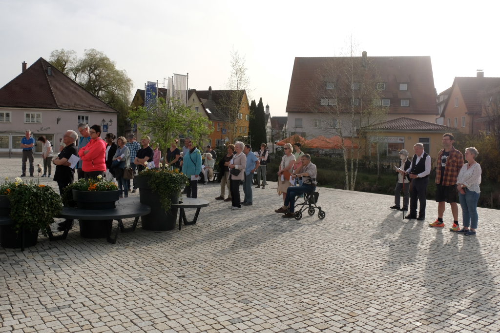 Für die freie Christengemeinde sagte Lothar Dopfer, der innere Friede, den der Mensch mit sich schafft, bedeute zugleich auch Frieden mit Gott zu schließen. Denn der Frieden zwischen Gott und den Menschen beginne mit dem auferstandenen Jesus: Im Johannes-Evangelium heißt es in Kapitel 3, Vers 16 und 17: „Denn Gott hat die Welt so sehr geliebt, dass er seinen einzigen Sohn hingab, damit jeder, der an ihn glaubt, nicht verloren geht, sondern ewiges Leben hat. Denn Gott hat seinen Sohn nicht in die Welt gesandt, damit er die Welt richtet, sondern damit die Welt durch ihn gerettet wird.“ Die Trennung zwischen Gott und den Menschen seit dem Sündenfall von Adam und Eva habe Jesus durch seinen Kreuzestod aufgehoben. Wenn man nun anstelle des Wortes „Welt“ seinen eigenen Namen einsetze, sei das Gebet ein sehr persönliches. Er beendete seinen Beitrag mit einem Lied des christlichen Liedermacherpaares Lari und Lukas Dopfer, das Wurzacher Wurzeln hat.