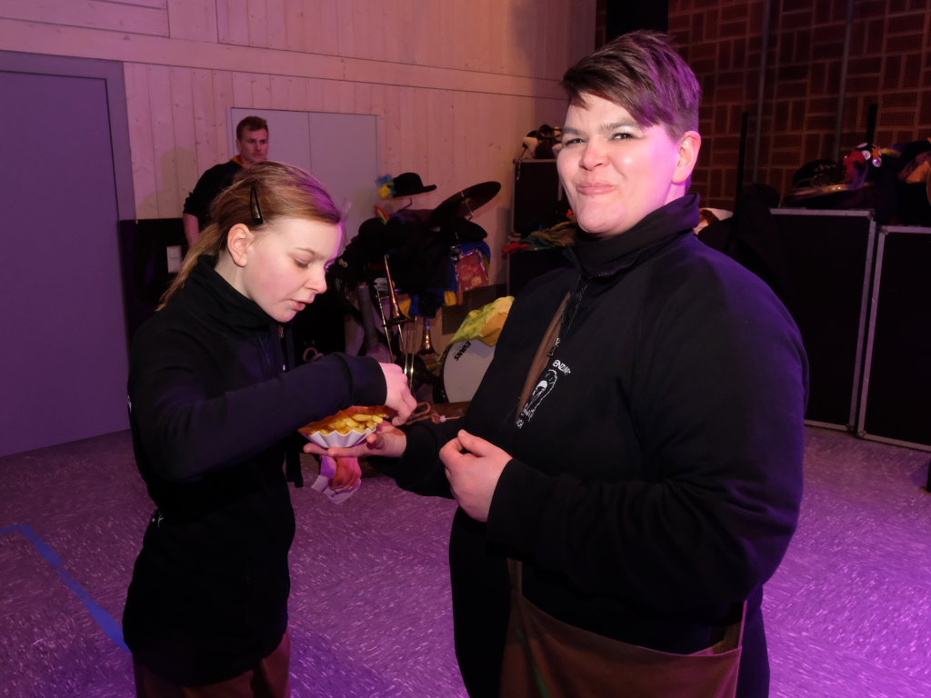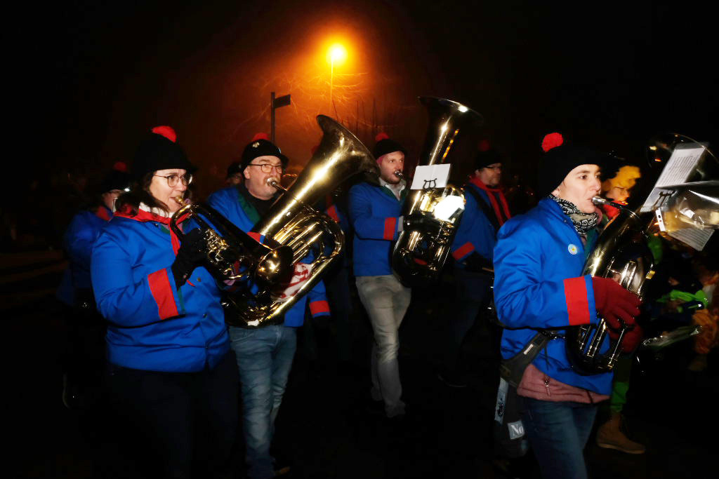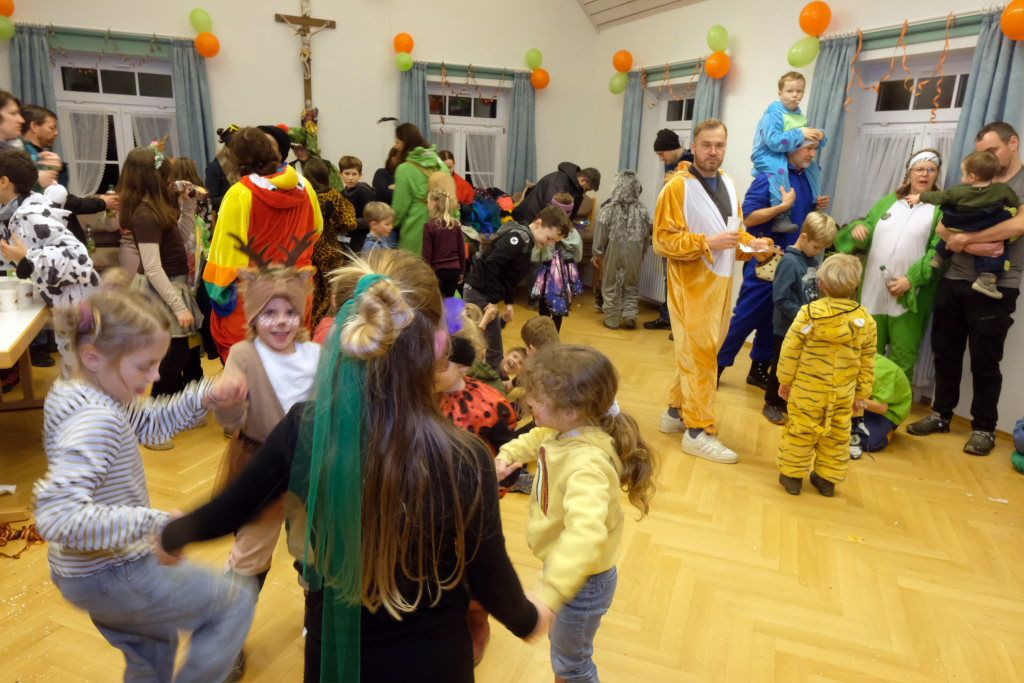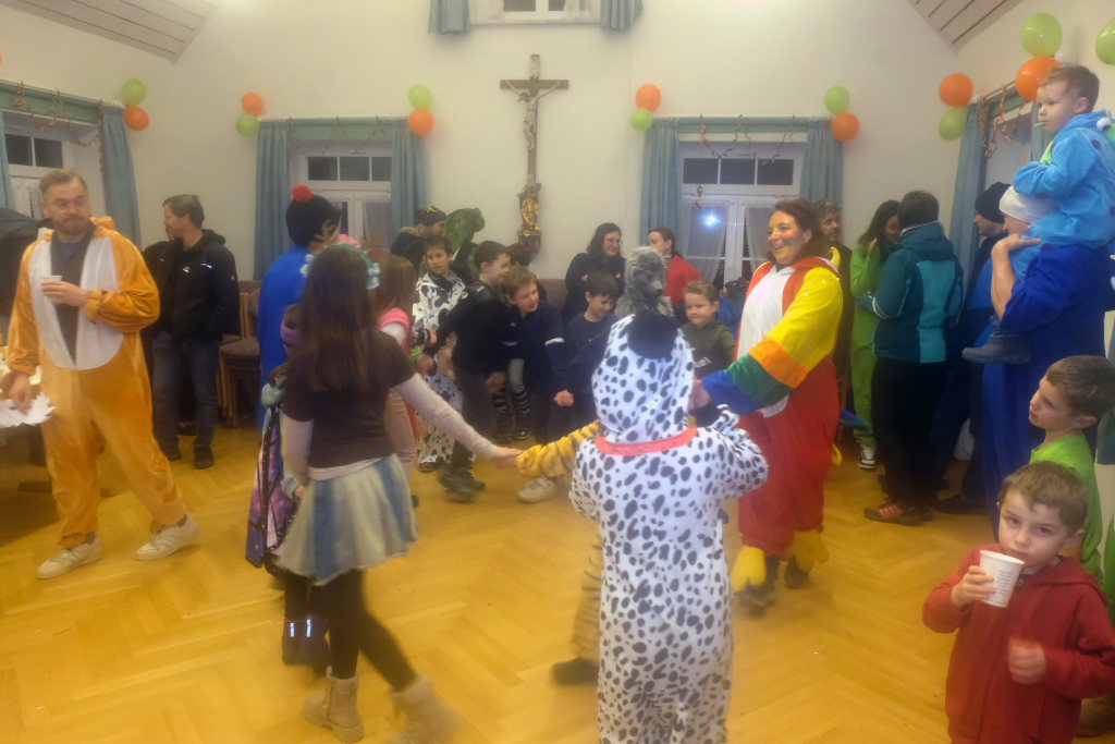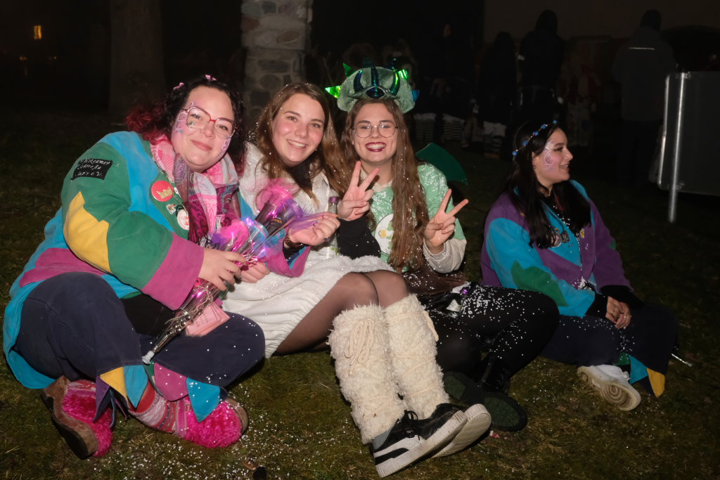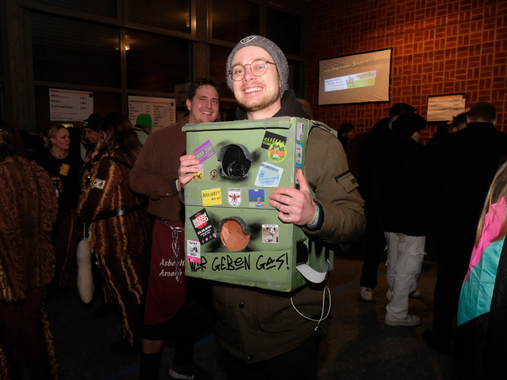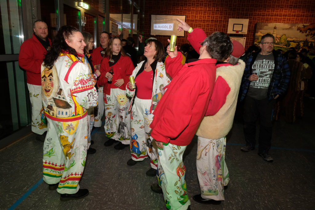 Als um 18.01 Uhr der Startschuss für den kleinen Narrensprung fiel, war die Hauptarbeit für die gastgebende Zunft um Zunftmeisterin Christine Veser und ihren Vize Ewald Bodenmüller schon lange erledigt. Im Vergleich zum Sprung 2018 hatten die aktuell rund 120 Mitglieder einen weitaus größeren Aufwand betrieben, damit sich die großen und kleinen Narren „auf dem Berg“ wohlfühlten. Denn im Anschluss an den Sprung wurde nicht nur die Halle zur Partymeile, sondern ein Festzelt auf dem Parkplatz bei der Halle wurde zur Narren-Disko. Und das Haus St. Martin, in dem vor dem Sprung der Zunftmeisterempfang stattgefunden hatte, wurde zur Disko – mit Tanz- und Spieleboden für die Kleinen.