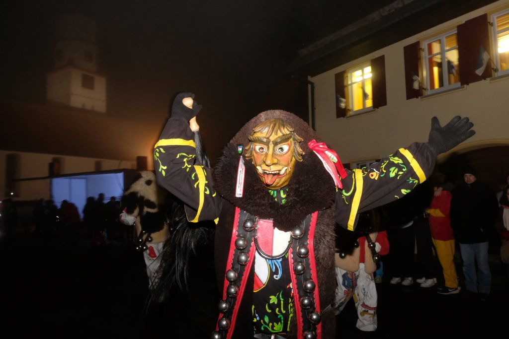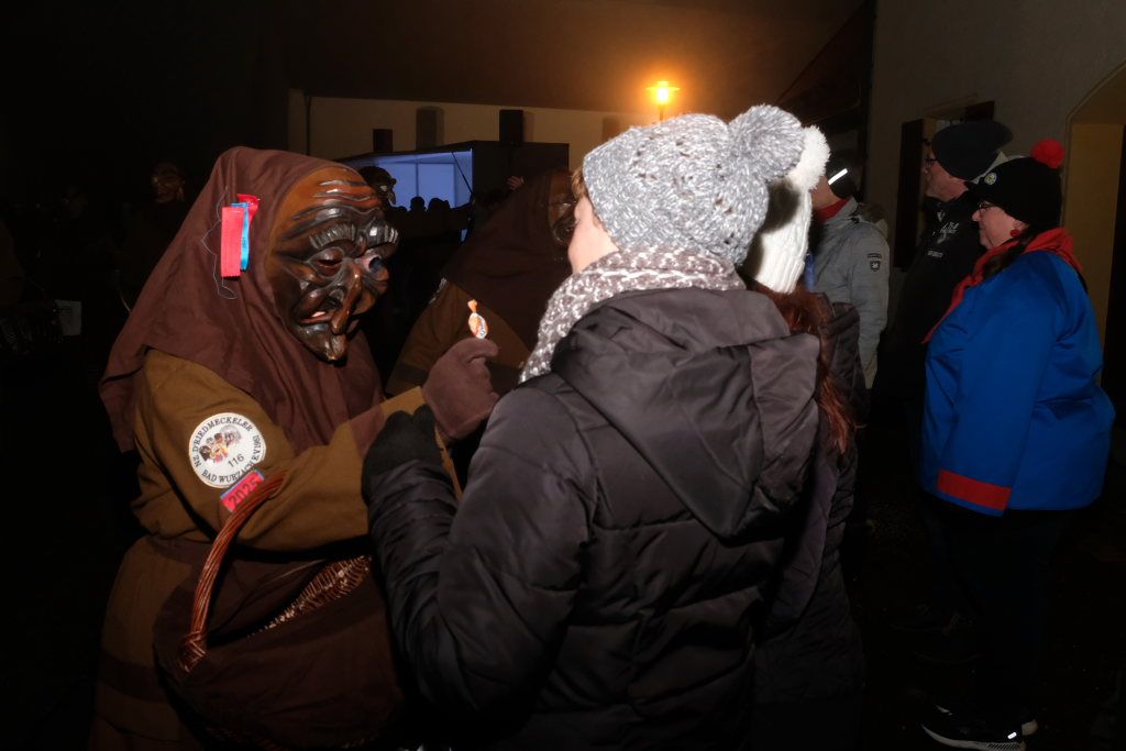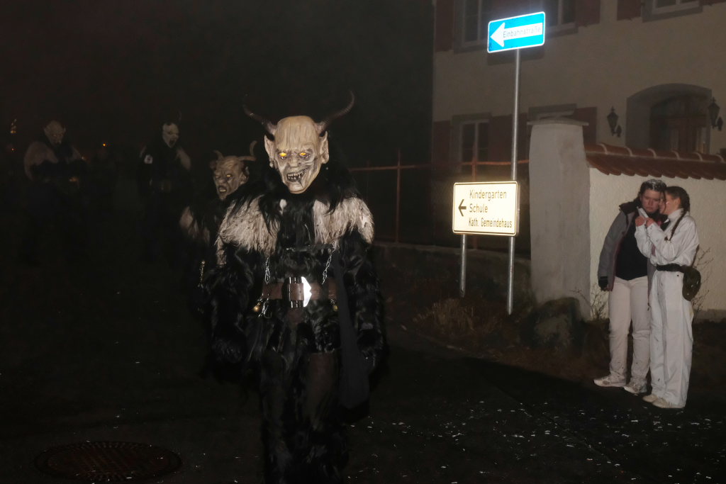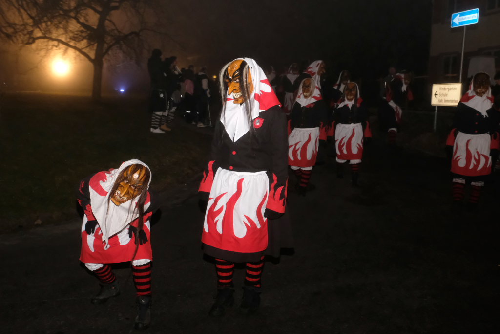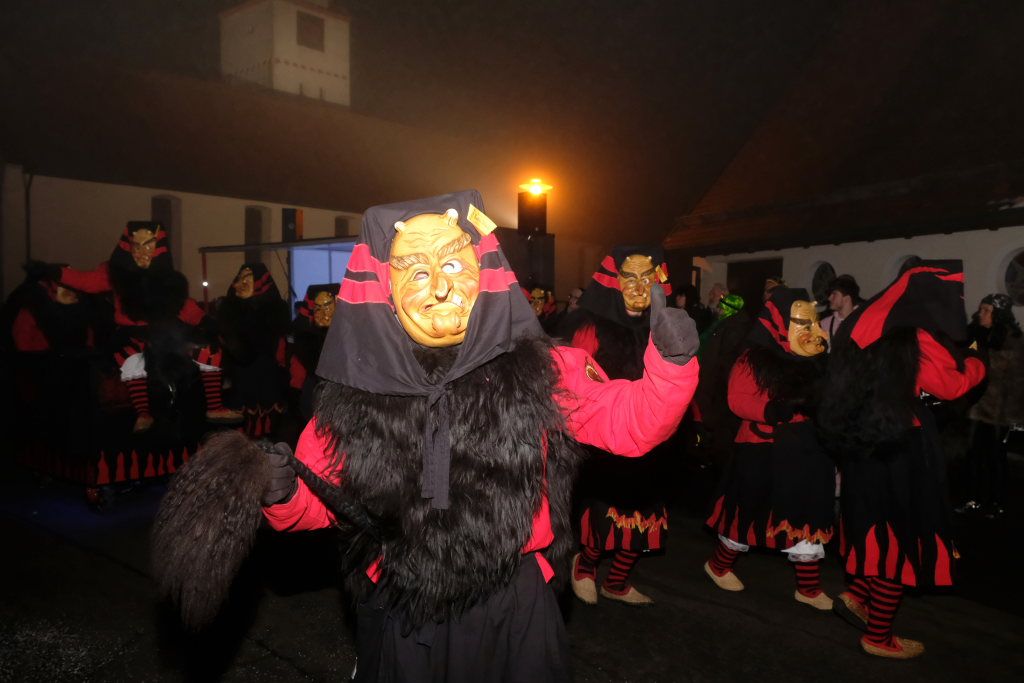 Dass die Eintürner Zunft Mitglied Bayrisch Schwäbischen Fastnachtverbandes (BSF) ist, lässt sich auch an der Teilnahme der Narrenzunft Buchenberg ablesen, die mit Tobel-Teufel und Kreuz-Hexa die doch größere Anfahrt auf sich genommen hatte. Den schaurig-schönen Abschluss des Zuges bildeten die Albmahre, eine kleine unabhängige Zunft aus Biberach, deren gespenstisch anmutende Masken sehr gut zu einem Nachtumzug passen.