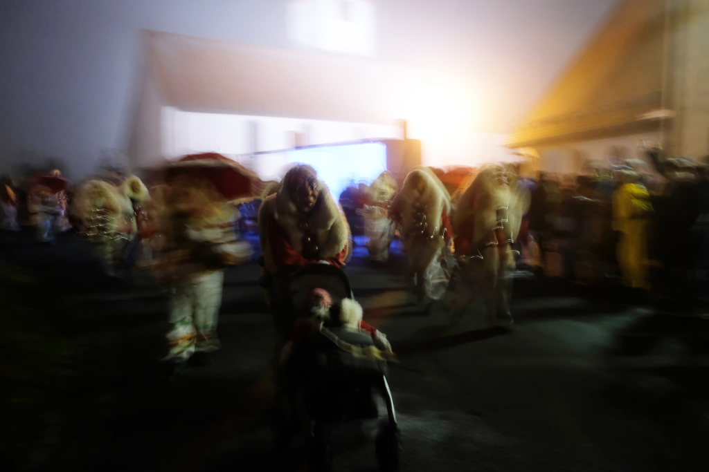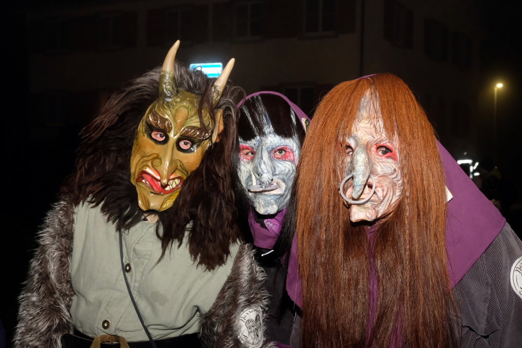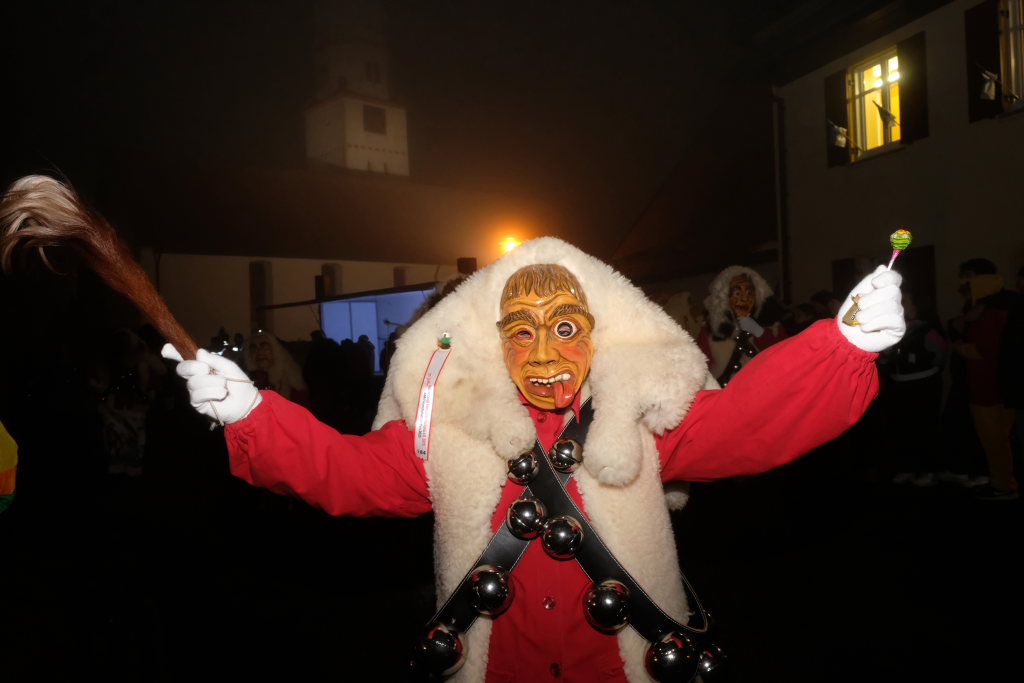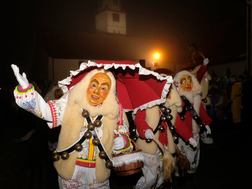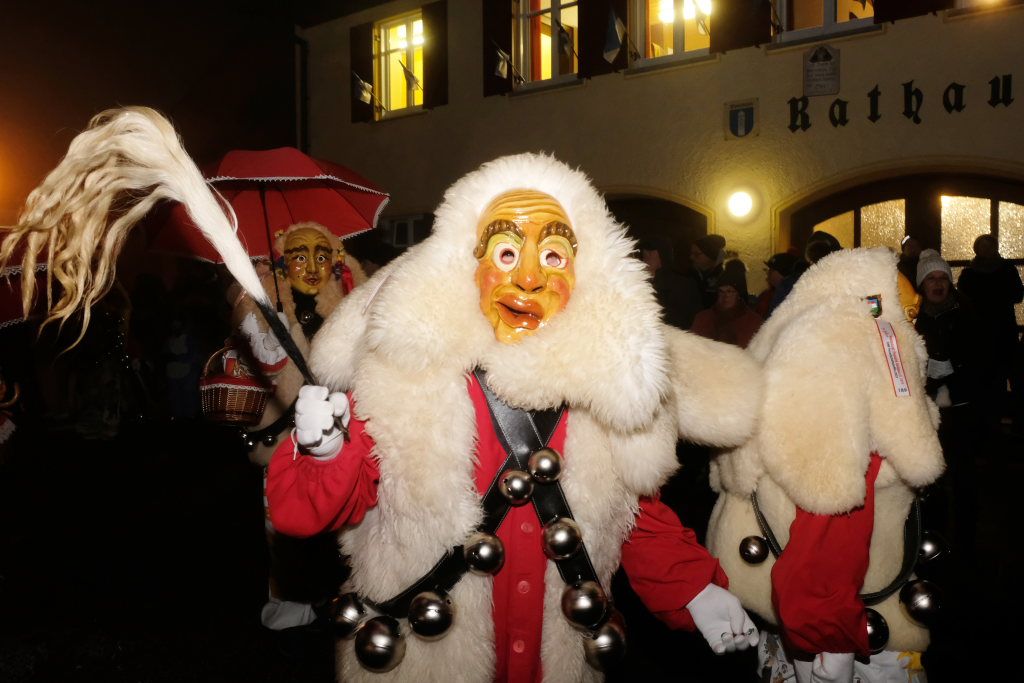 Dass die Eintürner Zunft Mitglied Bayrisch Schwäbischen Fastnachtverbandes (BSF) ist, lässt sich auch an der Teilnahme der Narrenzunft Buchenberg ablesen, die mit Tobel-Teufel und Kreuz-Hexa die doch größere Anfahrt auf sich genommen hatte. Den schaurig-schönen Abschluss des Zuges bildeten die Albmahre, eine kleine unabhängige Zunft aus Biberach, deren gespenstisch anmutende Masken sehr gut zu einem Nachtumzug passen.