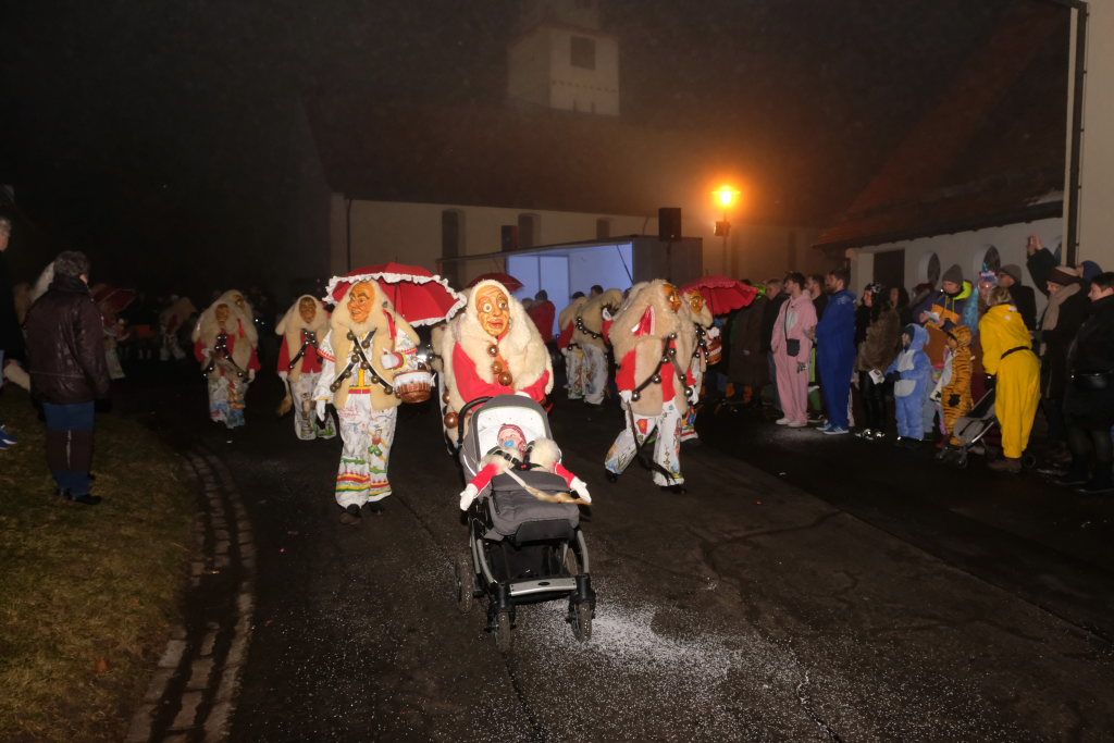 Eintürnen – Zum zweiten Mal nach 2018 ging rund um den Pfarrgarten in Eintürnenberg die närrische Post ab. Die Narrenzunft Bockland Eintürnen veranstaltete in diesem Jahr wieder ein Dämmersprüngle, bei dem 20 Gruppen am Start waren.
