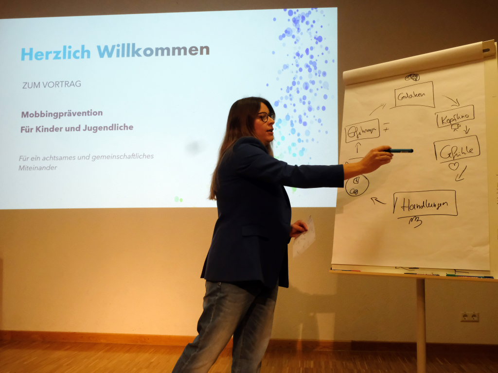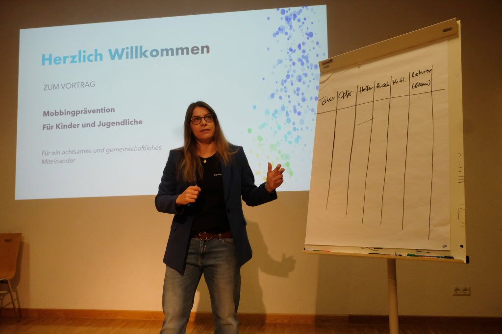 Laut einer Studie der Bertelsmann Stiftung leidet jedes dritte Kind aktuell unter Mobbing. Mit dem Vortrag sollten Eltern sensibilisiert werden, Anzeichen zu erkennen, wenn das eigene Kind gemobbt wird. Aber auch zu klären, wie Kinder gestärkt werden können, dass sie nicht daran zerbrechen, und auch was die Gesellschaft tun kann, um eine grundlegende Änderung herbei zu führen.