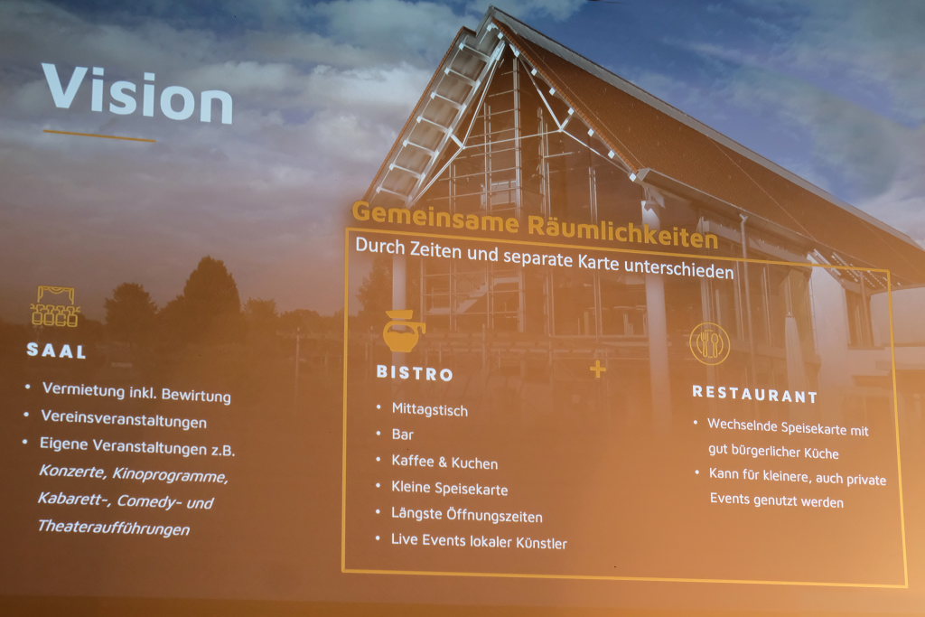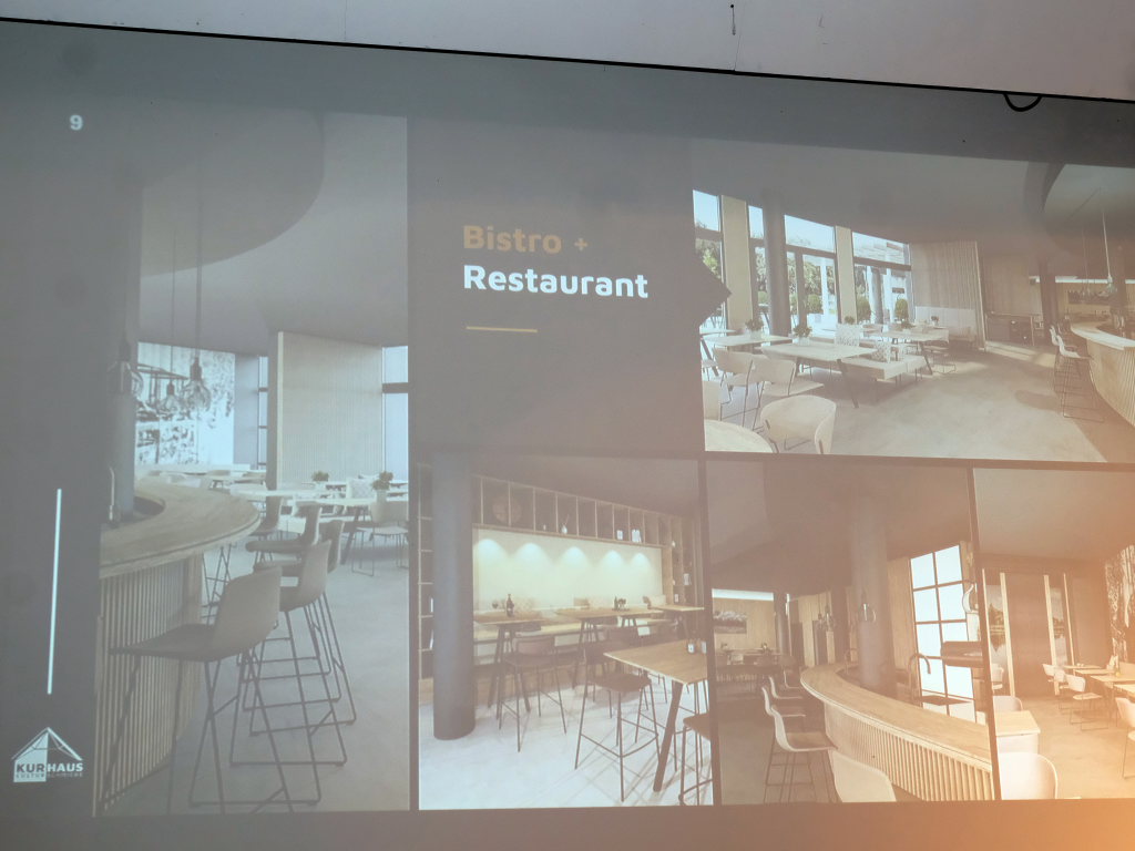 Die größte bauliche Neuerung betrifft den Eingangsbereich: Das Restaurant, das zukünftig den Namen „Torfstecher-Restaurant & Bistro“ tragen wird und der Saal der „Kurhaus Kulturschmiede“ werden künftig separate Eingänge haben, „damit sich niemand in den Saal verlaufen kann“, was während des regulären Restaurantbetriebes nicht kontrolliert werden könne, wie Bernhard Schad es ausdrückte. Die Pläne für den Umbau stammen von Gabriele Tobisch aus Hauerz, für das Interieur des Restaurants wird Roland Schönegg verantwortlich zeichnen.
