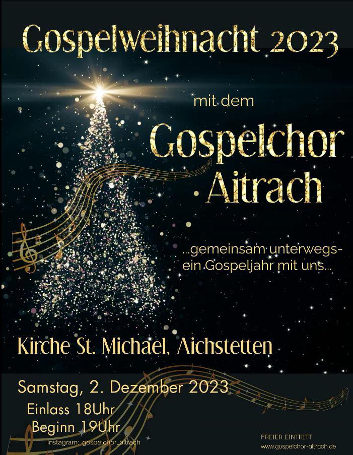 Aitrach – Traditionell zum 1. Advent lädt der Gospelchor Aitrach am 2. Dezember zum diesjährigen Weihnachtskonzert in die Kirche St. Michael in Aichstetten ein.