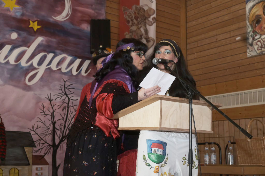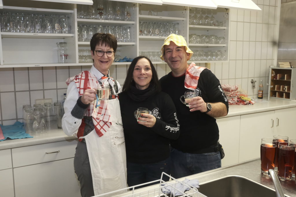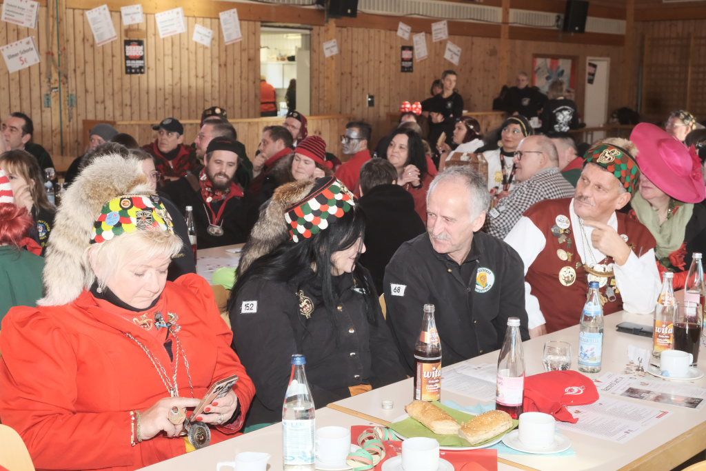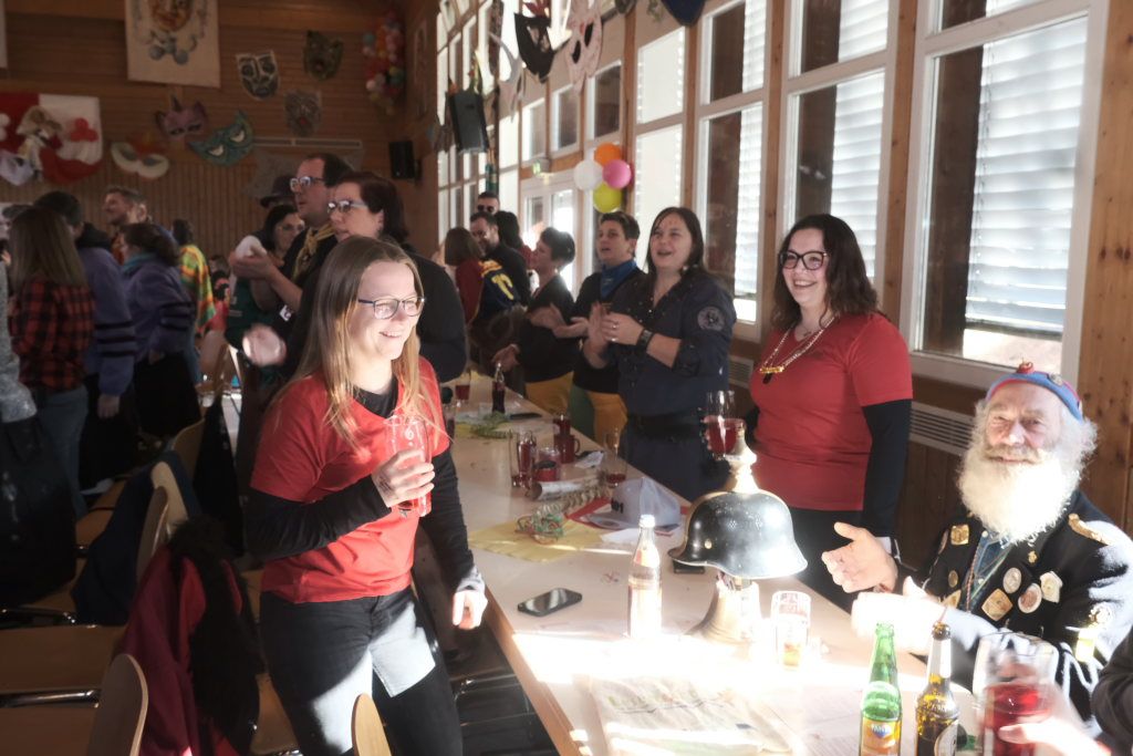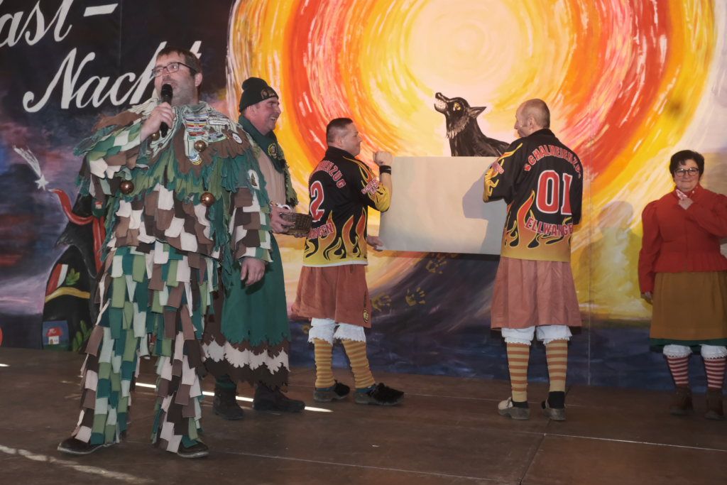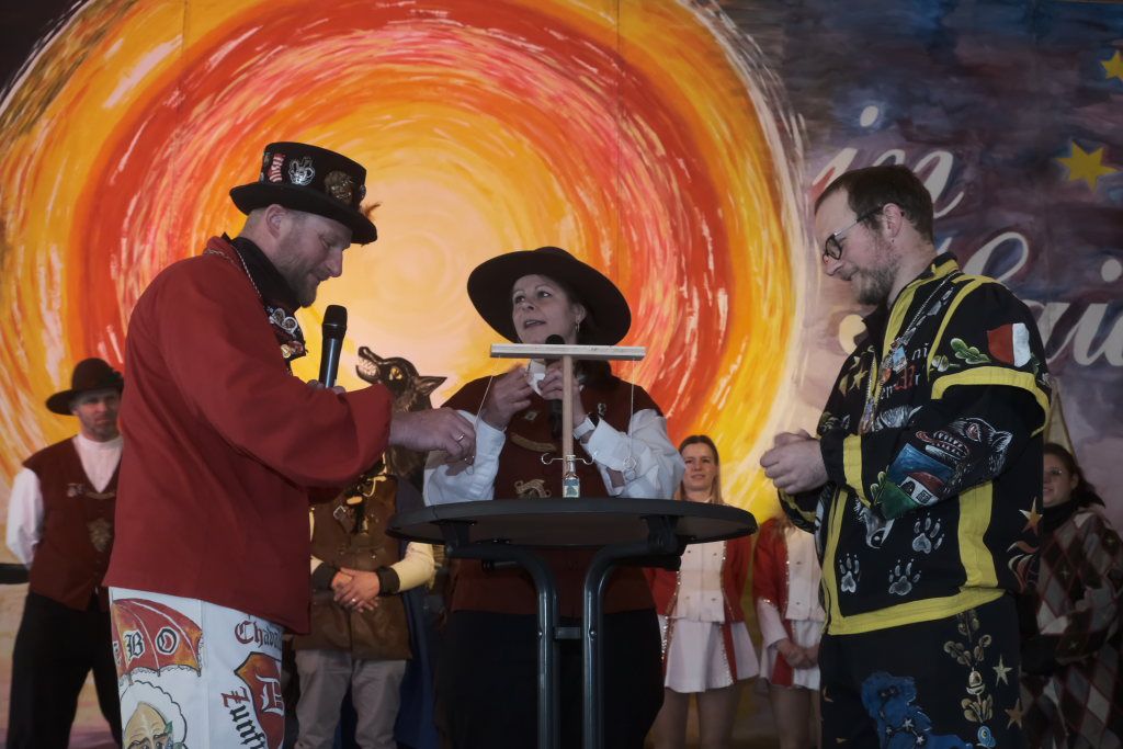 Um Sauberkeit bemüht, hatte die Hausherrin, Ortsvorsteherin Ernestina Frick, dem Zunftmeister einen Staubwedel mit Teleskopstiel als Gastgeschenk mit gebracht und mit den Gelächter im Saal hervorrufenden Worten: „So jetzt hoschd Du den längeren …als König Charles“ überreicht. Hintergrund: Seit einiger Zeit gibt es keinen Hausmeister für die Halle mehr.