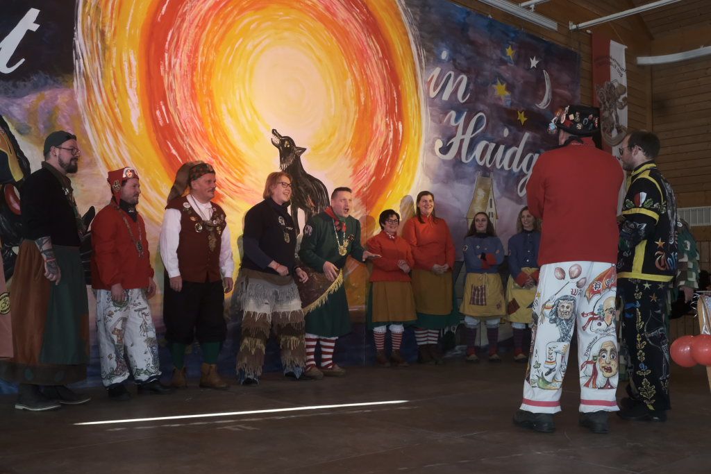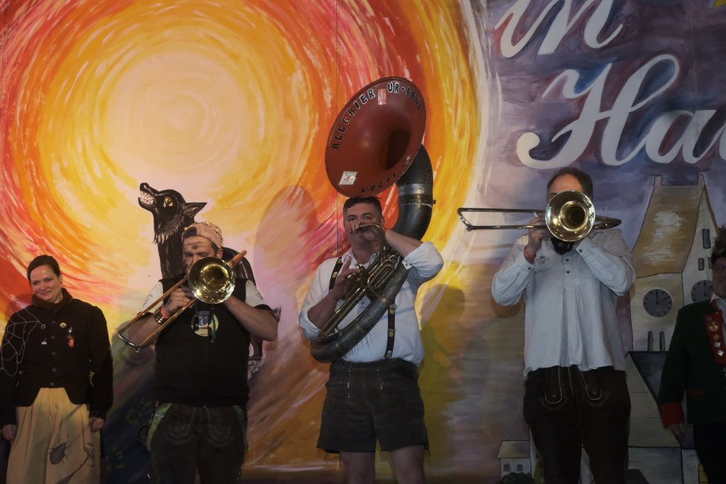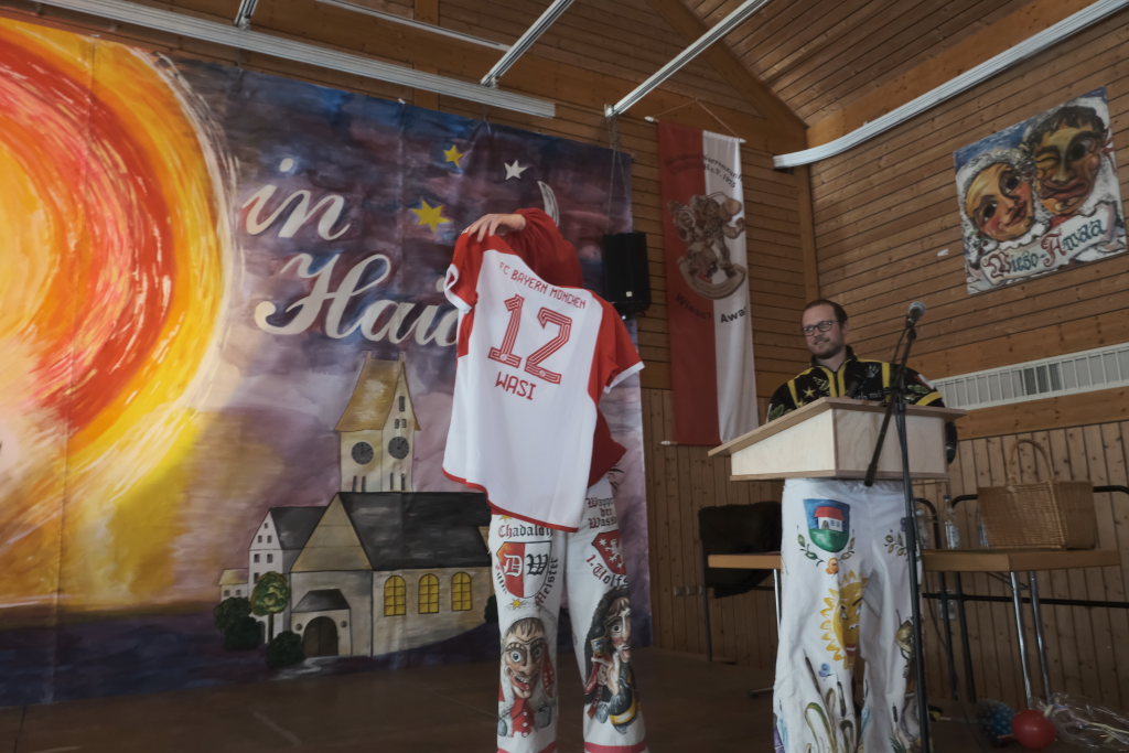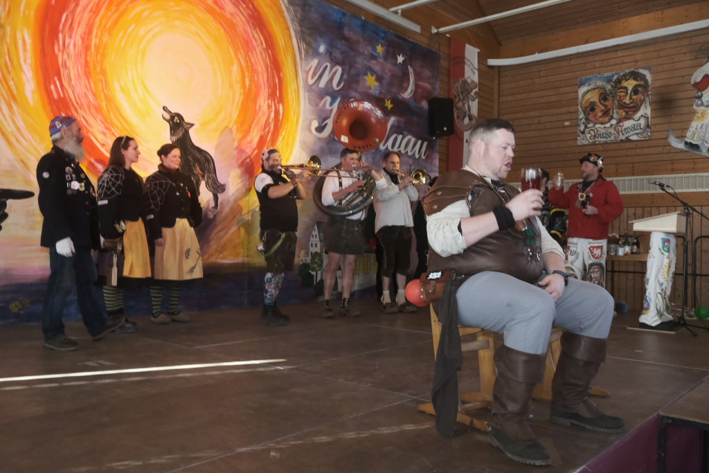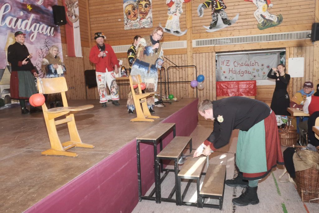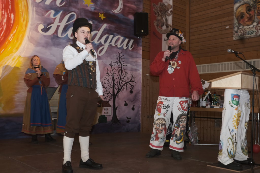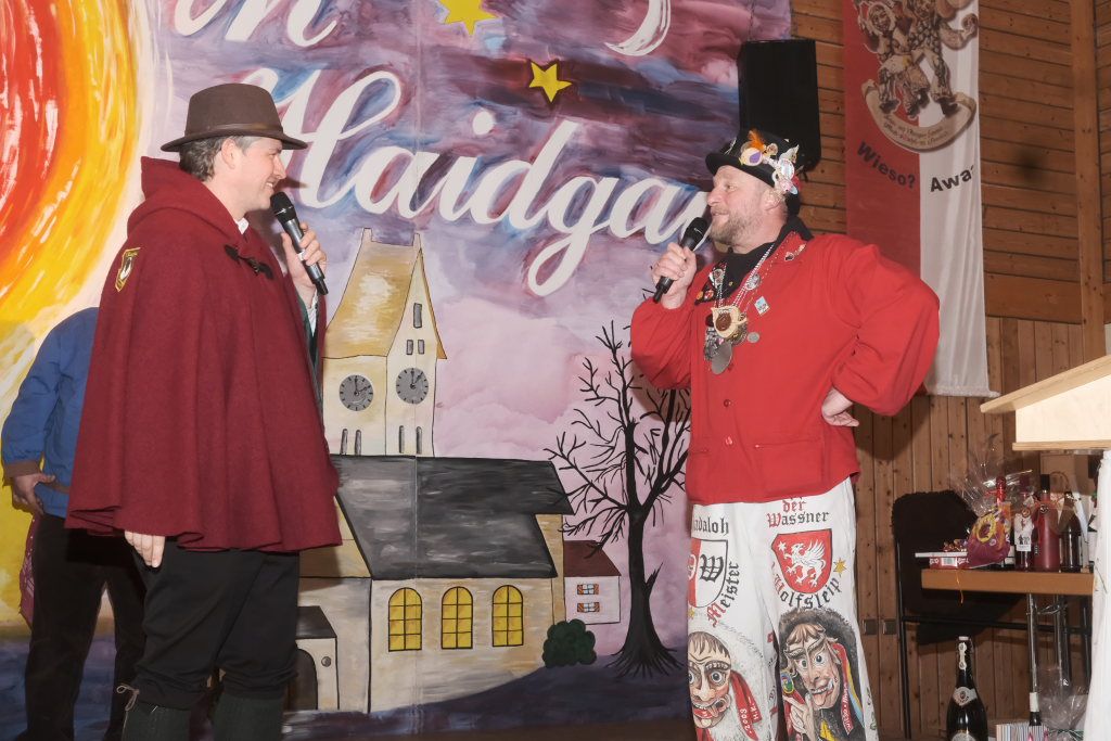 Mit einer gesungenen Liebeserklärung an die Haidgauer Fasnet wartete der Zunftmeister Marco Gärtner der Bockstall Narren aus Weingarten auf. Ein Lied das durchaus das Zeug haben könnte zur Hymne der Haidgauer Fasnet zu werden, wie Iris Kohler die Zunftschreiberin der Chadaloh und musikalisch durchaus bewandert anerkennend feststellte. Einziges Problem dabei: Es müsste jemand im Narrenverein Dudelsack spielen lernen….