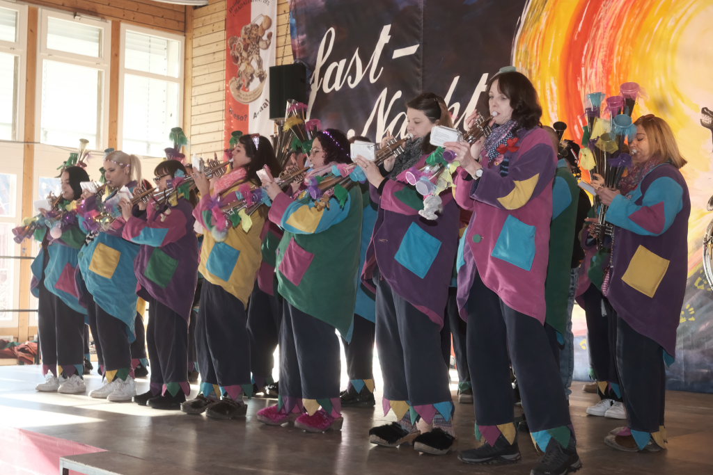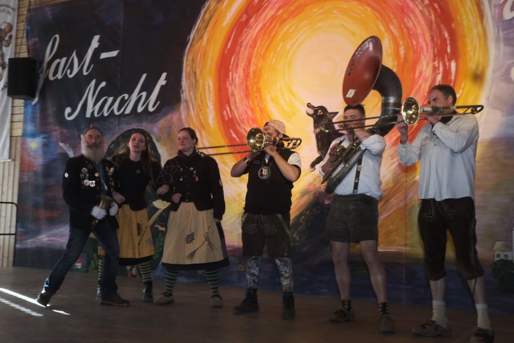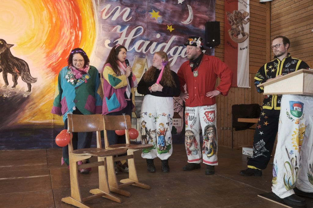 Wie immer eröffnete Daniel Wassner mit einem dreifachen „Wieso – Awaa“ den diesjährigen Zunftmeisterempfang in der Turn- und Festhalle, ehe die Hoigamer Stroaßa Hup´r musikalisch das Stimmungsbarometer ansteigen ließen. Apropos Stroaße Hup´r: Deren Vertreterinnen sorgten mit ihrer Idee, zwei Schweigestühle auf der Bühne dafür, dass die Disziplin im Saal einigermaßen gewahrt wurde.