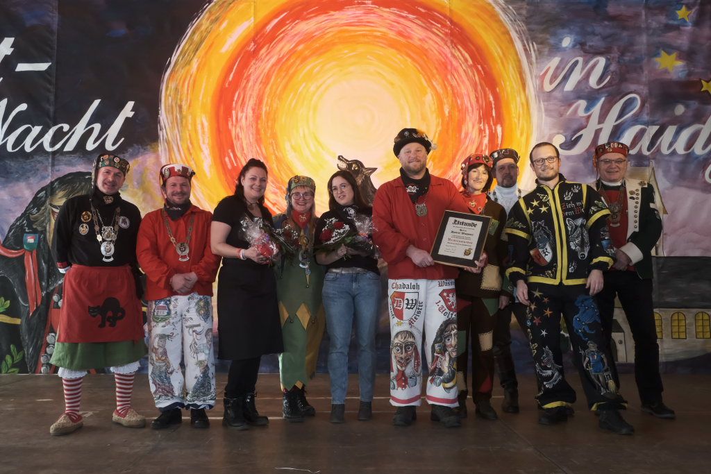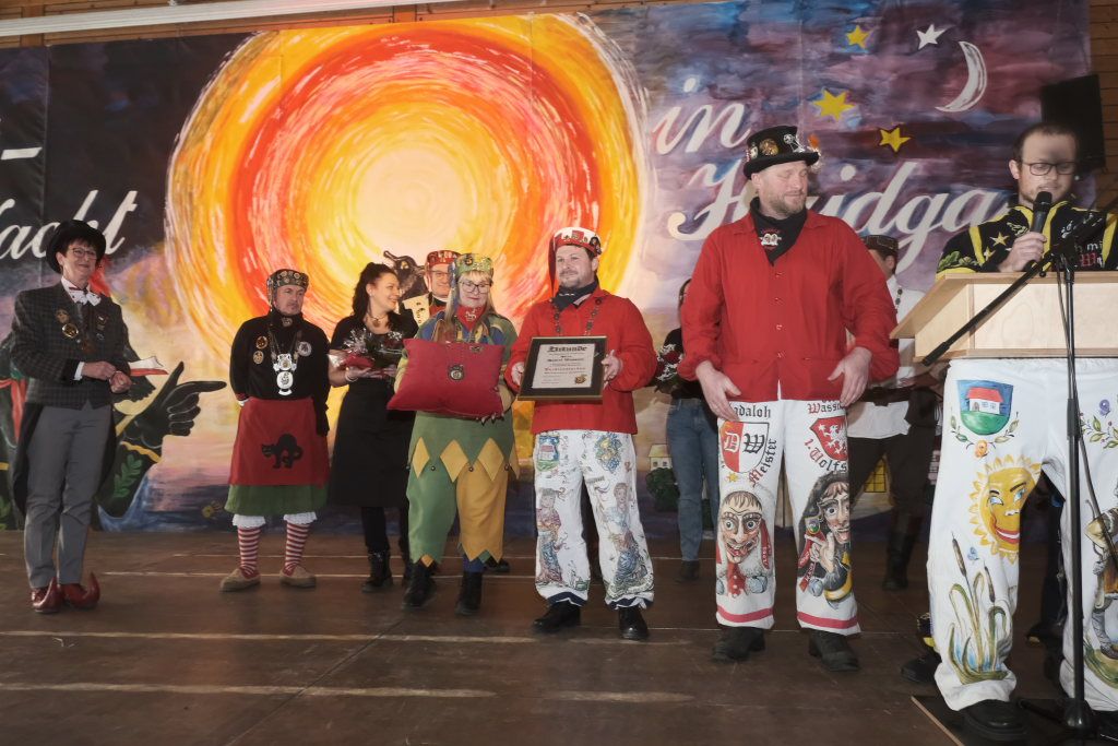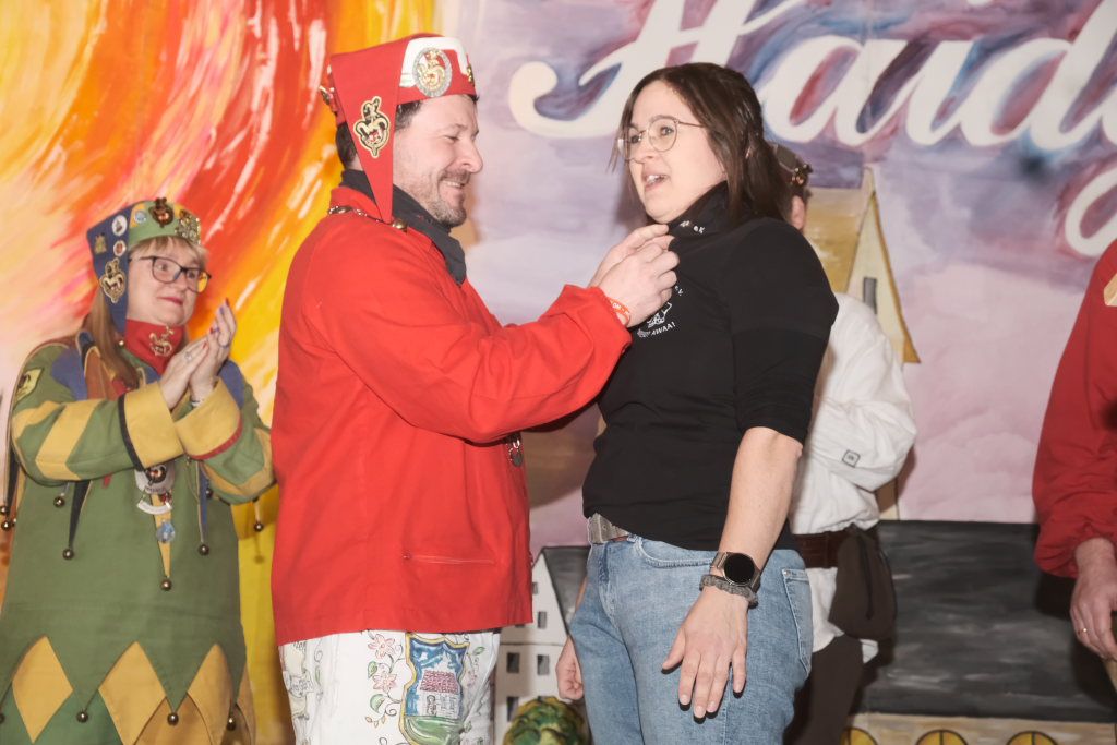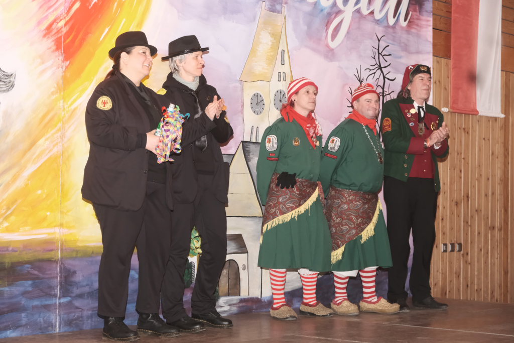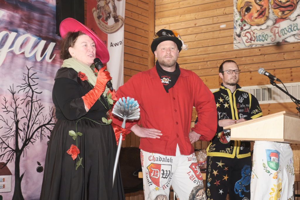 Dies gelang wohl auch, weil zwei weitere verdiente Närrinnen der Chadalohs,, Marietta Etz und Diana Rösch mit dem Hästräger-Orden ausgezeichnet wurden, womit dem in dieser Hinsicht ahnungslosen Zunftmeister das Großaufgebot an Präsidiumsspitzen des ANR erklärt werden konnte.