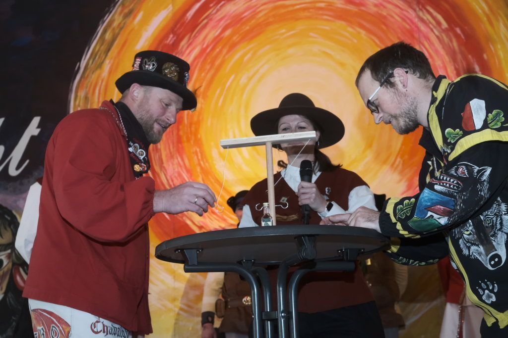 Stichwort spielen: Auch der Spaß kam bei diesem Empfang natürlich nicht zu kurz. Bei einem Pantomimen Spiel – Darsteller diverse ZM´s – musste Zunftmeister verschiedene Zünfte erkennen. Oder beim Häkchenangelspiel musste er gegen seinen Vize – Mann gegen Mann – antreten.