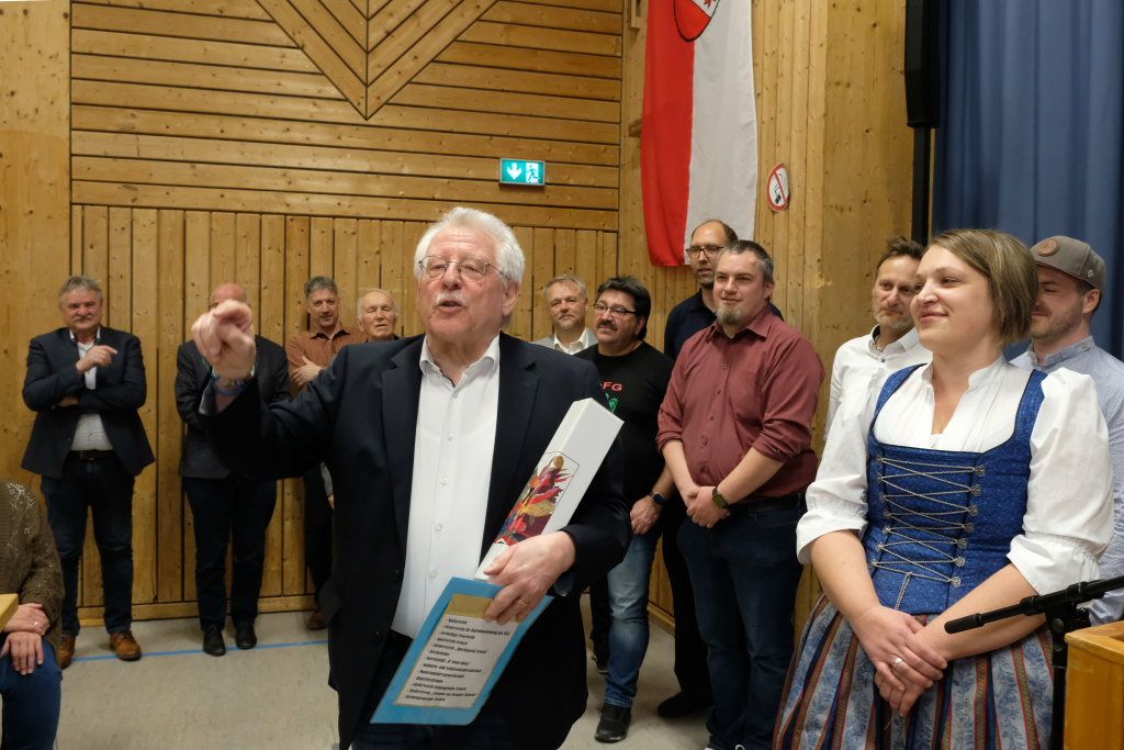 Mit vor Rührung brüchiger Stimme bedankte er sich bei allen, von denen er großartige Unterstützung erfahren hatte: den Bürgermeistern, seinen Stellvertretern und den Ortschafträten, den Vereinen und Arnacher Bürgern, die ihm in unterschiedlichsten Situationen geholfen hatten. „Danke, liebe Gäste, danke, liebe Arnacher, alles Gute für Euch und für unser Arnach.“ Und wurde mit stehendem Applaus gefeiert.