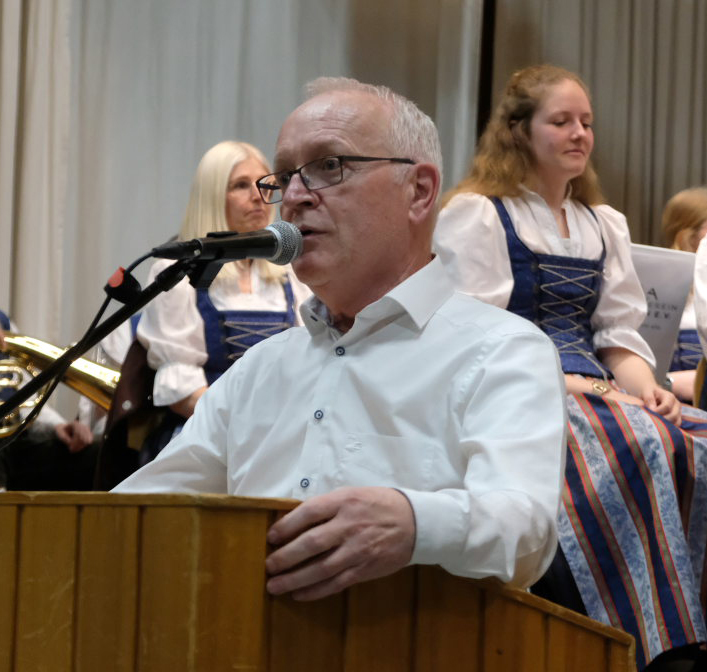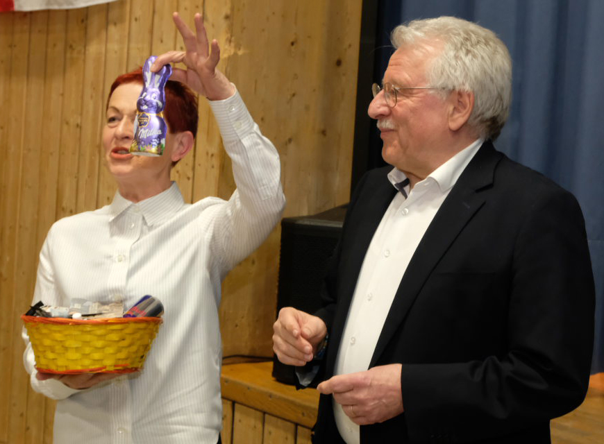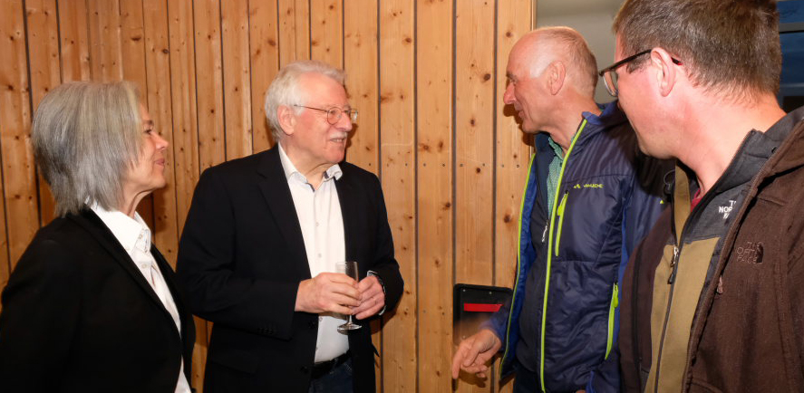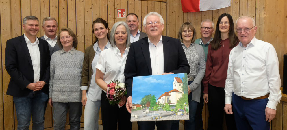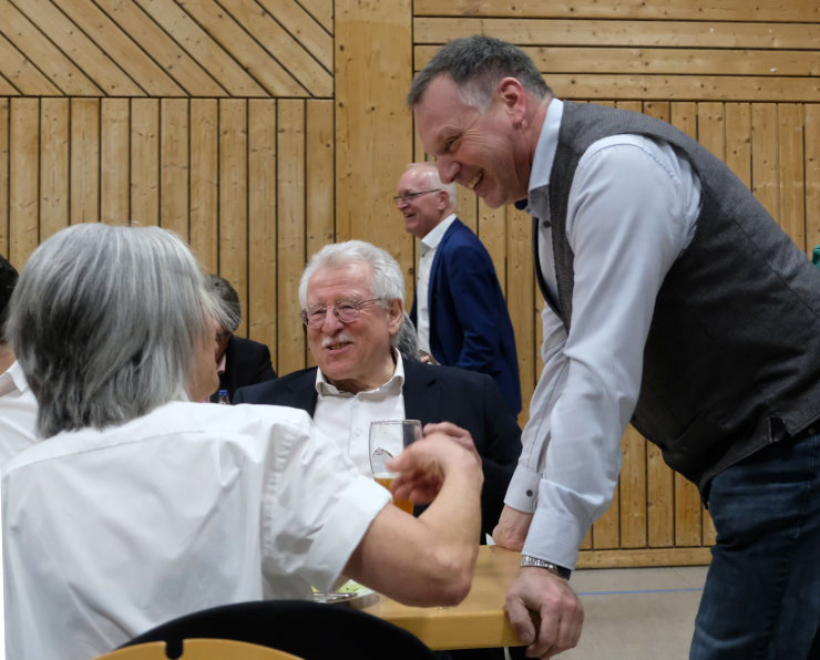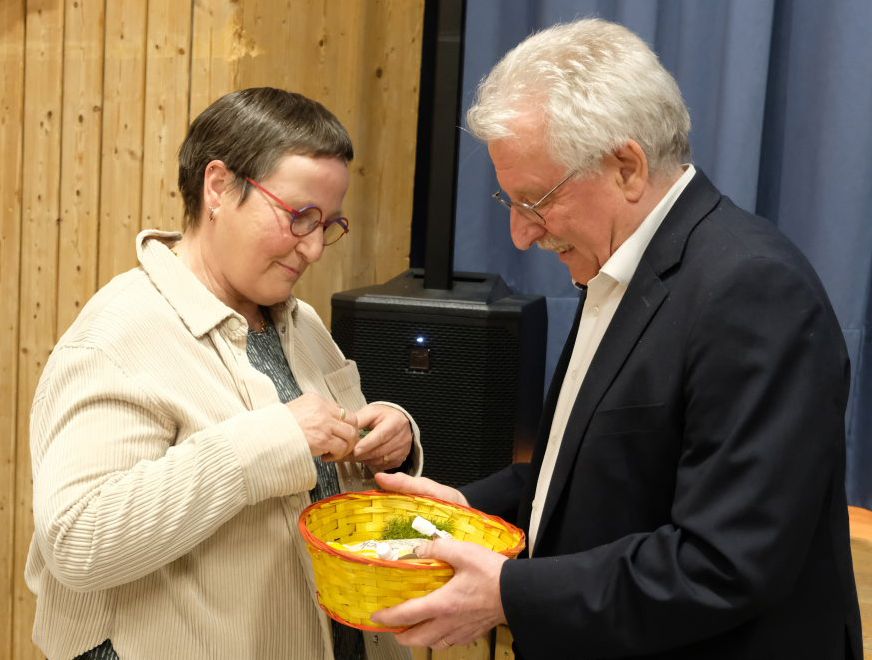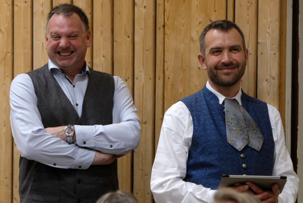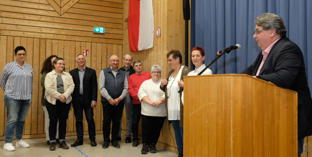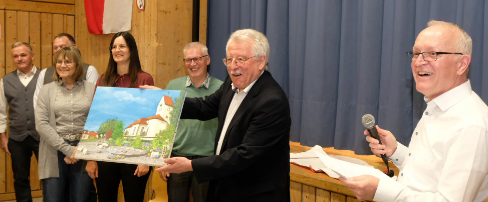 „Manne“ Braun fungierte – wie in alten Schlagerwettbewerbszeiten – als Moderator und Ansager. Und hatte seine Laudatio in Reimform verfasst. Er begann damit, wie dramatisch Mike Rauneker per Losentscheid ins Amt gewählt wurde und dass damals Skepsis im Ort herrschte, „ob das mit einem Lehrer als OV gutgehen konnte“. Aber für Skepsis blieb nicht viel Zeit, „es kam glei, wia mit em goldene Schuss, dia Zusage zum Zuschussprogramm MELAP plus.“