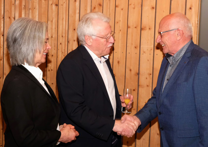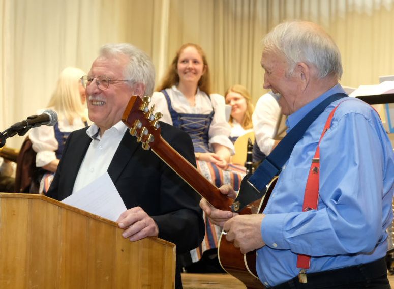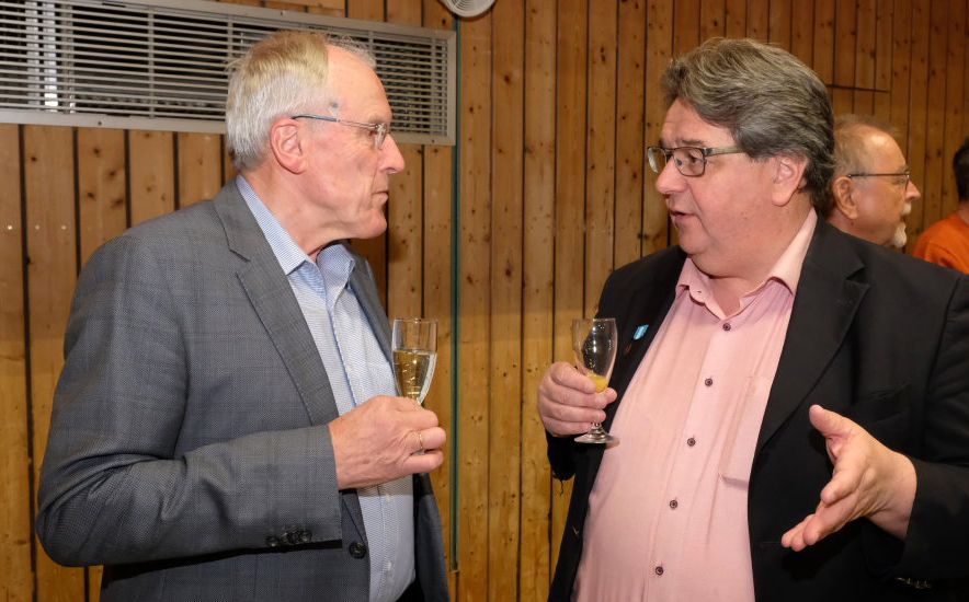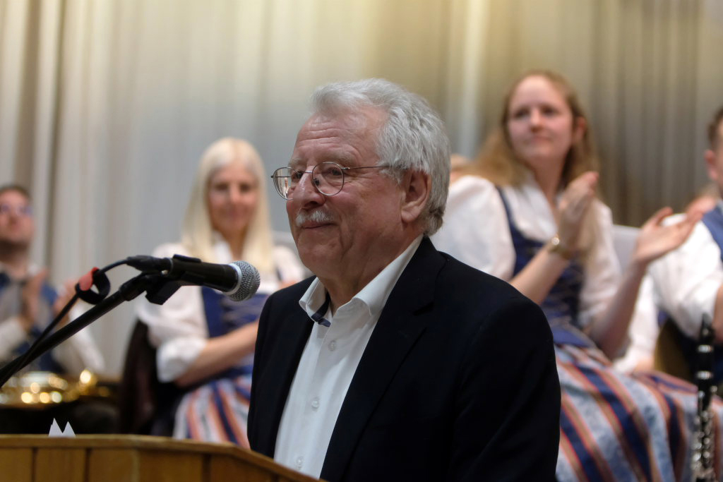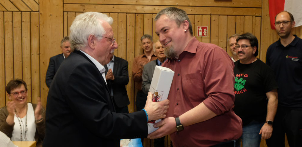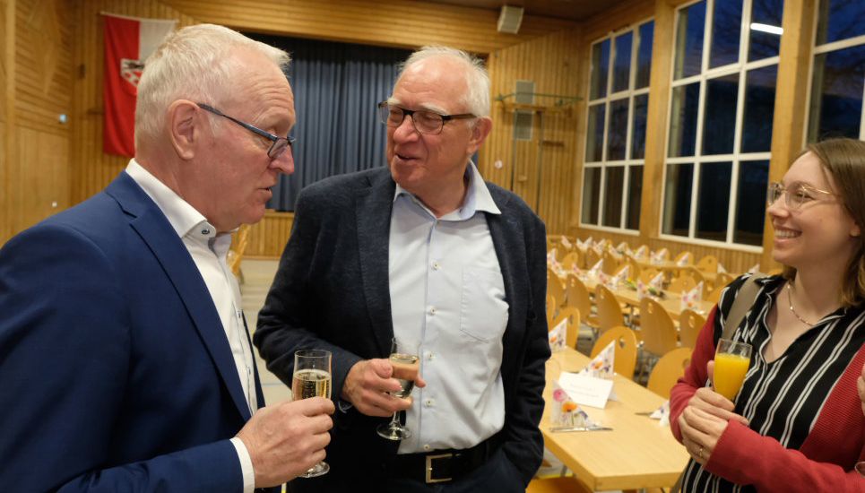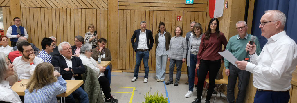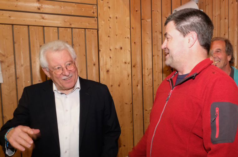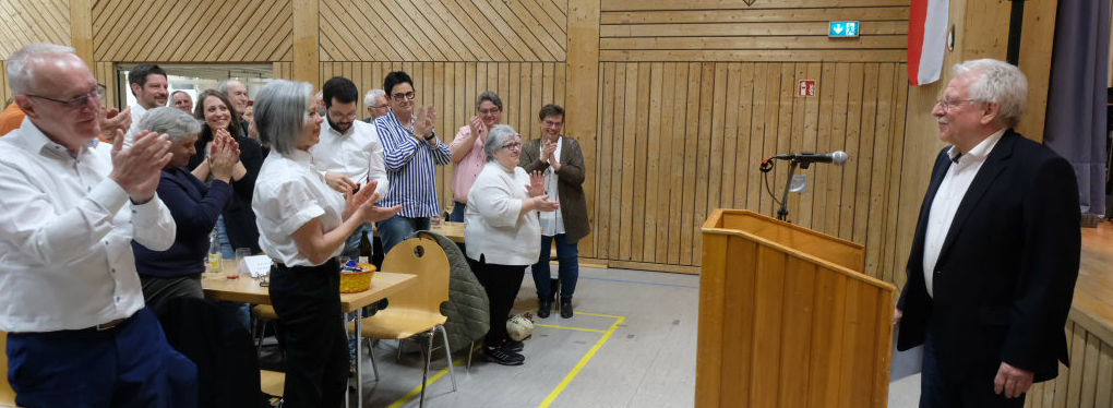 „Manne“ Braun fungierte – wie in alten Schlagerwettbewerbszeiten – als Moderator und Ansager. Und hatte seine Laudatio in Reimform verfasst. Er begann damit, wie dramatisch Mike Rauneker per Losentscheid ins Amt gewählt wurde und dass damals Skepsis im Ort herrschte, „ob das mit einem Lehrer als OV gutgehen konnte“. Aber für Skepsis blieb nicht viel Zeit, „es kam glei, wia mit em goldene Schuss, dia Zusage zum Zuschussprogramm MELAP plus.“