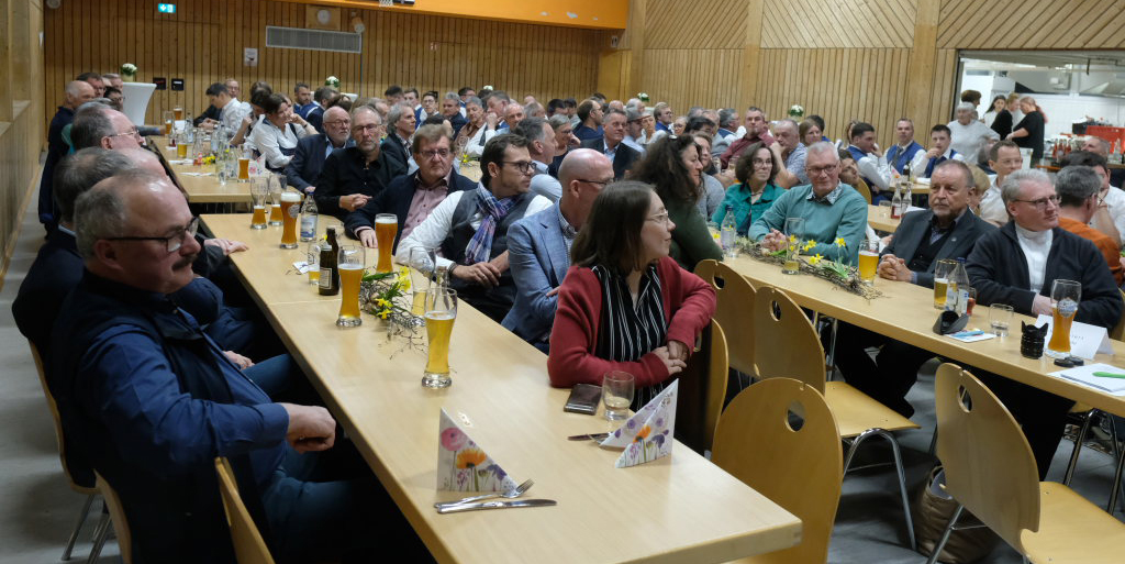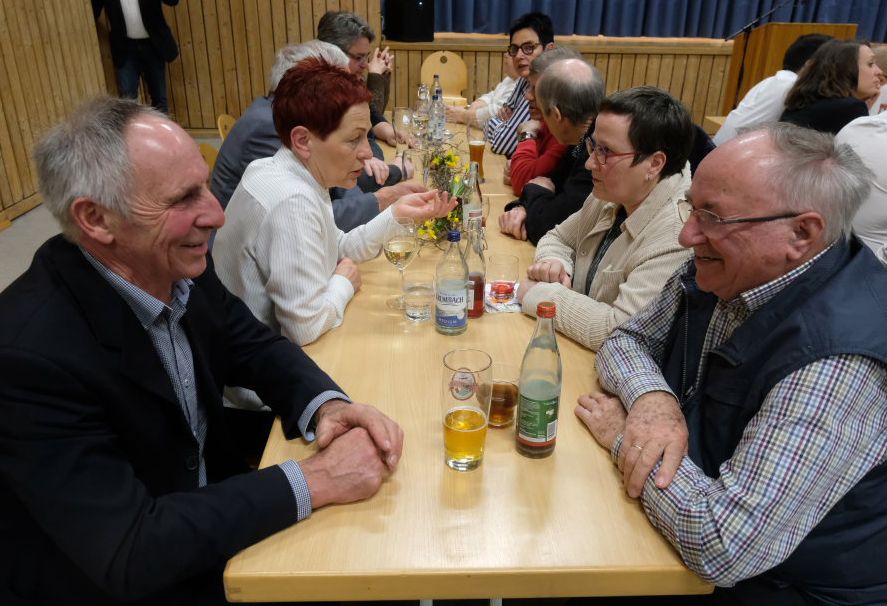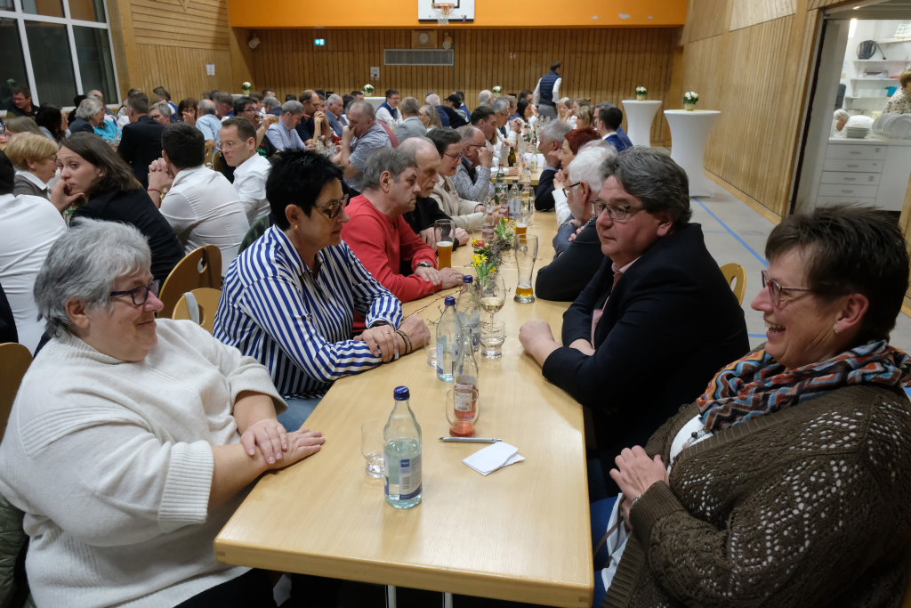 Zu der Feier in der Turn- und Festhalle Arnach waren viele Weggefährten von Rauneker gekommen: Neben aktuellen und ehemaligen Gemeinderäten und Ortschaftsräten und amtierenden Ortsvorstehern auch etliche ehemalige Ortsvorsteherkollegen wie Annemarie Frischknecht (Seibranz), Karl Mayer (Gospoldshofen), Franz Kraus (Unterschwarzach) und Franz Ritscher (Haidgau); gekommen war auch Raunekers Vorgänger Paul Barensteiner. Auch der ehemalige Stadtbaumeister Gottfried Bachmor war der Einladung gefolgt ebenso wie der ehemalige Ortspfarrer Paul Notz und dessen Nachfolger Patrick Meschenmoser, auch André Radke, Schulleiter des Bildungshauses, und die Leiterin des Kindergartens Arnach, Peggy Cariot. Und natürlich Bürgermeisterin Alexandra Scherer und ihr Stadtkämmerer Stefan Kunz. Nicht fehlen durften auch die beiden Arnacher Träger der Bad Wurzacher Bürgermedaille Hansjörg Schick und Xare Miller.