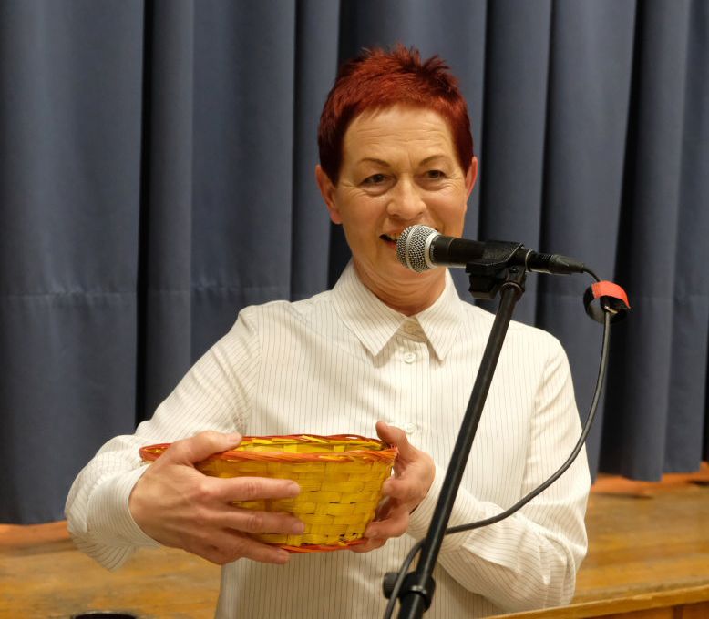 Steffi Jöchle, Vorstandsmitglied des Musikvereins Arnach, übernahm es, namens der Arnacher Vereine bei Rauneker für die Unterstützung zu danken. Er habe immer ein offenes Ohr für deren Anliegen gehabt und sei bei allen Vereinen bei deren Veranstaltungen und Versammlungen immer ein treuer Gast gewesen und diese würden sich darüber freuen, wenn dies auch weiterhin so wäre, sagte sie. Bei einigen gemeinsamen Veranstaltungen, der Sportplatzeinweihung, der Dorfplatzeinweihung oder dem Radsonntag, habe sich der Zusammenhalt der Arnacher gezeigt. „Und des goht halt oifach oifacher, wenn oiner vorna dana isch, der d‘r Karra zieht!“ Das sei neuerdings der Unterschied zu seinem Nachfolger Manne Braun: „Mike darf weiterhin unser Gast sein und Du musst immer zu uns kommen“, sprach sie den neuen Ortsvorsteher direkt an.