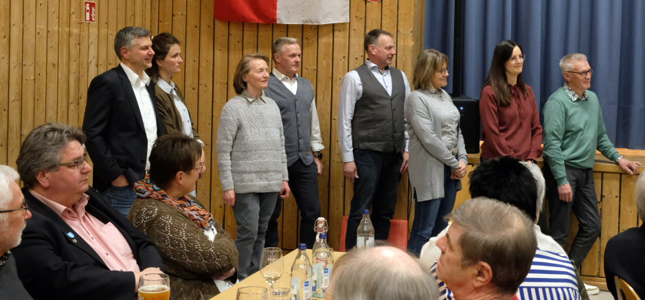 Mike Rauneker mit seinem Ortschaftsrat (einschließlich Sekretärin und Nachfolger): Unser Bild zeigt (von links) Wolfgang Abele, Ewald Riedl, Gabriele Morgen (Verwaltungsangestellte), Vera Müller, Frau Rauneker, Gebhard Baumann, Margret Zapf, Matthias Grad, Lisa Brechter, Manfred Braun.