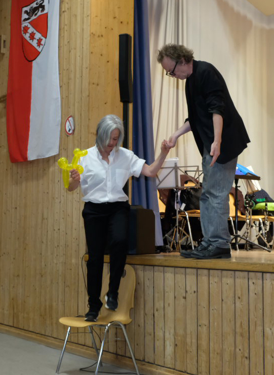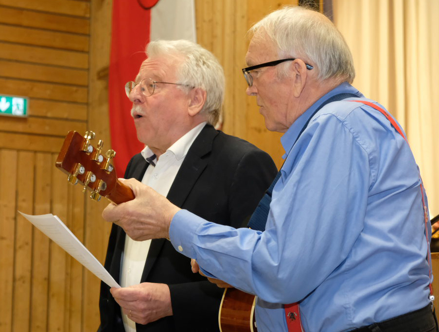 Dass Mike Rauneker nicht immer einer Meinung mit Hansjörg Schick war (und umgekehrt), sei allgemein bekannt. Aber gemeinsam zu singen, das funktionierte wie beim Rathaussturm und beim Seniorennachmittag immer. Und so sang das ungleiche Gesangs-Duo seinen Erfolgshit: „D´r Arnacher Skeptiker“ oder „Was hend‘r au do dau“ in bester Bänkelsängermanier, was die ganze Halle zum Mitsingen animierte.