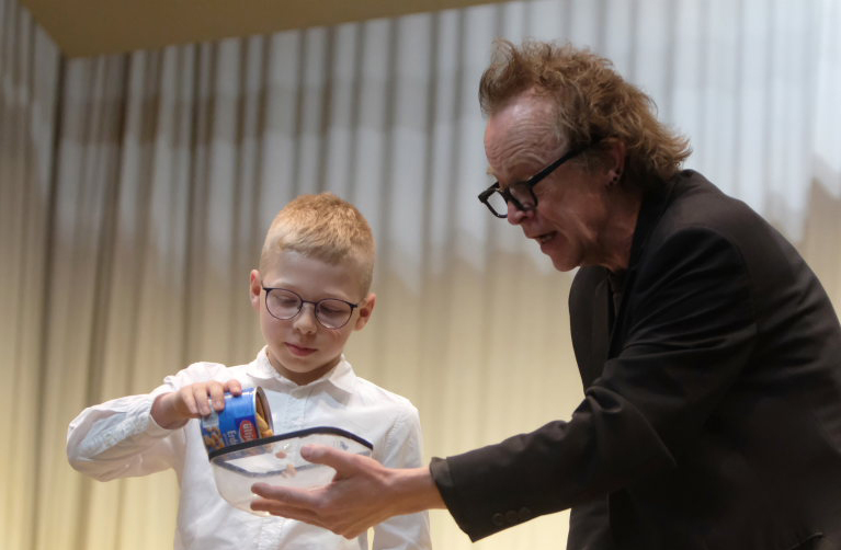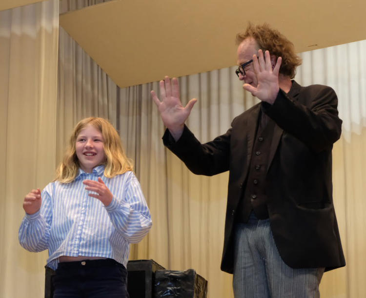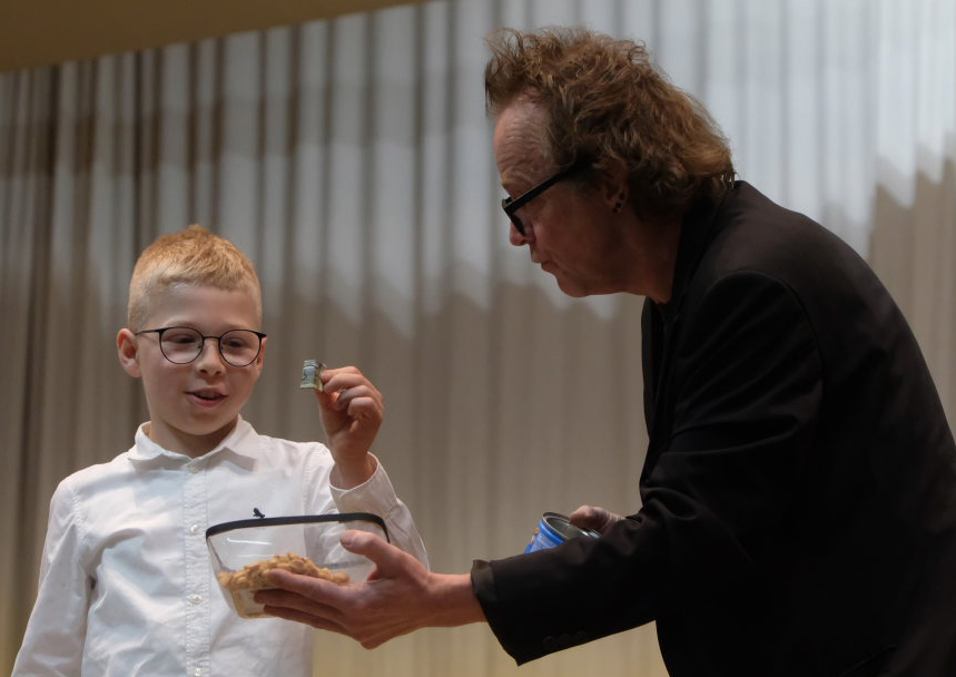Damit die Rührseligkeit nicht überhandnahm, hatten die Programmmacher den Zauberer Markus Zink, einen vielfach preisgekrönten Zauberkünstler und Freund der Familie Rauneker, als nächsten Programmpunkt vorgesehen. Und dieser ließ das Publikum mit seinen Späßen und Tricks – unter anderem auch mit Raunekers Gattin Martina und den Enkeln Sophia und Sebastian – Tränen lachen.