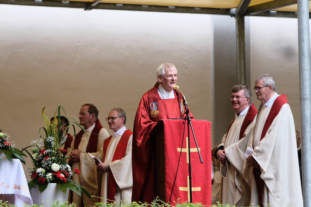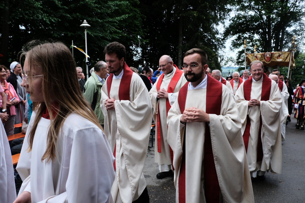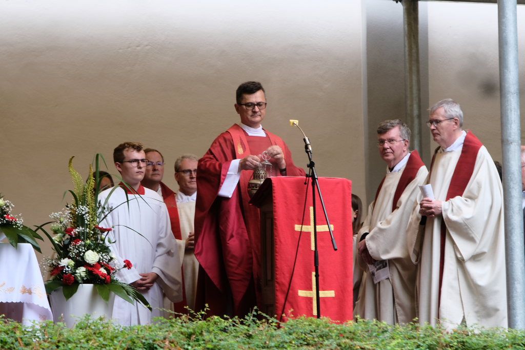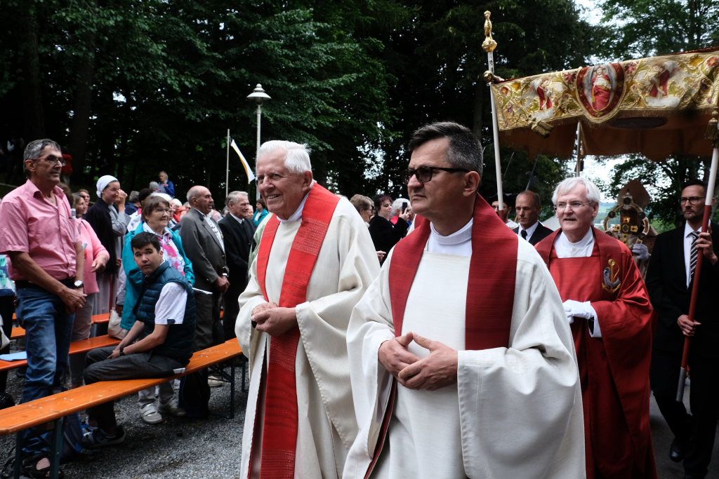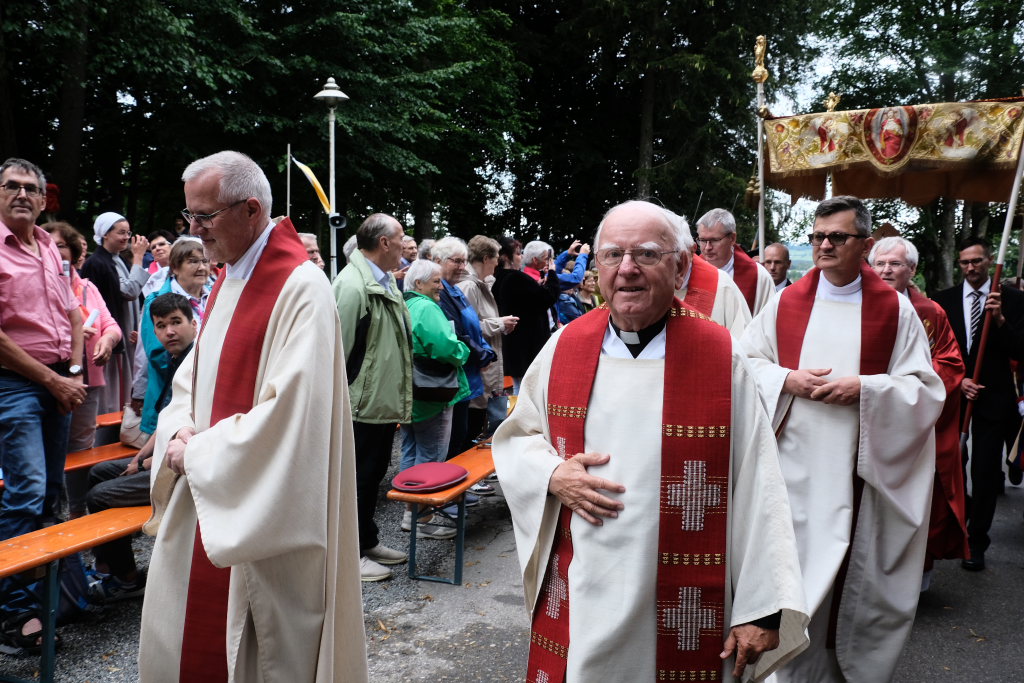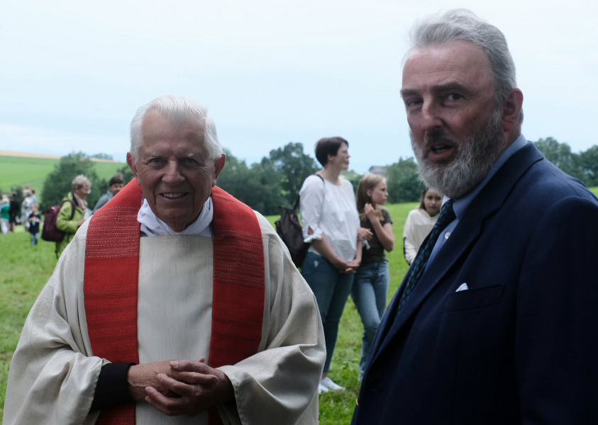 Lang war die Liste der Gäste, die vom Hausherrn, Superior Pater Konrad (Bild), begrüßt wurden. Da war zum einen die Geistlichkeit, allen voran der diesjährige Segenspender im Heilig-Blut-Wagen, Pfarrer Norbert Wahl, der vor wenigen Tagen sein Diamantenes Priesterjubiläum gefeiert hatte; dann der Provinzial der Salvatorianer Pater Dr. Friedrich Emde sowie der  Patronatsherr der Gottesberg-Kirche, Seine Duchlaucht Fürst Erich von Waldburg-Zeil.