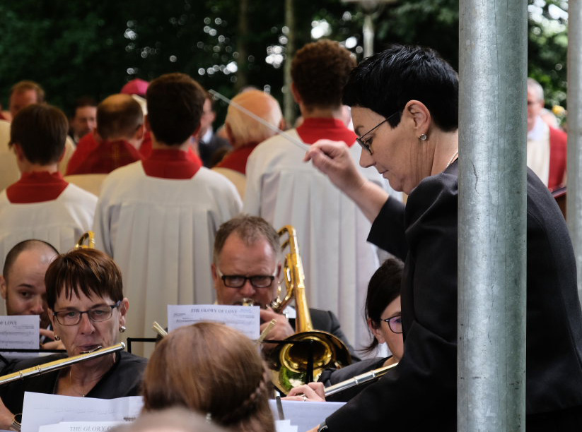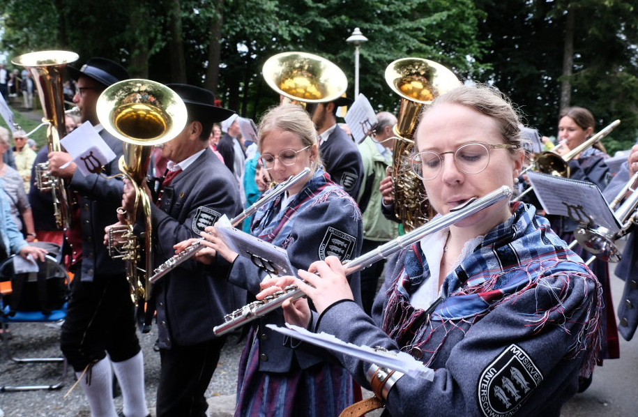 „Was wäre ein Gottesdienst im Freien ohne Blasmusik?“, rief er voller Lob und Anerkennung aus. Um sogleich die Antwort zu geben: „Wie wenn das Mikrophon ausfallen würde.“