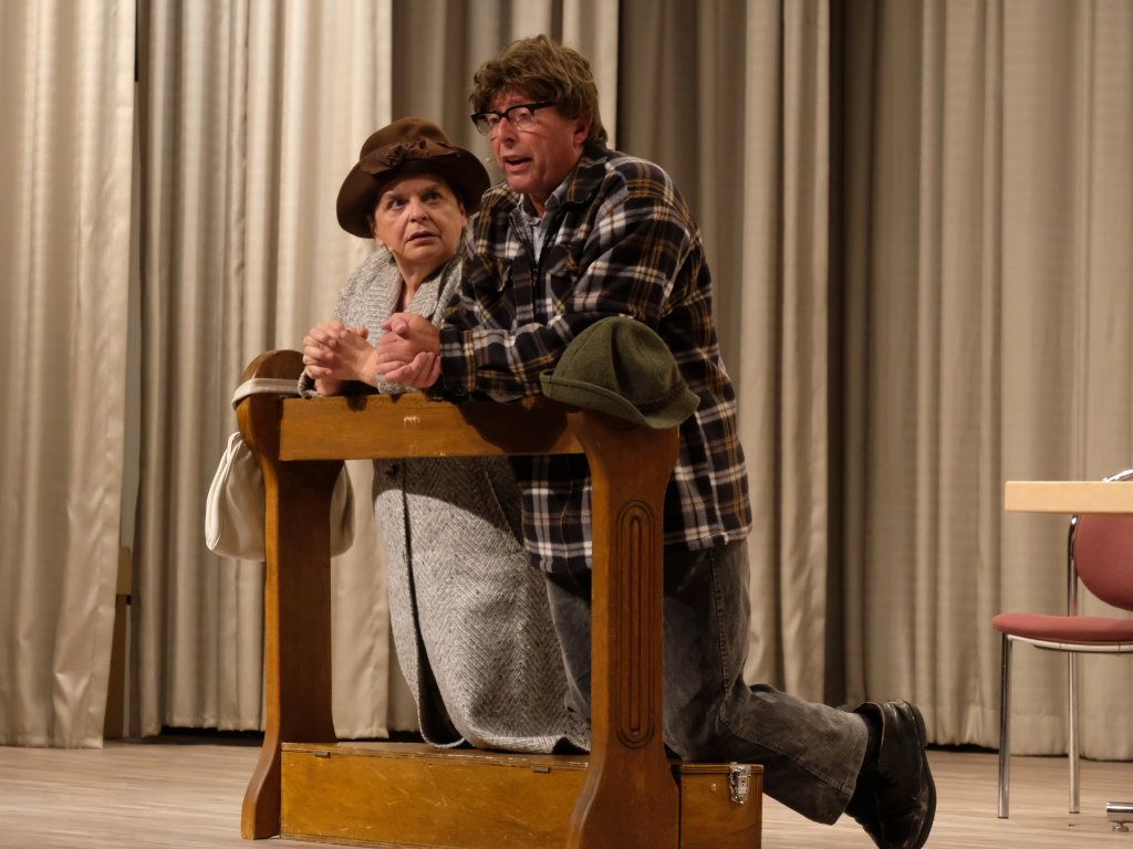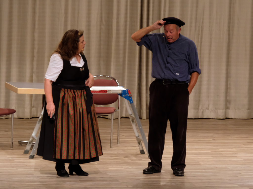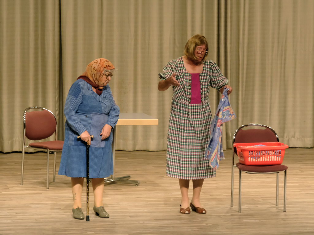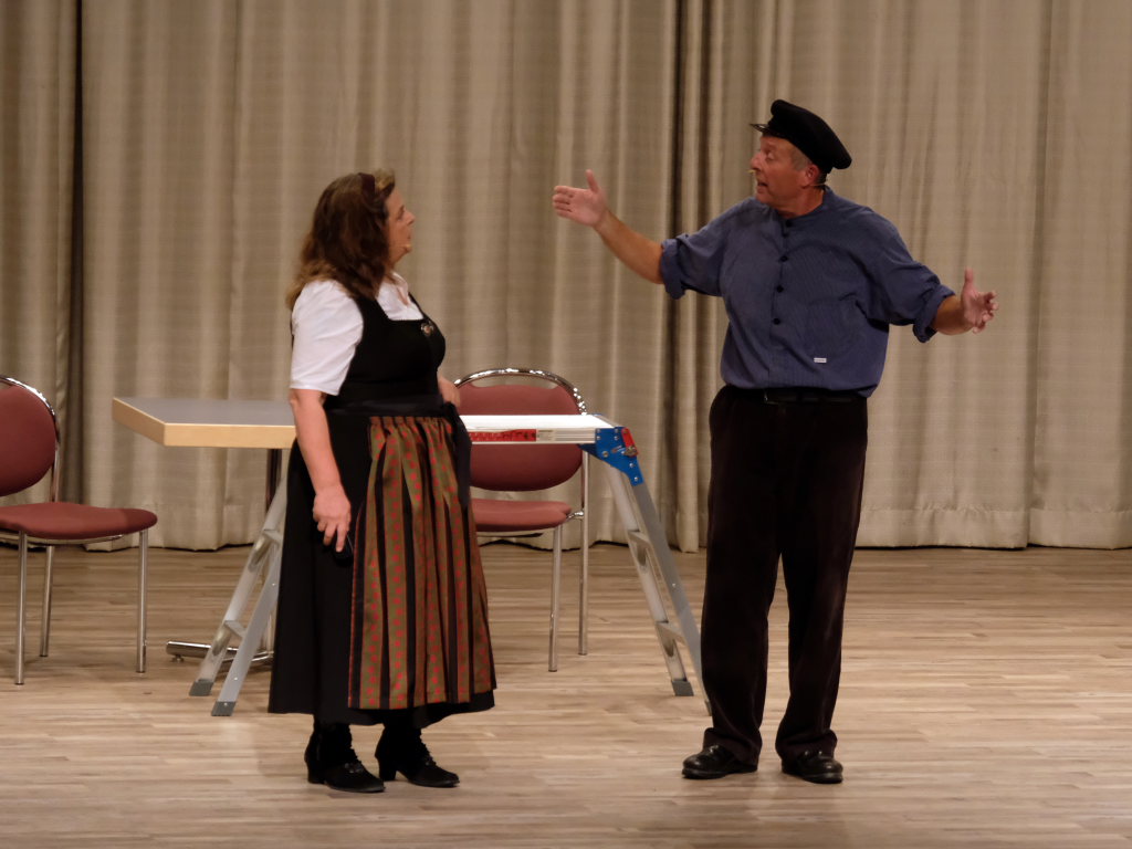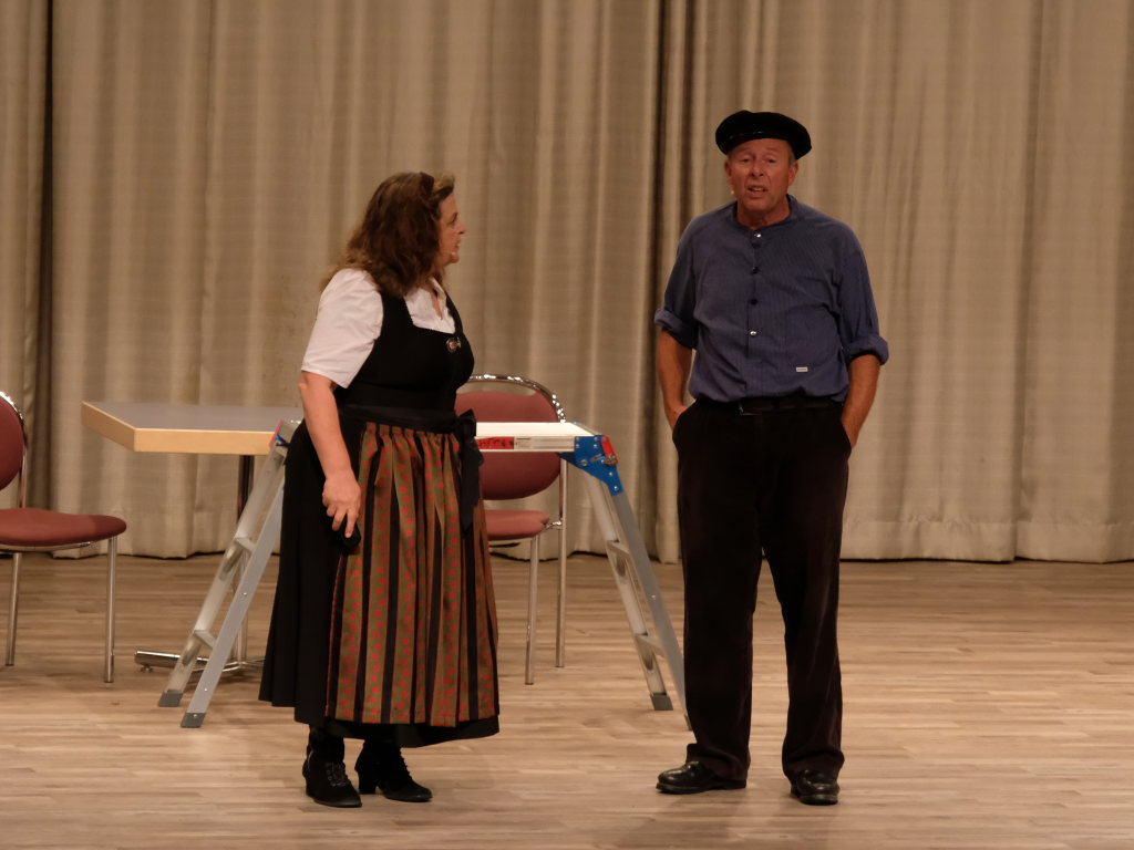 Deftig wird es auch, wenn’s „Herzdröpfle“ Franz als Raatschweib, die um einige Jahrzehnte gealterte Hillu fragt, warum sie bei Beerdigungen ihre Blumen immer nach hinten wirft: „Damit ma weiß, wer als nägschder dra isch.“ Und wenn die beiden sich gegenseitig ihre neuen Unterhosen präsentieren.