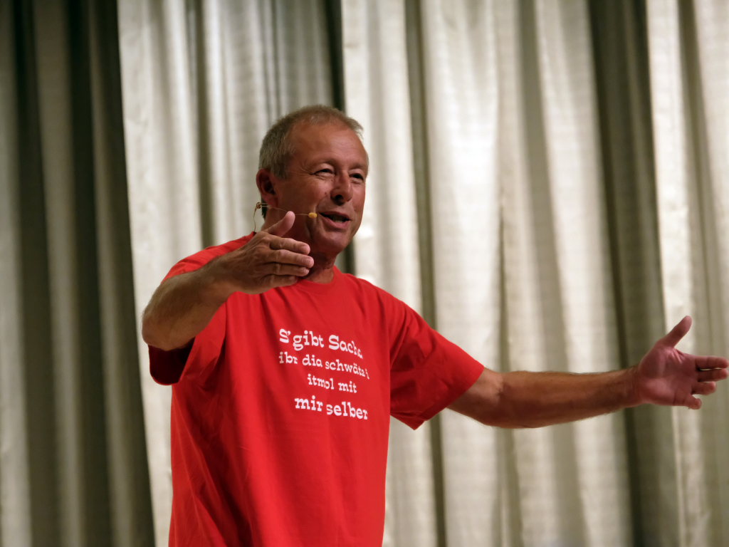 Hillu begrüßte das Publikum mit einem nachdenklich stimmenden Gedicht von Hugo Breitschmid über die Erde – mit der Quintessenz: „Unsre Erde isch an Schatz, so koschdbar – ond ’s geit koin Ersatz.“