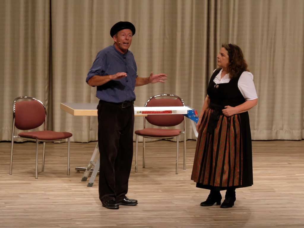 Und dann legte sie los, weil sie auf dem Weg auf die Bühne ihren Partner verloren hatte: „Alle Männer sind gleich: Steckt ma se in an Sack und haut drauf, trifft’s immer dr Richtige“. Als dann ihre bessere Hälfte (oder so) auf der Bühne eintrifft, geht der Wortschwall in die andere Richtung, für beste Stimmung zwischen den Geschlechtern ist also von Anfang an gesorgt.