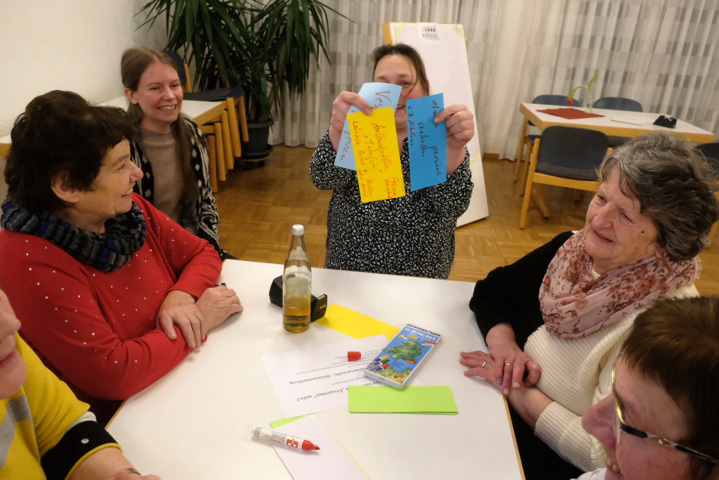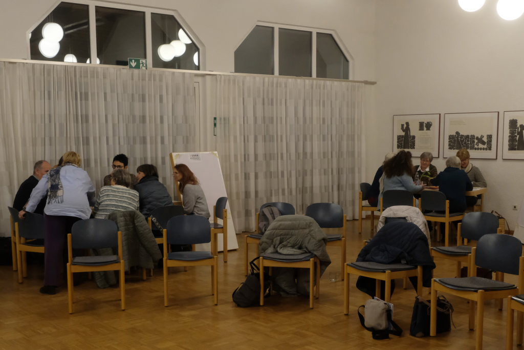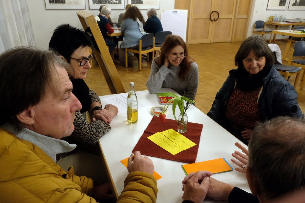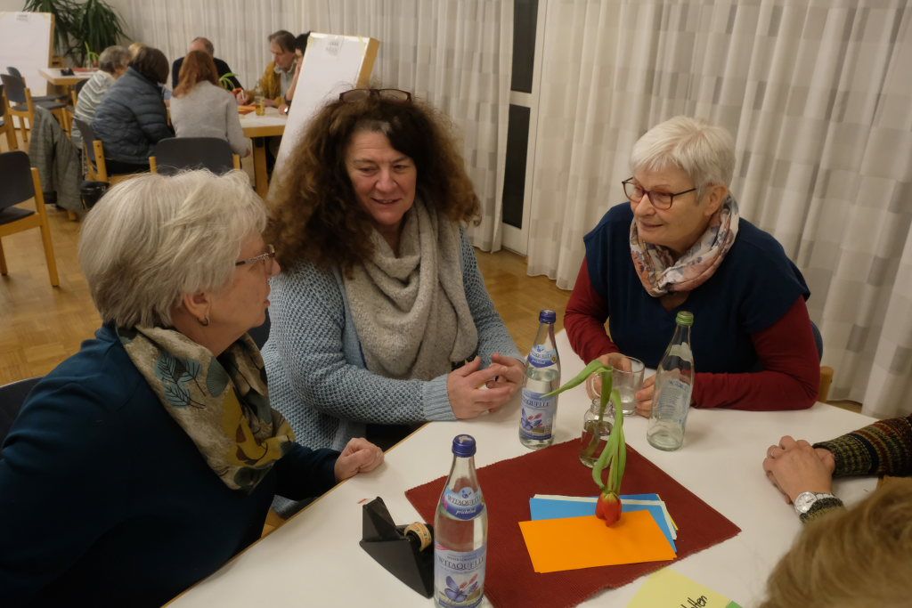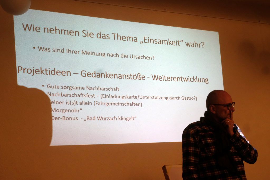 Susanne Baur sagte, es sei schon ein Spagat: Auf der einen Seite müsse man heute in der digitalen Welt fit sein, auf der anderen Seite bestehe das Menschliche auch aus mehr – wie etwa Zuwendung. An fünf „Flipcharts“-Tischen sammelten danach die verschiedenen Gruppen Ideen, wie man als Gruppe die Einsamkeit überwinden kann. Da kam etwa die Idee für ein spontanes, gemeinsames Picknick im Kurpark aus der Gruppe, die sich intensiv in der Gemeinwesensarbeit engagiert. Oder der Morgenohr genannte morgendliche Telefonanruf, um einfach ein Viertelstündchen mit den – in diesem Fall – Älteren ein wenig zu plaudern und ihnen ein wenig Teilhabe zu bieten.