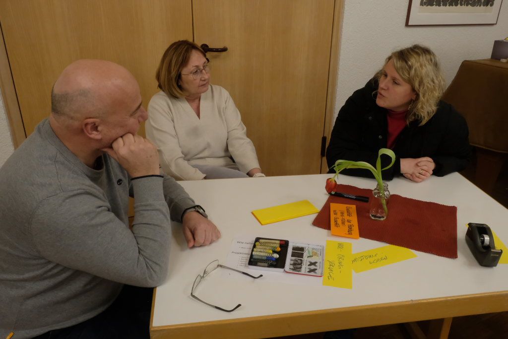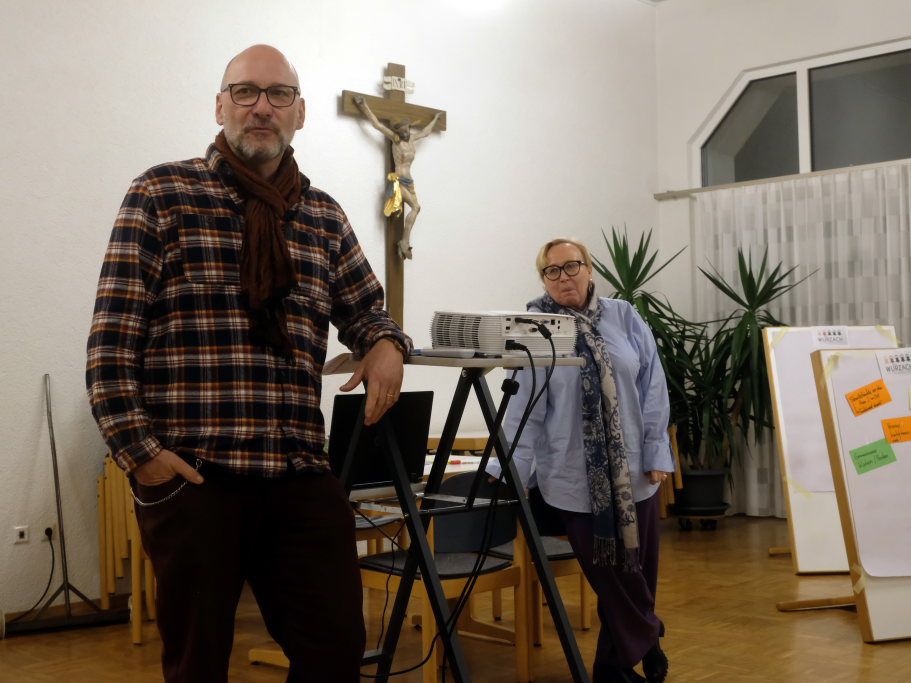 Mattias Winstel und Susanne fassten am Ende die Stoffsammlung zusammen: Baur fragte, wo es überall Schwätz-Bänkle gibt, so dass man da etwa eine Karte erstellen könnte. Matthias Winstel fand als Genießer die Idee vom gemeinsamen Pizza-Backen, zu dem jeder etwas für den Belag mitbringen solle, sehr charmant. Susanne Baur findet die Idee, Ostereier vor dem nahen Osterfest bei älteren Menschen vorbei zu bringen und mit ihnen ein wenig zu plaudern sehr schön.