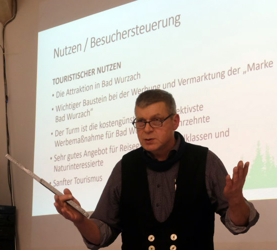 Aber die Stadt brauche eine Zukunftsperspektive, Arbeitsplätze, um Familien hier zu behalten. Und so ein Turm sei überall ein Anziehungspunkt, dessen Ausstrahlung nicht nur auf den Kernort beschränkt bleiben werde, etwa für Übernachtungsgäste. „Der Turm hat ein riesiges Potential, um auch Co-Projekte anzuschieben.“ Der Turm werde zum Marketing-Symbol für den Tourismus in Bad Wurzach.