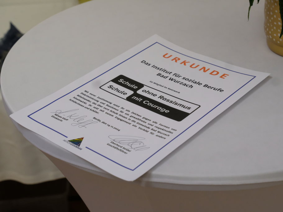 Institut für soziale Berufe Bad Wurzach tritt „Netzwerk Schule ohne Rassismus“ bei